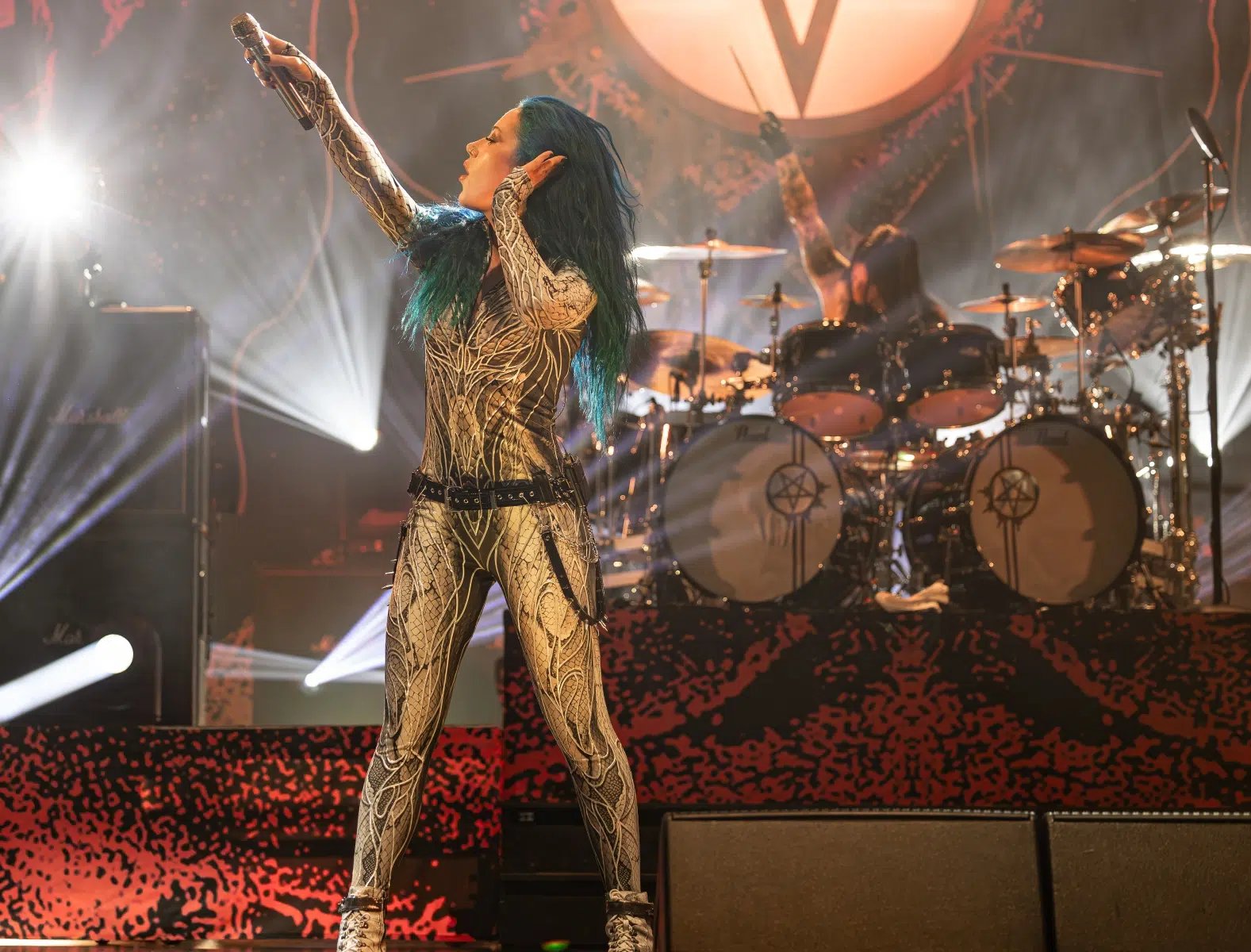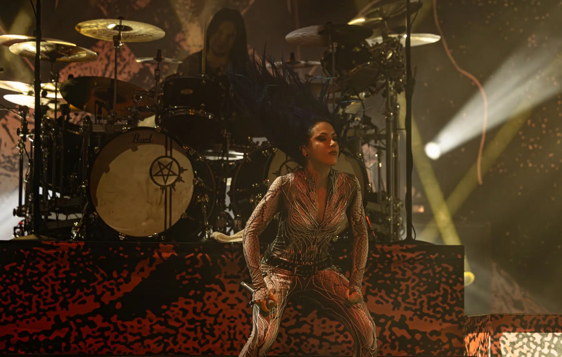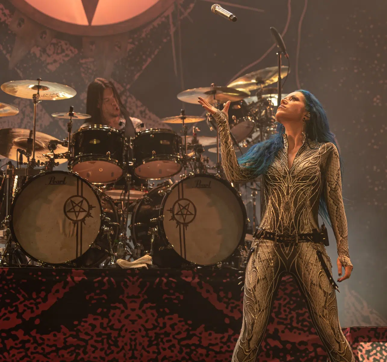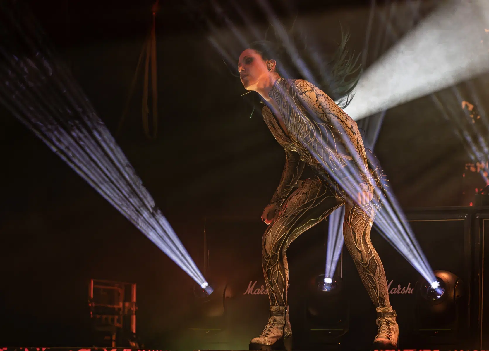 Arch Enemy übernahmen als erster Headliner die Bühne, und vom ersten Moment an war klar, dass sich das Energielevel noch einmal drastisch steigern würde. Die markerschütternden Growls von Alissa White-Gluz durchbrachen die Luft mit „Deceiver, Deceiver“, und sofort explodierte die Halle in einem Sturm aus Fäusten und Mähnen. Arch Enemy, bekannt für ihre unaufhaltsame Bühnenpräsenz, spielten eine intensive Mischung aus Klassikern und neueren Hits. „The World Is Yours“ und „House Of Mirrors“ ließen keinen Zweifel daran, dass die Band auf ihrem absoluten Höhepunkt ist.