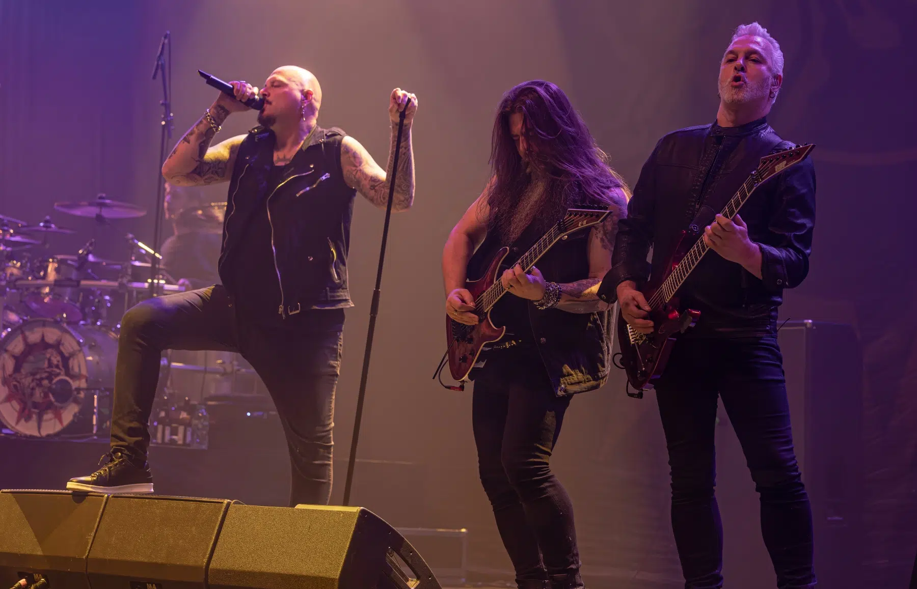 Den Auftakt des Abends machten Soilwork, die als Support auftraten und das Publikum in kürzester Zeit in ihren Bann zogen. Mit „Stabbing The Drama“ eröffneten sie ihren Set und schufen direkt eine aufgeladene Stimmung. Die Band, angeführt von Sänger Björn „Speed“ Strid, brachte ihre Mischung aus Melodie und Härte perfekt auf den Punkt. Songs wie „Arrival“ und „Exile“ vermittelten sowohl aggressive Energie als auch epische Klanglandschaften. Besonders „Övergivenheten“ und „The Ride Majestic“ betonten Soilworks tiefe Verwurzelung im Melodic Death Metal, während das hymnische „Stålfågel“ das Set kraftvoll abschloss. Es war ein starker Start in den Abend, bei dem die Band sowohl alte als auch neue Fans für sich gewinnen konnte.