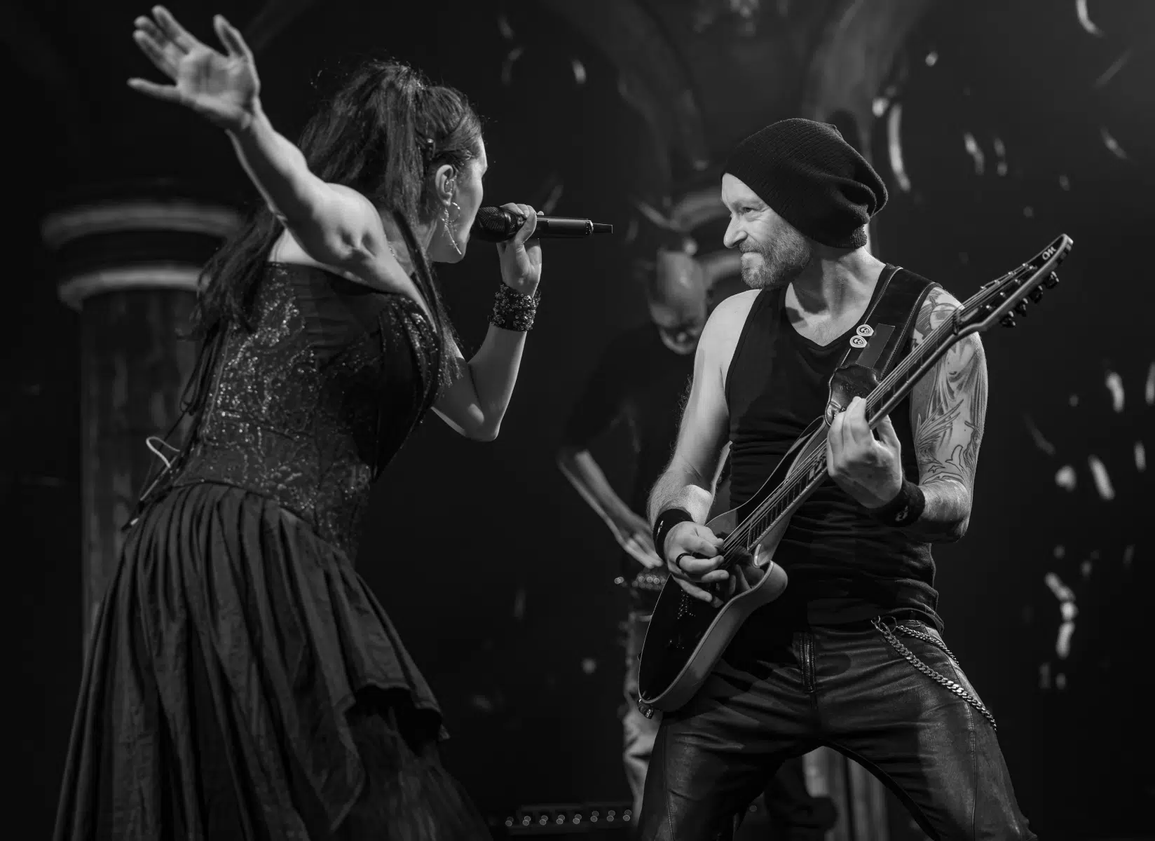 Dann war es endlich soweit: Within Temptation betrat die Bühne und lieferte eine Show, die das Publikum in Euphorie versetzte. „We Go to War“ und „Bleed Out“ eröffneten das Set mit einer atemberaubenden Energie, gefolgt von „Ritual“ und dem epischen „Shed My Skin“, bei dem Annisokay-Frontmann Christoph Wieczorek für ein weiteres denkwürdiges Duett sorgte. Songs wie „The Reckoning“, „Shot in the Dark“ und „Stand My Ground“ rissen die Menge vollends mit.
