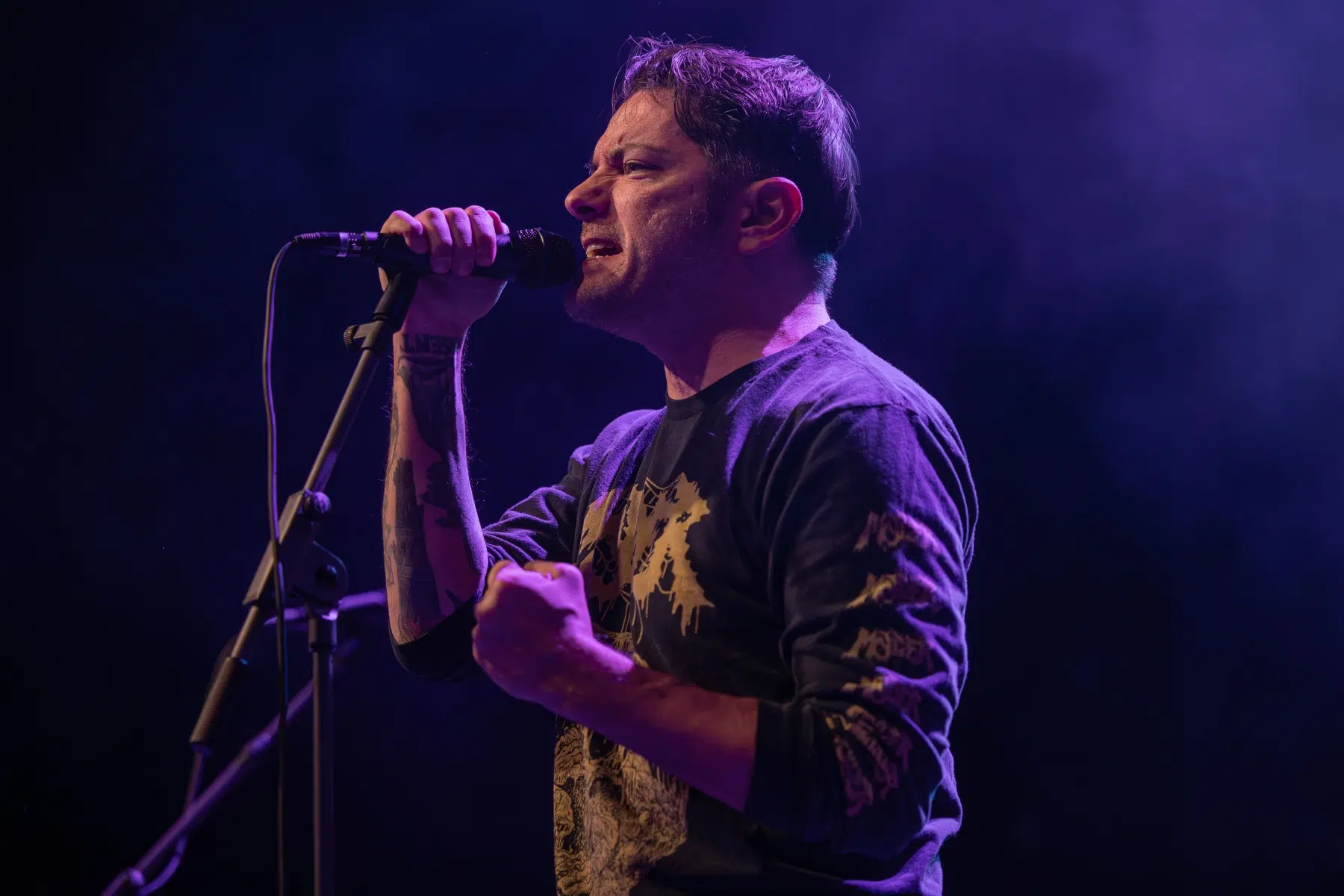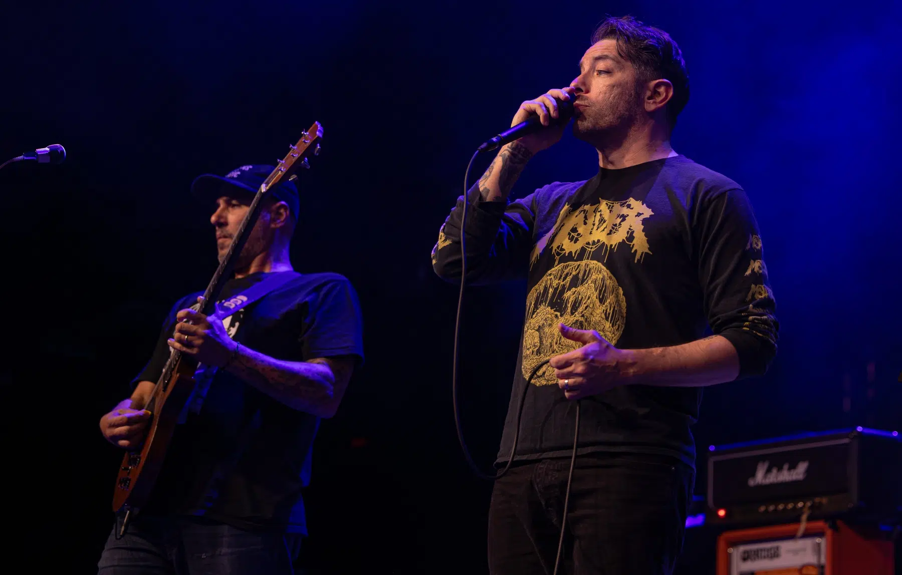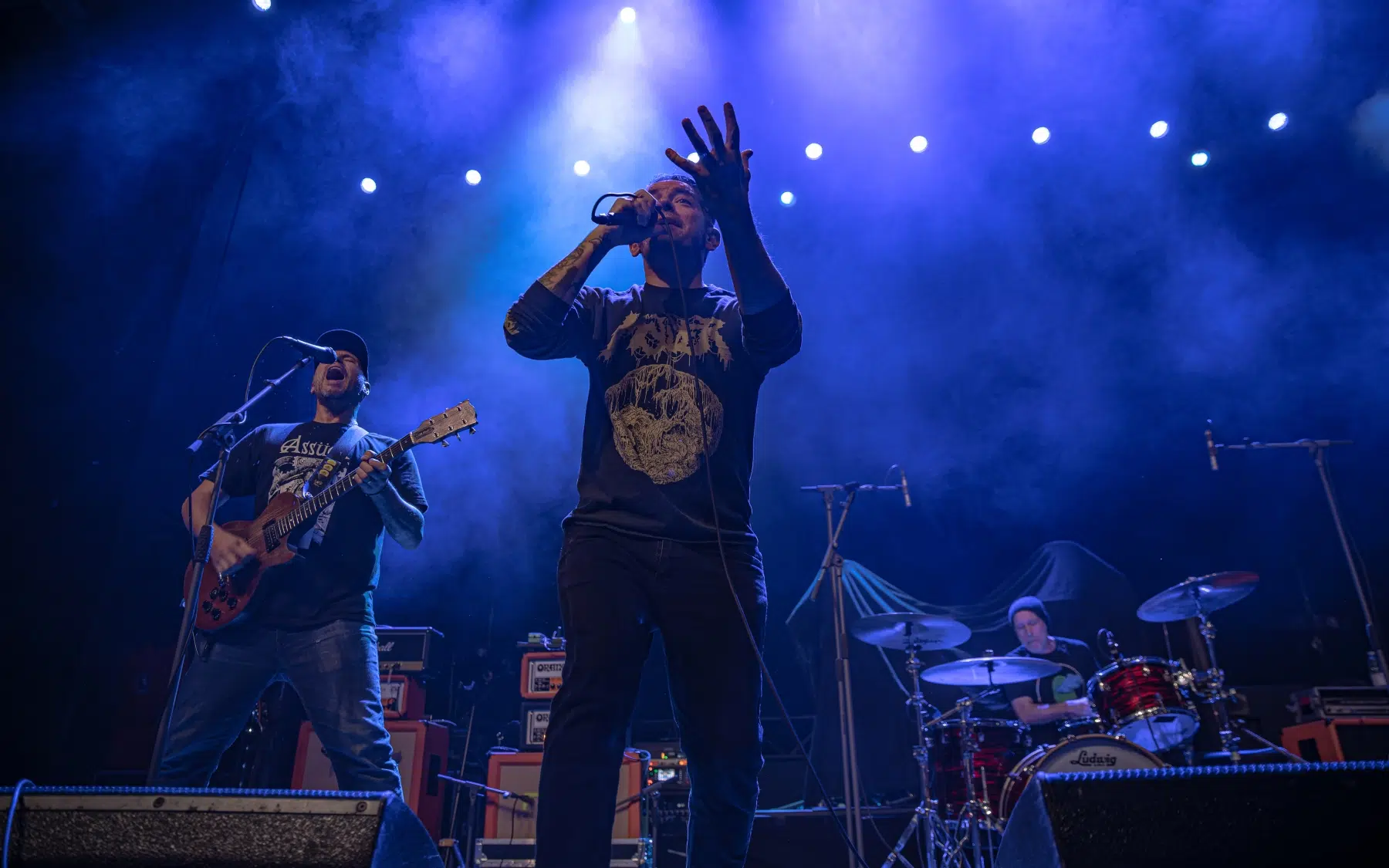 Als Headliner betraten Hot Water Music schließlich die Bühne und zeigten, warum sie seit Jahrzehnten zu den Ikonen des Genres gehören. Schon mit dem Opener „Menace“ war klar, dass diese Show ein denkwürdiges Erlebnis werden würde. Klassiker wie „Wayfarer“, „Remedy“ und „Trusty Chords“ ließen die Menge förmlich explodieren, während tiefgründige Songs wie „Drag My Body“ und „Difference Engine“ Raum für Emotionen schafften.