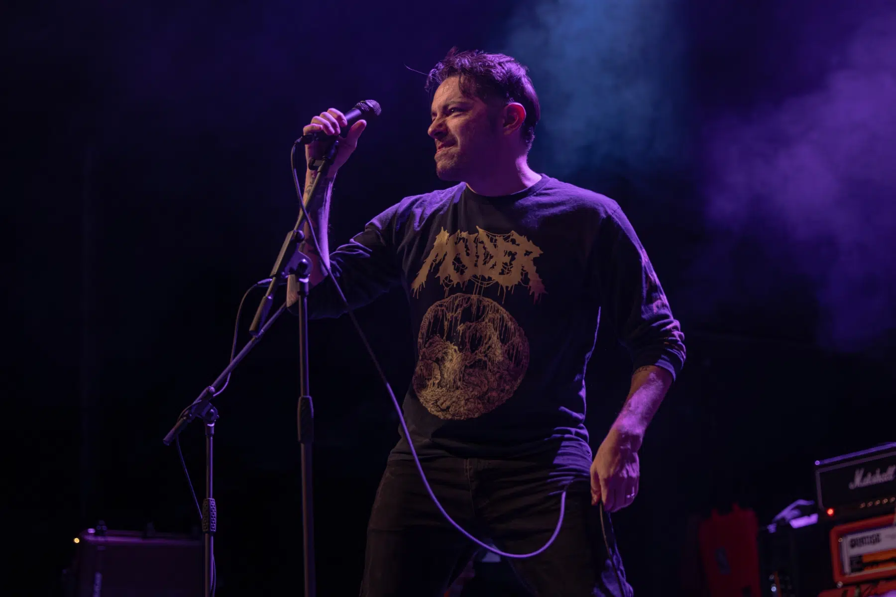 Den Auftakt machten As Friends Rust, deren Setlist eine Mischung aus Klassikern und neueren Songs präsentierte. Mit Tracks wie „Like Strings (Spell It with a K)“ und „Born With a Silver Spoon Up Your Ass“ bewiesen sie einmal mehr, dass sie sich nicht nur musikalisch, sondern auch textlich treu geblieben sind. Ihr charismatischer Frontmann hielt das Publikum mit humorvollen Ansagen bei Laune und schuf eine intime Atmosphäre. Besonders „Positive Mental Platitude“ und „Coffee Black“ brachten das Publikum in Bewegung, während sich alte und neue Fans in den kraftvollen Refrains vereinten.