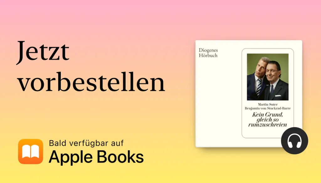 Martin Suter und Benjamin von Stuckrad-Barre über: Blumen, Camping, Sisyphos, Beschwerden, Benutzername, Gesundheit, Feierabend, Albträume, Homestory, Rauschmittel, Sehtest, Harmoniesucht, Eitelkeit, Uhrzeiten, Piercings, Rasenmähroboter, Housekeeping und Liebe.