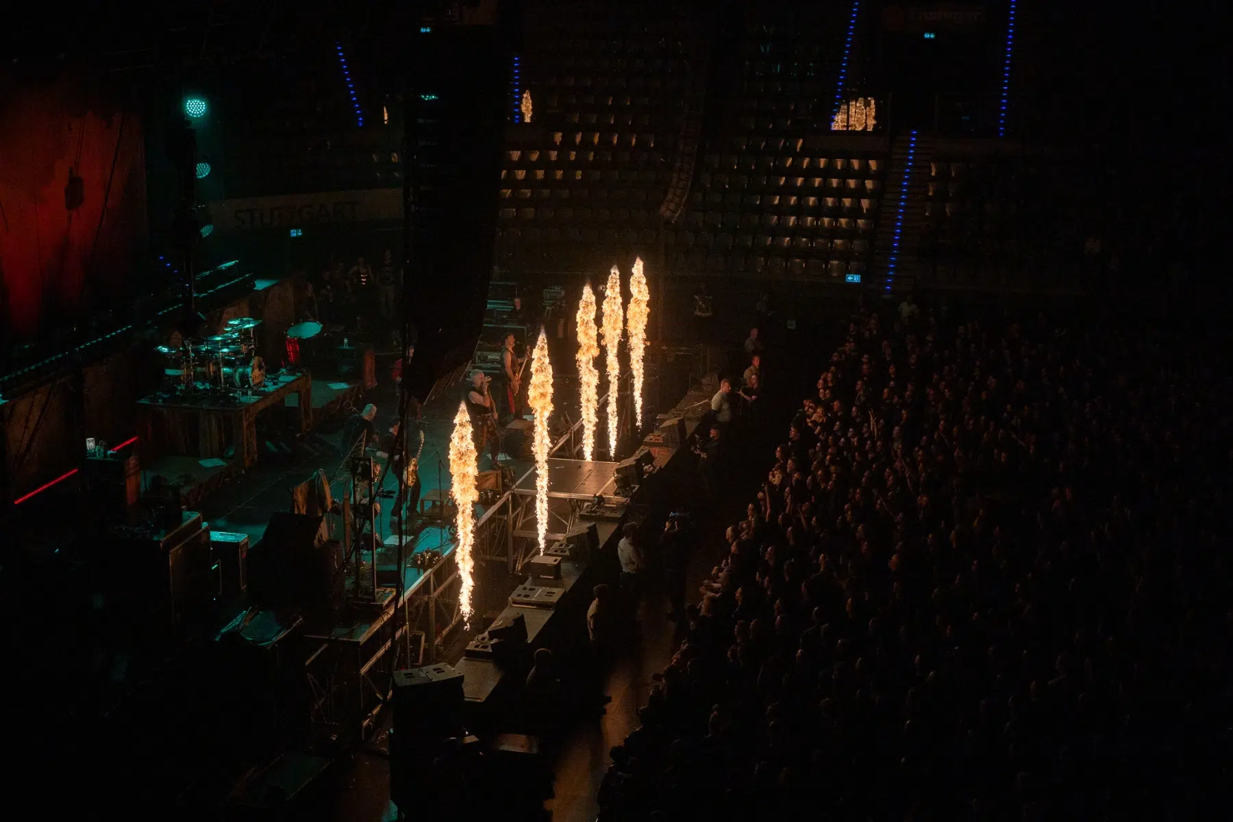 Die Jungs eröffnete ihr Set pünktlich um 21:15 Uhr mit dem kraftvollen Song „Ólafur“ und zog das Publikum sofort in ihren Bann. Es folgten Klassiker wie „Spielmannsfluch“ und „Nur Ihr Allein“, die von den Fans begeistert mitgesungen wurden. Besonders beeindruckend war die Darbietung von „Wolkenschieber“, dem Titelsong ihrer aktuellen Tour, der mit aufwendigen Lichteffekten untermalt wurde und für Gänsehautmomente sorgte.
