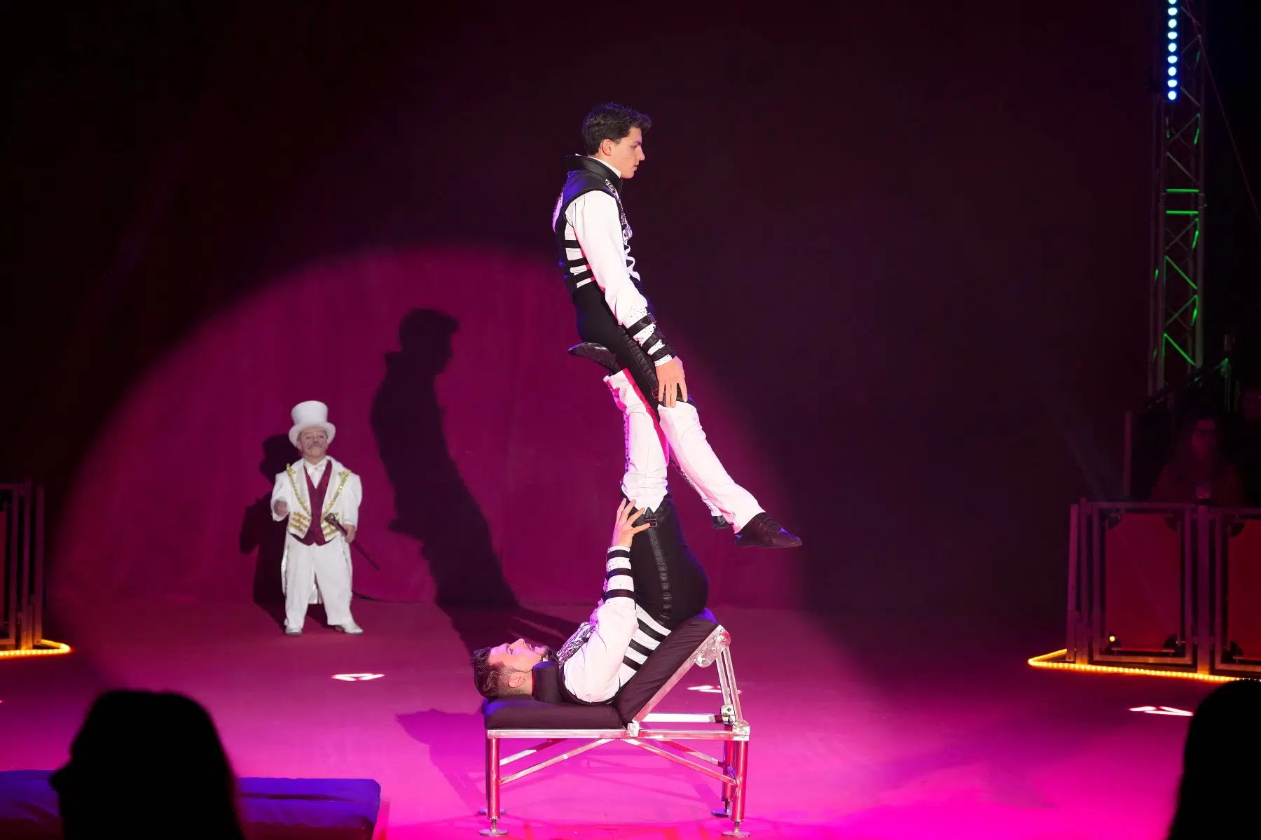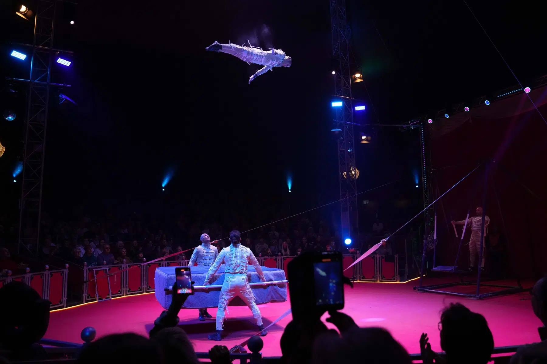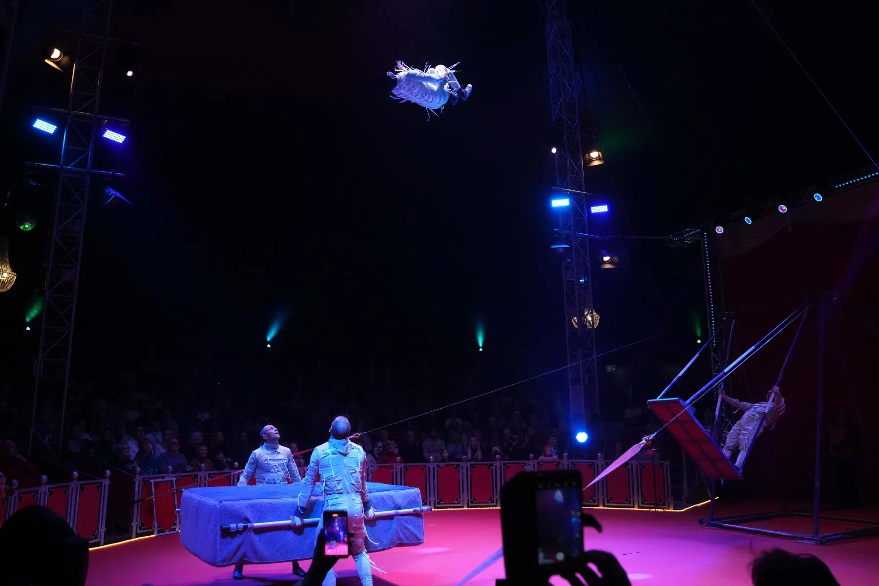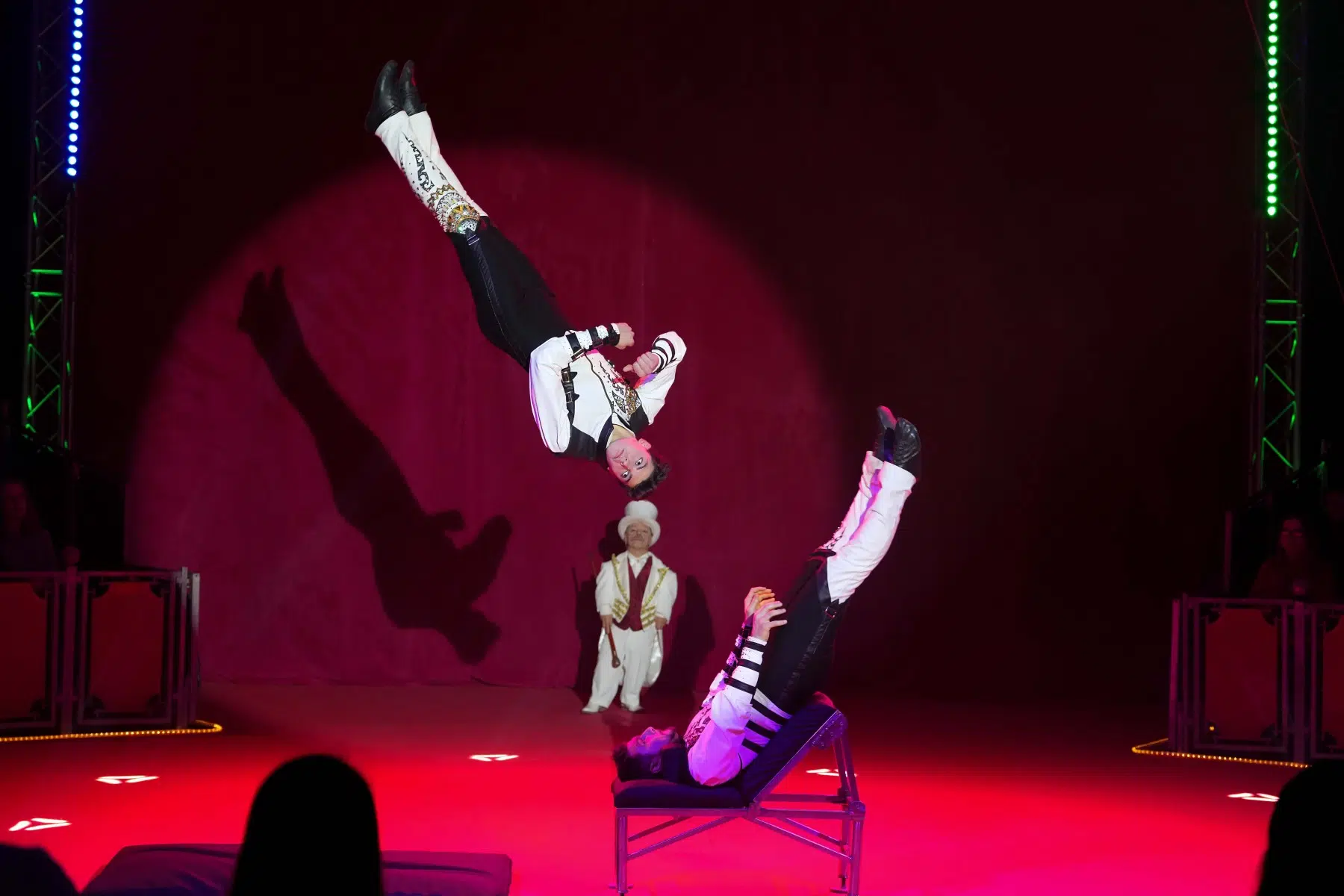Die Demian Artistics Group beeindruckt mit ihrer Reck-Performance und setzt später mit der spektakulären Todesschaukel den dramatischen Höhepunkt des Abends. Ihre Perfektion und der Mut ihrer Darbietungen sorgen für tosenden Applaus.