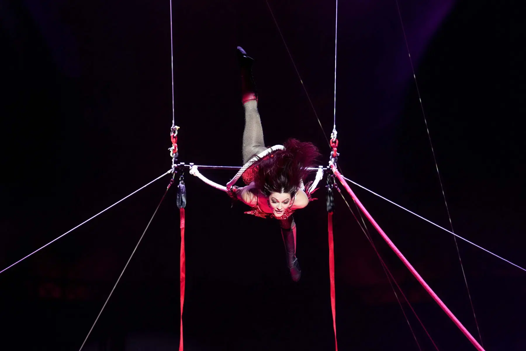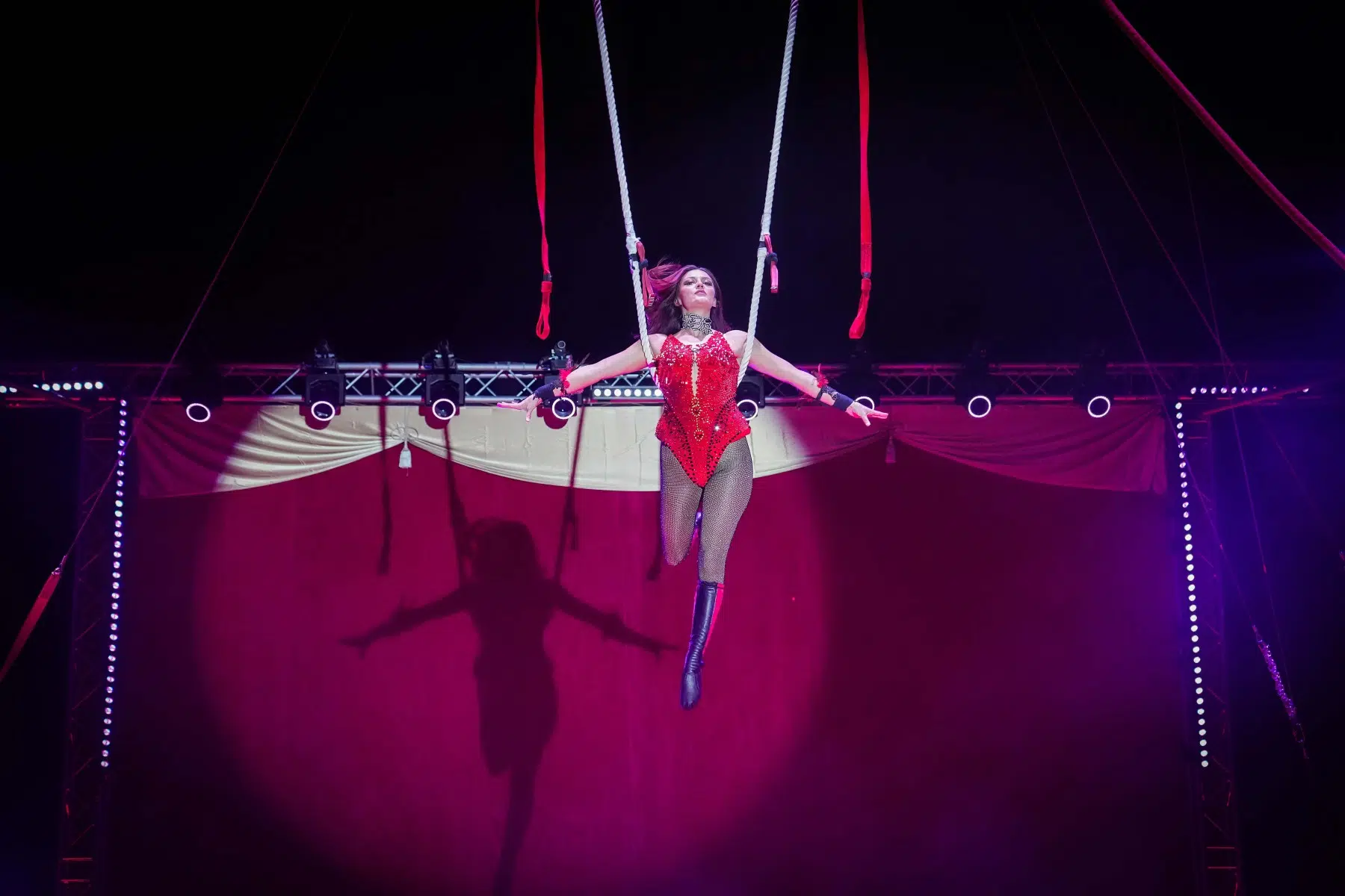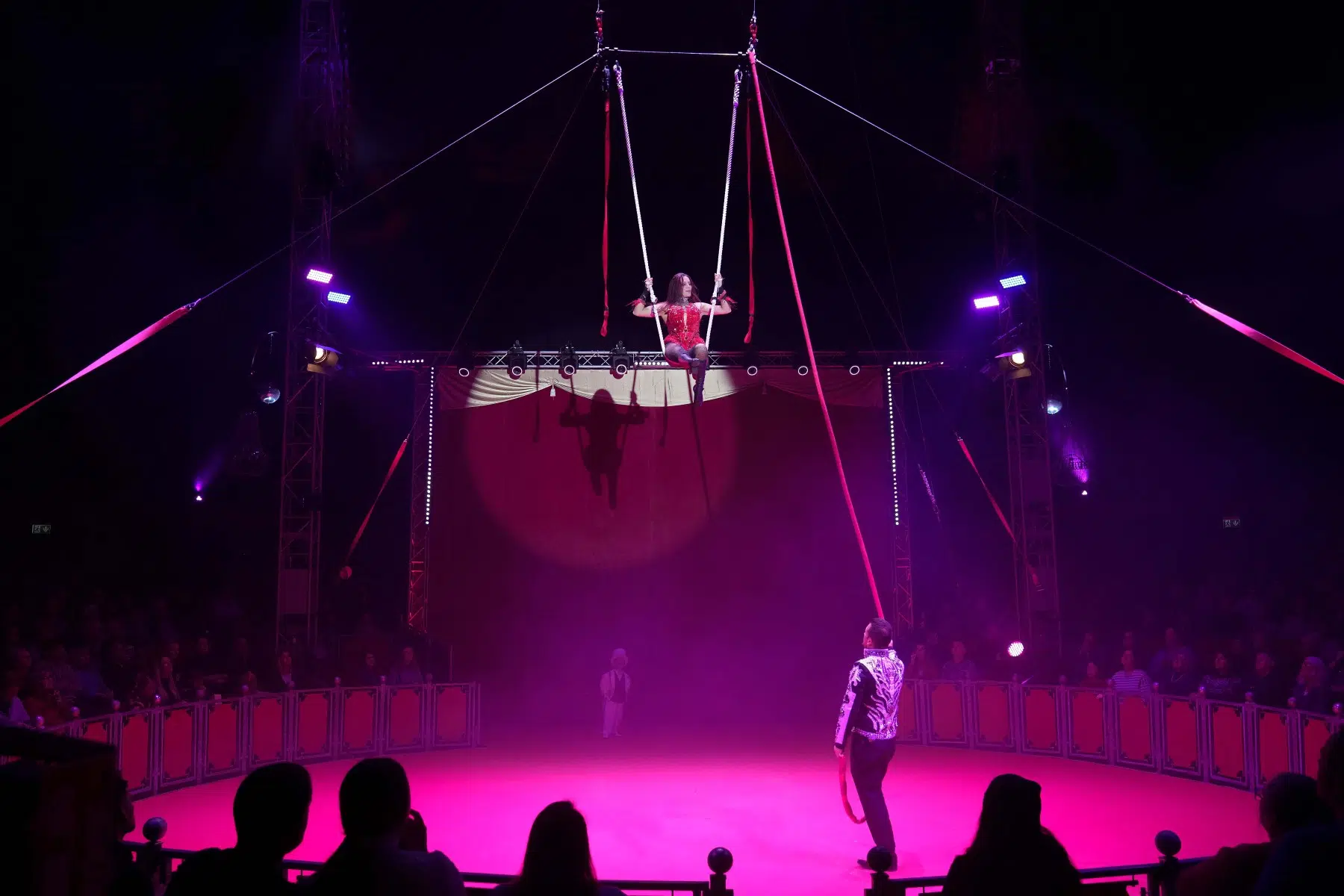 Einer der aufregendsten Momente ist der Auftritt von Ninja Cristallo am Schwungseil. Ihre Leichtigkeit und die kühnen Manöver in schwindelerregender Höhe lassen das Publikum den Atem anhalten.