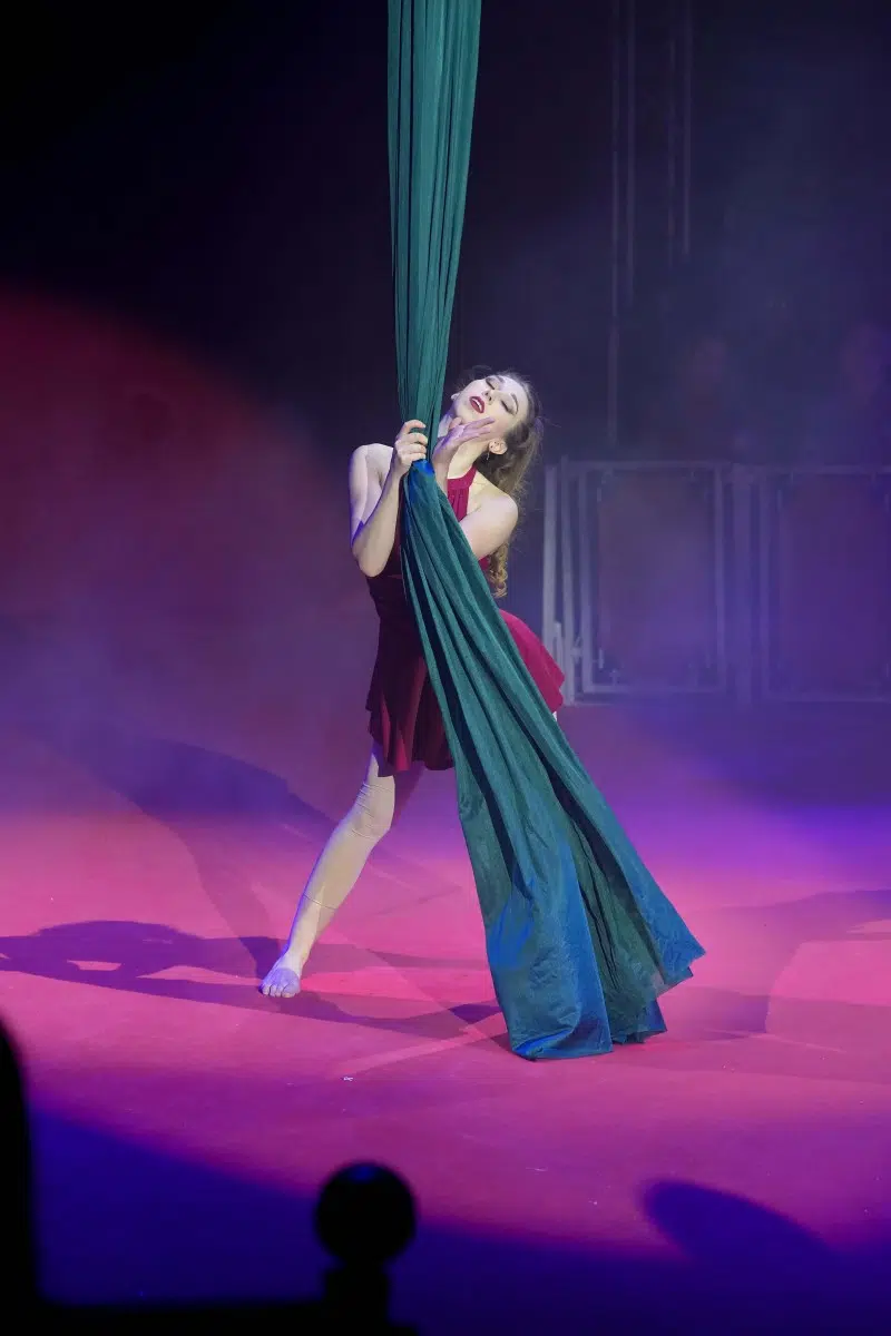 Shannon Folco Arnado fasziniert mit einer Antipodenkunst, die durch ihre Präzision und Kreativität hervorsticht. Guzeli Kudairova schließt sich mit einer anmutigen Darbietung an Tüchern an, bei der sie scheinbar schwerelos durch die Luft gleitet.