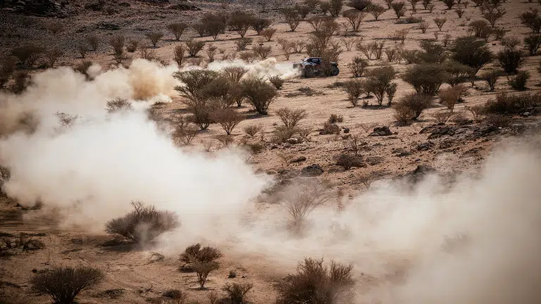 Die Etappe begann mit 150 Kilometern, die durch Wadis und über schnelle Sandpisten führten, begleitet von beeindruckenden Landschaften. Darauf folgten etwa 60 Kilometer mit schnellen Schotterpassagen, bevor die Strecke bis Kilometer 240 in die Berge anstieg. Nach einer kurzen, 13 Kilometer langen neutralisierten Passage auf Asphalt ging es auf etwa 80 Kilometern erneut über breite und schnelle Pisten. Den Abschluss bildeten temporeiche Wege durch Canyons und kurze Off-piste-Abschnitte, die direkt ins Ziel am Biwak in Bisha führten.