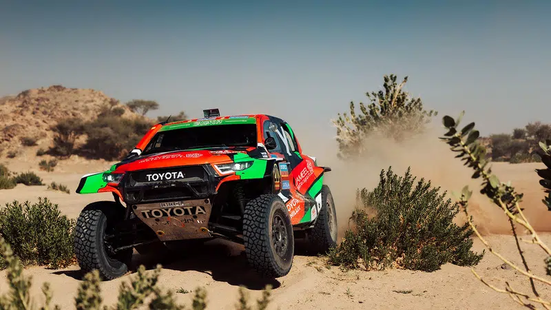 Bisha, Saudi-Arabien (5. Januar 2025) – Wir lieben es, wenn ein Plan funktioniert: Yazeed Al-Rajhi und Timo Gottschalk haben ihre späte Startposition am ersten Tag der 48-Stunden-Extrem-Etappe in die virtuelle Gesamtführung umgemünz. Als 19. auf die Strecke gegangen, setzten sie sich von Beginn an in der Spitzengruppe fest und führte lange Zeit das Klassement an. Bei Kilometer 618 von 967 liegen sie sowohl auf der Wertungsprüfung als auch im Gesamtklassement 1:08 Minuten vor Nasser Al-Attiyah/Edouard Boulanger (QAT/FRA), die derzeit auf Rang zwei liegen. Wie zuvor angenommen, büßten vorallem die am Vortag erfolgreichen und damit früh gestarteten Teilnehmenden auf der enorm fordernden Wertungsprüfung bisher viel Zeit ein. Von den Top-5-Duos befindet sich keines mehr in der Spitzengruppe.