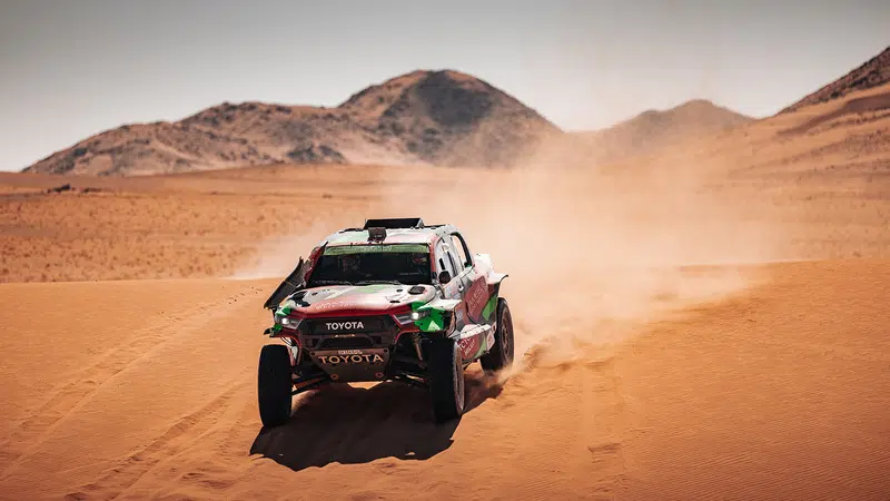 Bisha, Saudi-Arabien (6. Januar 2025) – Back with a bang: Yazeed Al-Rajhi und Timo Gottschalk haben sich mit einem beeindruckenden Etappensieg bei der Rallye Dakar 2025 zurück in die Spitzengruppe gekämpft. Auf der 48-Stunden-Etappe mit einer 967 Kilometer langen Wertungsprüfung rund um Bisha sicherte sich das saudi-arabisch-brandenburgische Duo nach knapp elf Stunden reiner Fahrzeit den Sieg – knapp vor ihren Dauerrivalen Nasser Al-Attiyah und Edouard Boulanger (QAT/FRA, Dacia). In der Gesamtwertung liegen sie nun mit einem Rückstand von 2:45 Minuten hinter ihren Toyota-Teamkollegen Henk Lategan und Brett Cummings (RSA/RSA) auf Platz zwei.