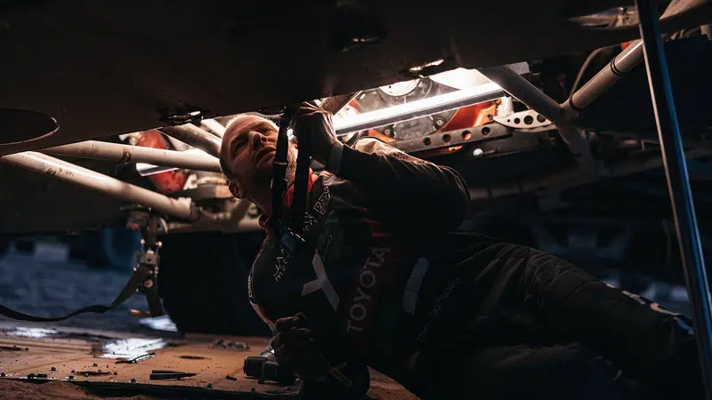 Bei der Marathon-Etappe kann Timo Gottschalk auch nach erledigter Arbeit als Navigator sein Können einbringen. Der Brandenburger ist nicht nur von Haus aus Fahrzeugingenieur, zu seinen Unternehmungen zählt auch eine Kfz- und Motorrad-Werkstatt in seiner Heimatstadt Rheinsberg. Schon auf der zweiten Etappe, der mittlerweile gefürchteten 48-Stunden-Etappe, war sein Einsatz gefragt: Am Abend dichtete er ein kleines Leck an der Ölwanne und erneuerte den Riemen an einer der Lichtmaschinen. Mit Erfolg: Auf der 48-Stunden-Etappe kamen Sie als Erste über die Ziellinie, wegen einer Zeitgutschrift für einen Teamkollegen wurden Al-Rajhi/Gottschalk im Nachhinein als Zweite gewertet.