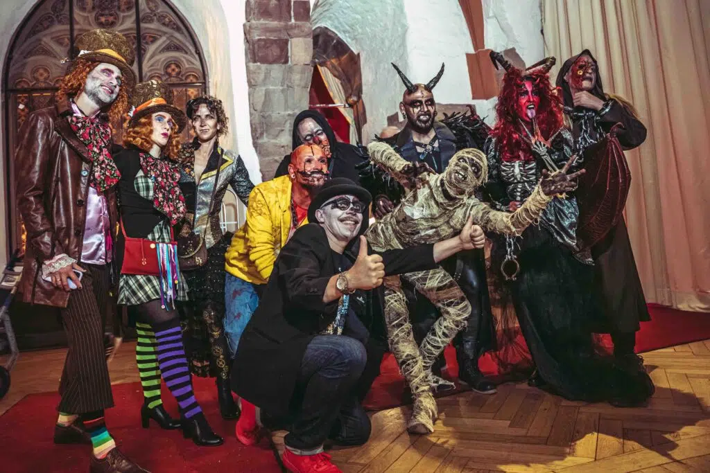 Die Nacht der Nächte beginnt, wenn gewünscht, bereits um 18 Uhr mit einem Grusel-Buffet, um Kraft zu sammeln für das, was danach kommt. Denn ab 20:30 Uhr verwandelt sich der Königsaal in einen Ballsaal des Horrors: Bleiche Gestalten in viktorianischen Gewändern oder Vampire mit blutverschmierten Mundwinkeln und funkelnden Augen samt ihrer Gehilfen bevölkern die Tanzfläche. Eingeheizt wird mit Musik der 80er und 90er-Jahre von der gleichwohl Kult-DJane Simoné, die zwanzig Jahre beim Ball der Vampire aufgelegt hat. Hier erwartet die Horrorgesellschaft noch mit einem Live-Auftritt eine Überraschung. Es steht der US-amerikanische Sänger Jimmie Wilson auf der Bühne, der das Publikum mit Funk & Soul Hits anfeuern wird. In der Kellergruft des Schlosses hingegen ertönen aus den Lautsprechern perfekte Beats für noch mehr Partystimmung – abgemischt von DJ Chris Stockert. Er bringt als Live-Act noch gesangliche Unterstützung mit. Wenn bis zu 700 unheimliche Nachtkreaturen im Dämmerschein tanzen und singen, dann wird das Grauen greifbar. Wer ist Mensch, wer unsterblich?
