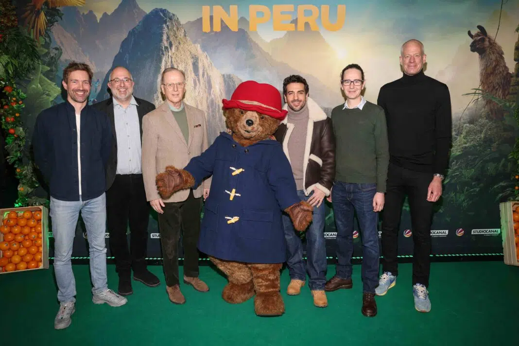 Titelbild: Feierten gestern die umjubelte Deutschlandpremiere von PADDINGTON IN PERU im Berliner Zoopalast (v. l. n. r.): Lutz Rippe (Co-Managing Director Studiocanal), Hooman Afshari (Co-Managing Director Studiocanal), S.E. Augusto David Teodoro Arzubiaga Scheuch (Peruanischer Botschafter in Deutschland), Paddington, Elyas M’Barek (deutsche Stimme von Paddington), Deputy Head of Mission Kieran Drake (Stellvertreter des Britischen Botschafters in Berlin) und Kalle Friz (CEO Studiocanal Germany) (©Studiocanal / Harald Fuhr)