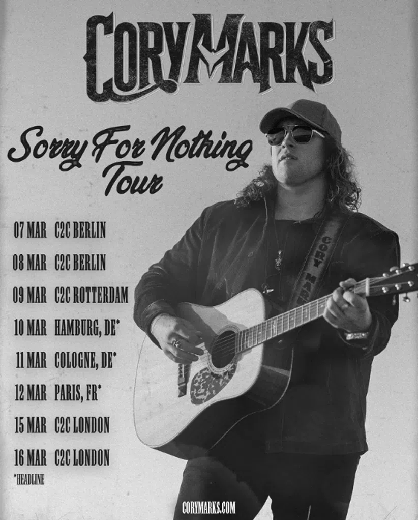 CORY MARKS ist auf vielen großen Country- und Rockfestivals in ganz Nordamerika aufgetreten und hat seine energiegeladene Performance auf gemeinsamen Touren mit Künstlern wie Theory Of A Deadman, Halestorm, ZZ Top und Five Finger Death Punch bis hin zu Toby Keith, Travis Tritt und Brantley Gilbert einem breiten Publikum vorgestellt. Im März wird er als Headliner erstmals durch Großbritannien und Europa touren (7.-18. März), sowie beim Country 2 Country Festival in London, Berlin und Rotterdam auftreten. Im Anschluss daran wird er Dorothy im April auf ihrer US Tour supporten und im Mai eine Headline Tour in seinem Heimatland Kanada spielen. Tickets sind ab sofort erhältlich.