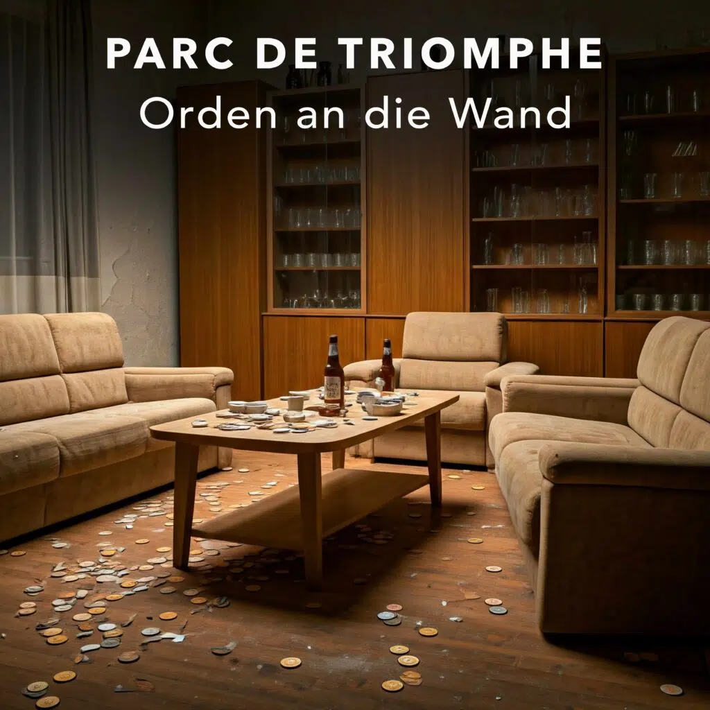 Mit „Orden an die Wand“ (Produktion: Alf Peherstorfer) veröffentlicht Parc de Triomphe einmal mehr eine eindrucksvolle Single, die sich kompromisslos mit der Auseinandersetzung und Abgrenzung von der Vergangenheit beschäftigt. Der Song, bass- und beat-lastig, ist eine musikalische Einladung, sich von überholten Idealen und festgefahrenen Erinnerungen zu verabschieden.