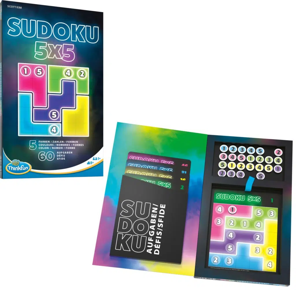 Das Zahlenrätsel bringt frischen Wind in den klassischen Denksport! 60 spannende Sudoku-Aufgaben fordern heraus, das 5×5-Raster so zu füllen, dass in jeder Reihe, Spalte und Farbregion die Zahlen eins bis fünf jeweils