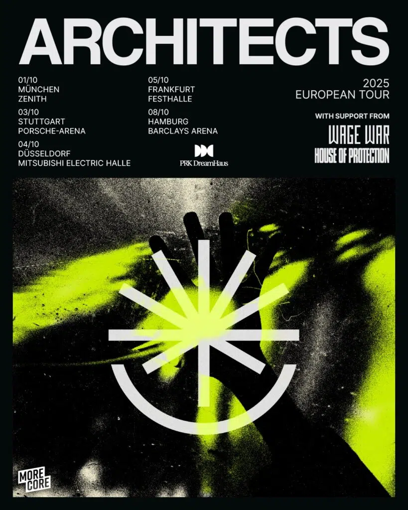 Das erst kürzlich veröffentlichte 11. Studioalbum wurde von Fans und Kritikern gleichermaßen gefeiert und bringt die britischen Metalcore Legenden nun zu ausgewählten Shows in München, Stuttgart, Düsseldorf, Frankfurt und Hamburg. Als Support sind die Genre-Kollegen von Wage War und die US-amerikanischen Senkrechtstarter House of Protection mit dabei. Letztere sind auch als Gäste auf dem aktuellen ARCHITECTS Album „The Sky, The Earth & All Between” vertreten, das gerade auf Platz #3 der deutschen Albumcharts eingestiegen ist, und im Juni auch erstmals bei Rock am Ring und Rock im Park auftreten werden.