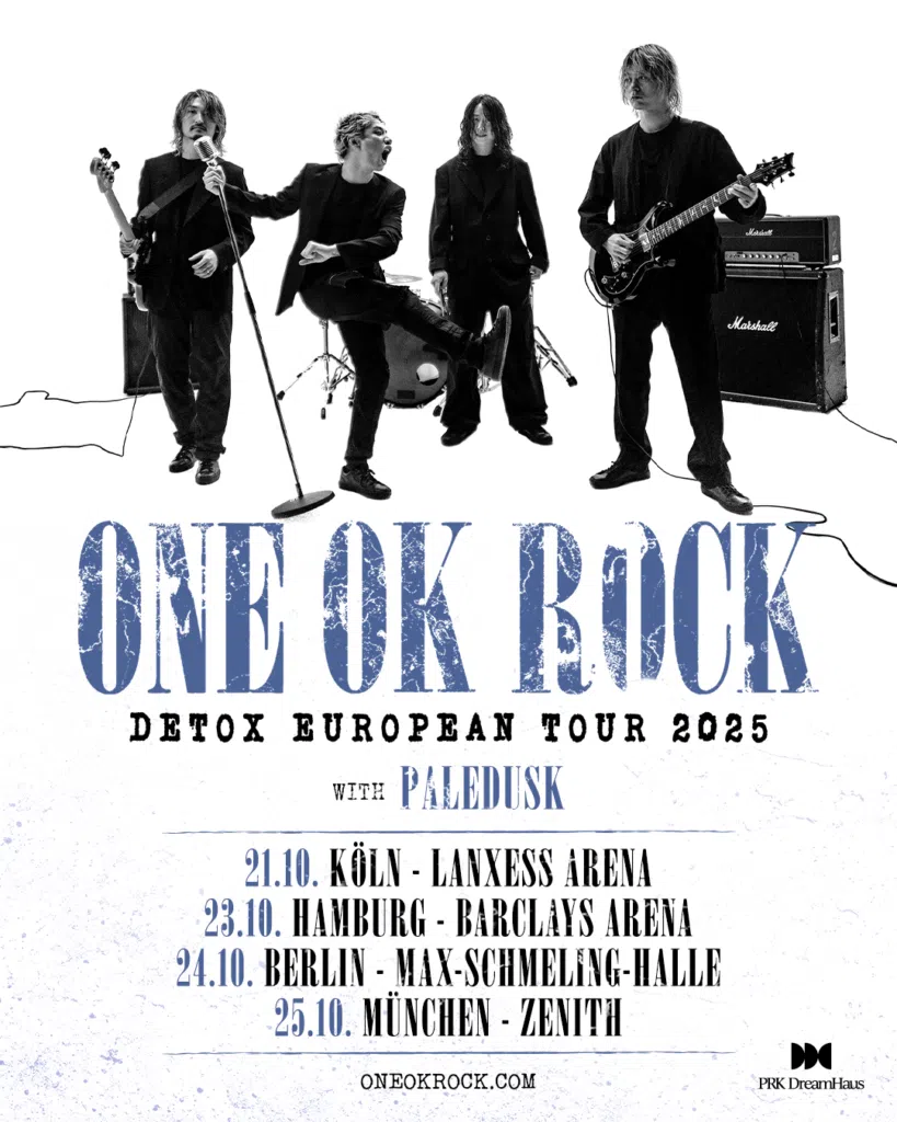 ONE OK ROCK kündigen die DETOX European Tour 2025 an. Im Oktober wird die Band aus Japan zum aktuellen Album „Detox“ ihre bisher größten Shows auf dem europäischen Kontinent spielen, darunter auch vier Konzerte in Deutschland. Zuvor werden sie bereits durch Mittel- und Nordamerika und ihre Heimat Japan touren sowie gemeinsam mit Linkin Park im Stade de France, Paris auftreten.