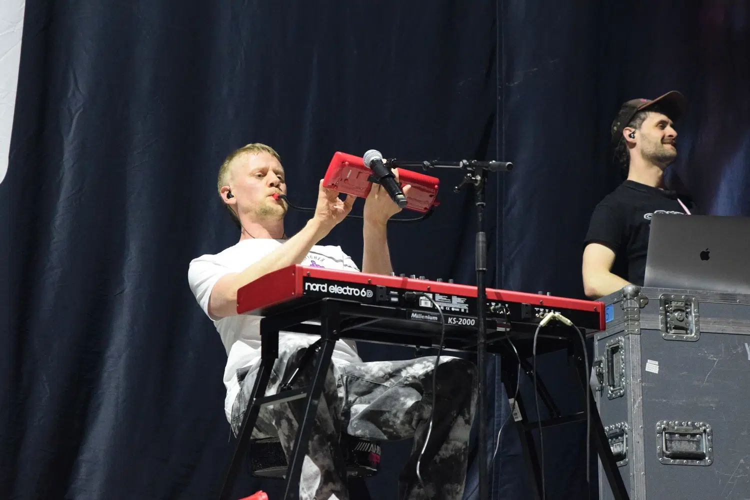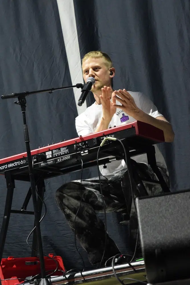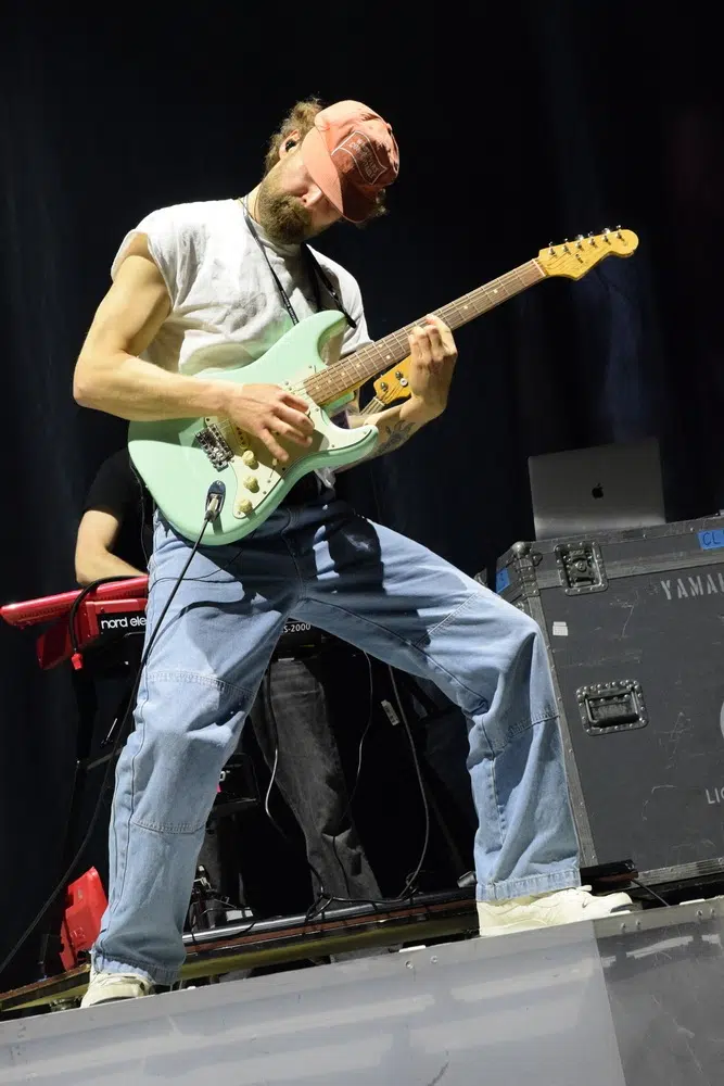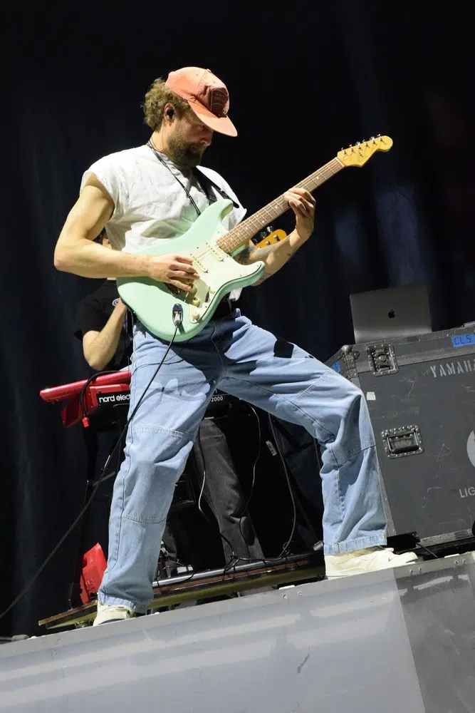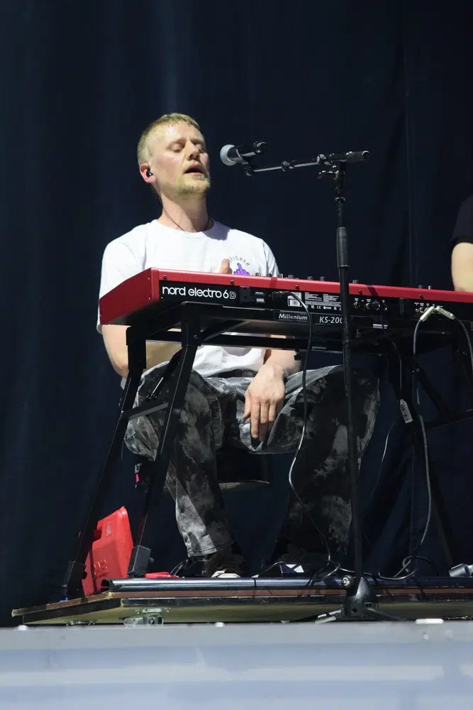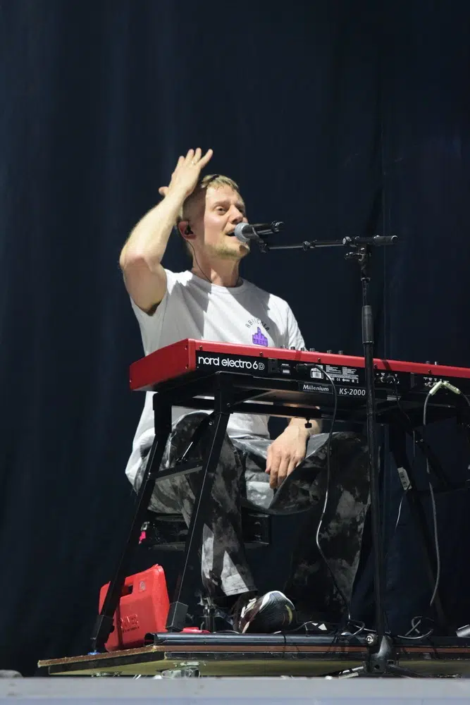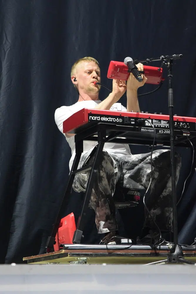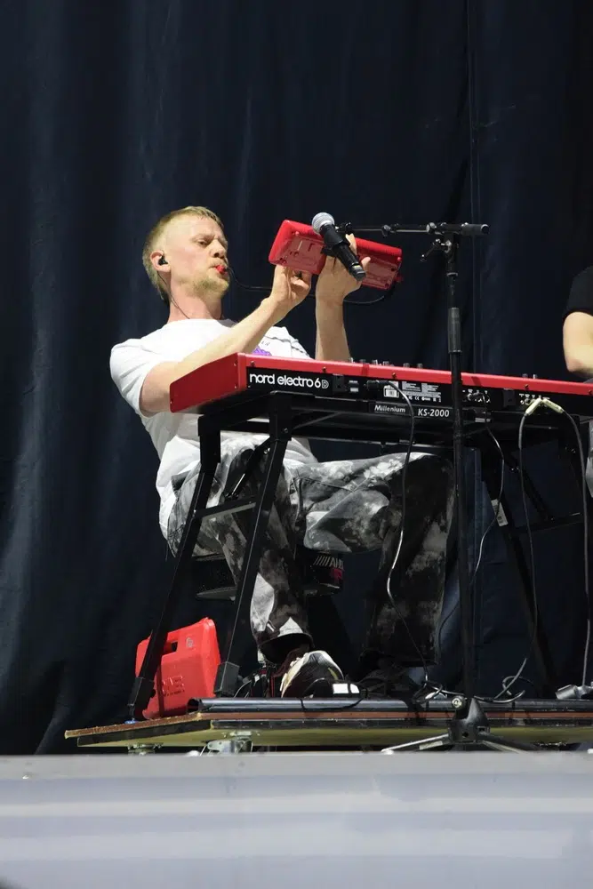 Als ich im Fotograben stand, fiel mir auf, dass die Absperrung tief ins Publikum reichte – aber es gab dort keine Bühne. Während „Görlitzer Park“ wurde klar, wofür dieser Bereich gedacht war: Die Bandmitglieder wurden auf einer Plattform – oder mehreren, das konnte ich von meinem Standpunkt aus nicht genau sehen – durch diesen Abschnitt bewegt. Unterstützt durch Laser- und Lichteffekte entstand dabei ein unvergessliches Bild.