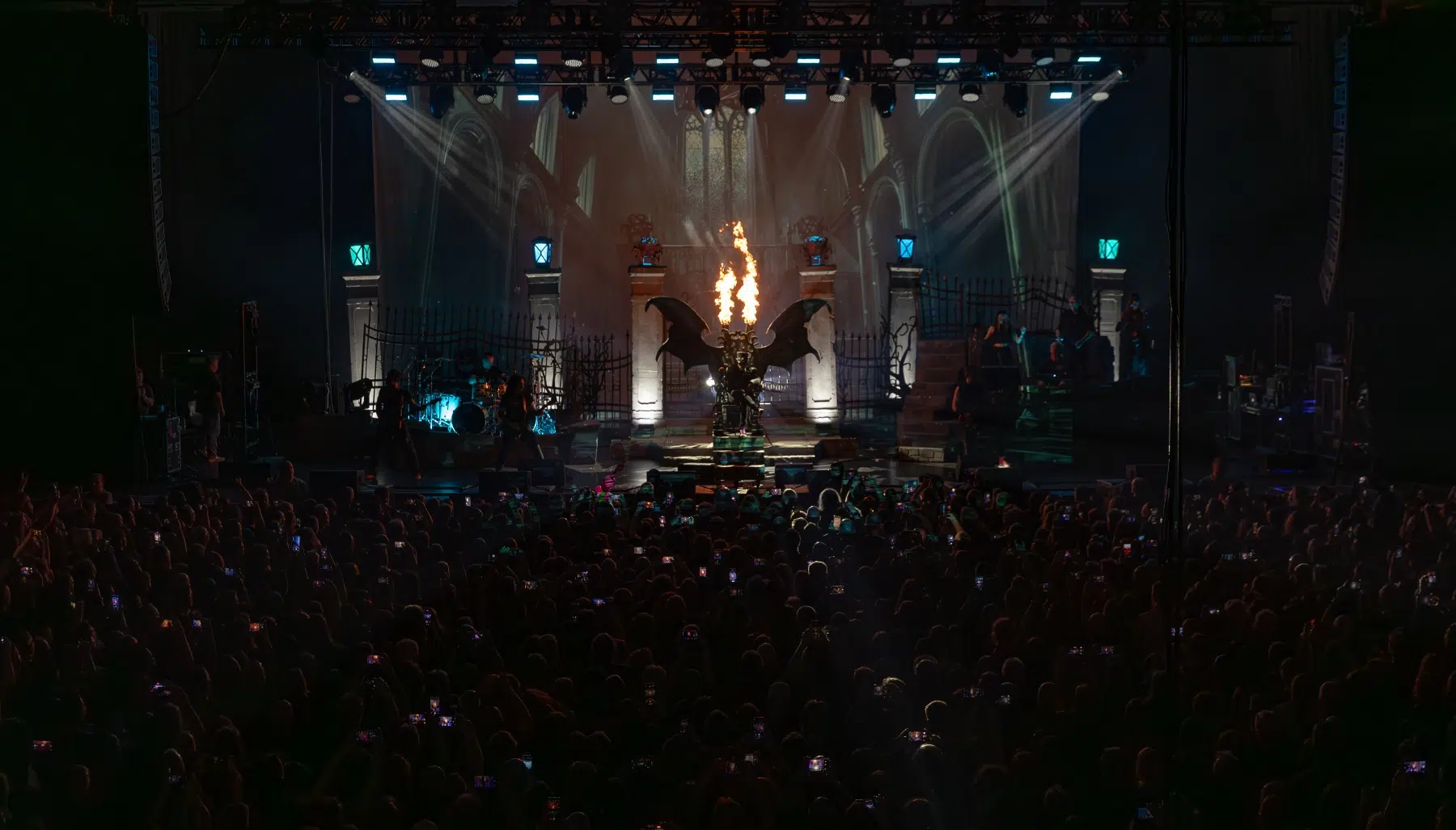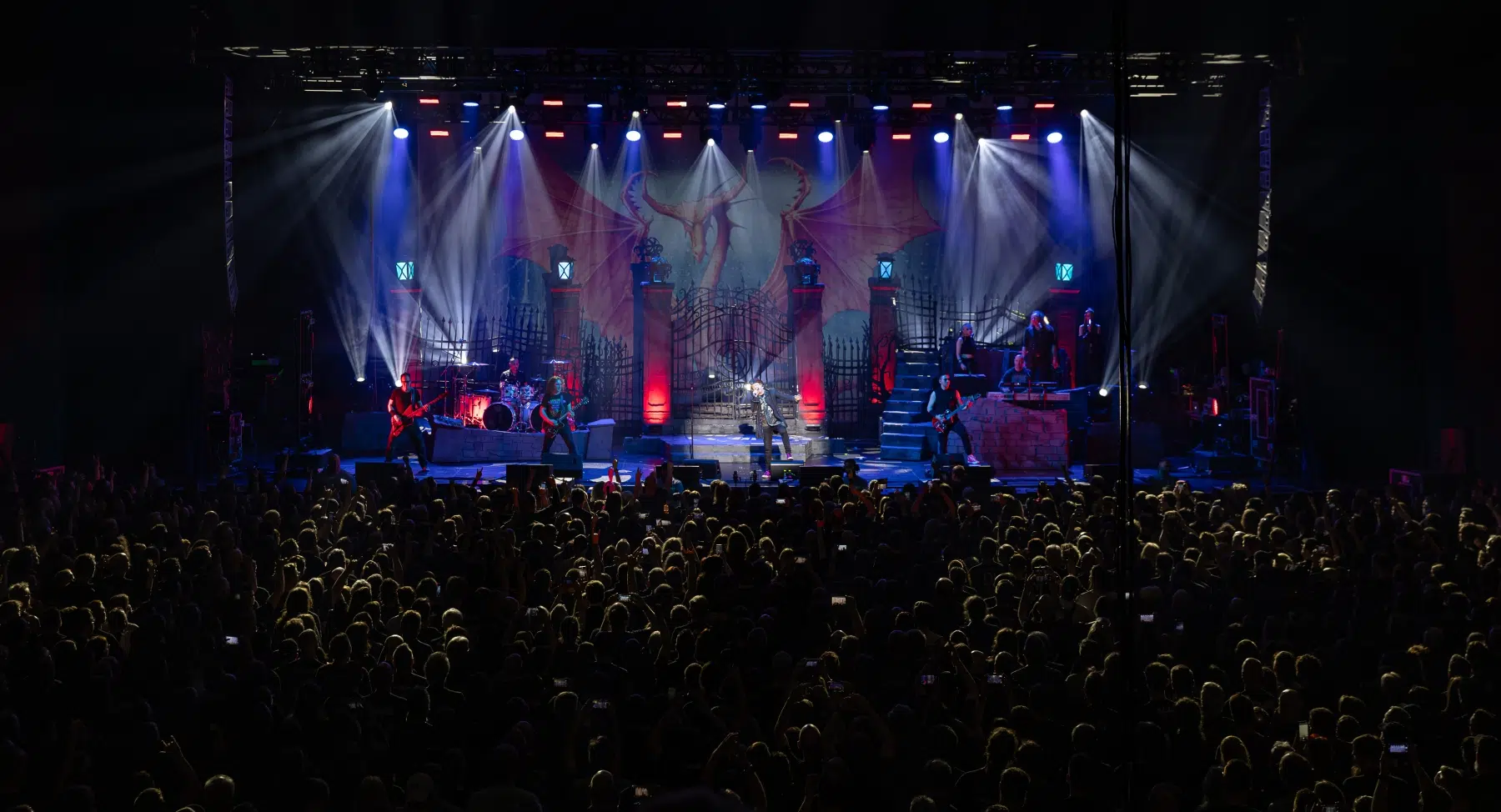 Ein weiteres Highlight war das opulent gestaltete Bühnenbild, das mit 3D-Projektionen, aufwendiger Lichttechnik, beweglichen Kulissen und punktgenauer Pyrotechnik visuell begeisterte. Die Zuschauer:innen wurden förmlich in die fantastische Welt von Avantasia hineingezogen – ein Gesamtkunstwerk aus Musik und Bildsprache, das perfekt zur epischen Thematik der „Here Be Dragons“-Tour passte.