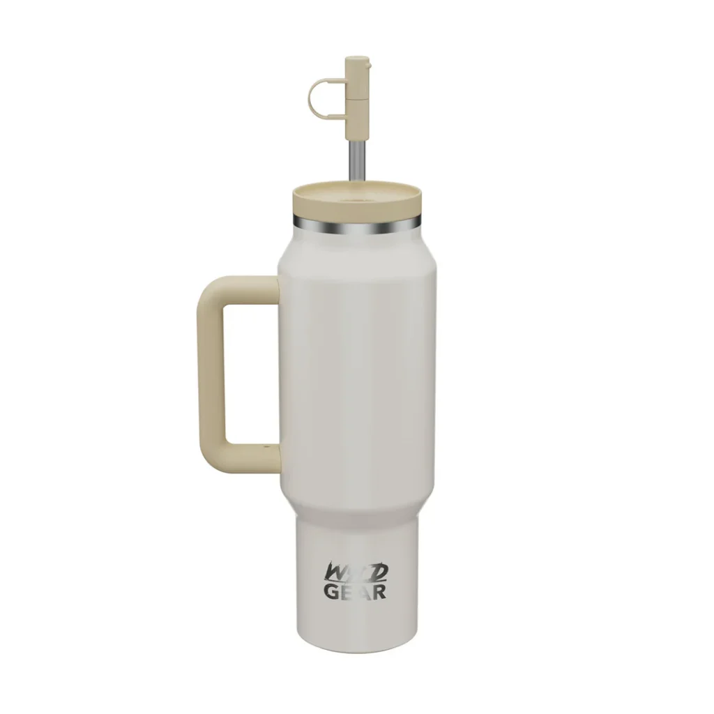 Der WYLD SYDE TRAVEL TUMBLER von Wyld Gear hält Getränke dank doppelwandiger Vakuumisolierung heiß oder kalt. Mit auslaufsicherem Deckel, bruchsicherem Strohhalm und Soft-Touch-Oberfläche ist er praktisch und stilvoll. In zwei Größen (887 ml/1182 ml) und 11 verschiedenen Farben erhältlich.
