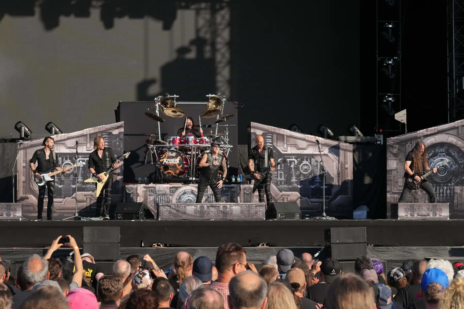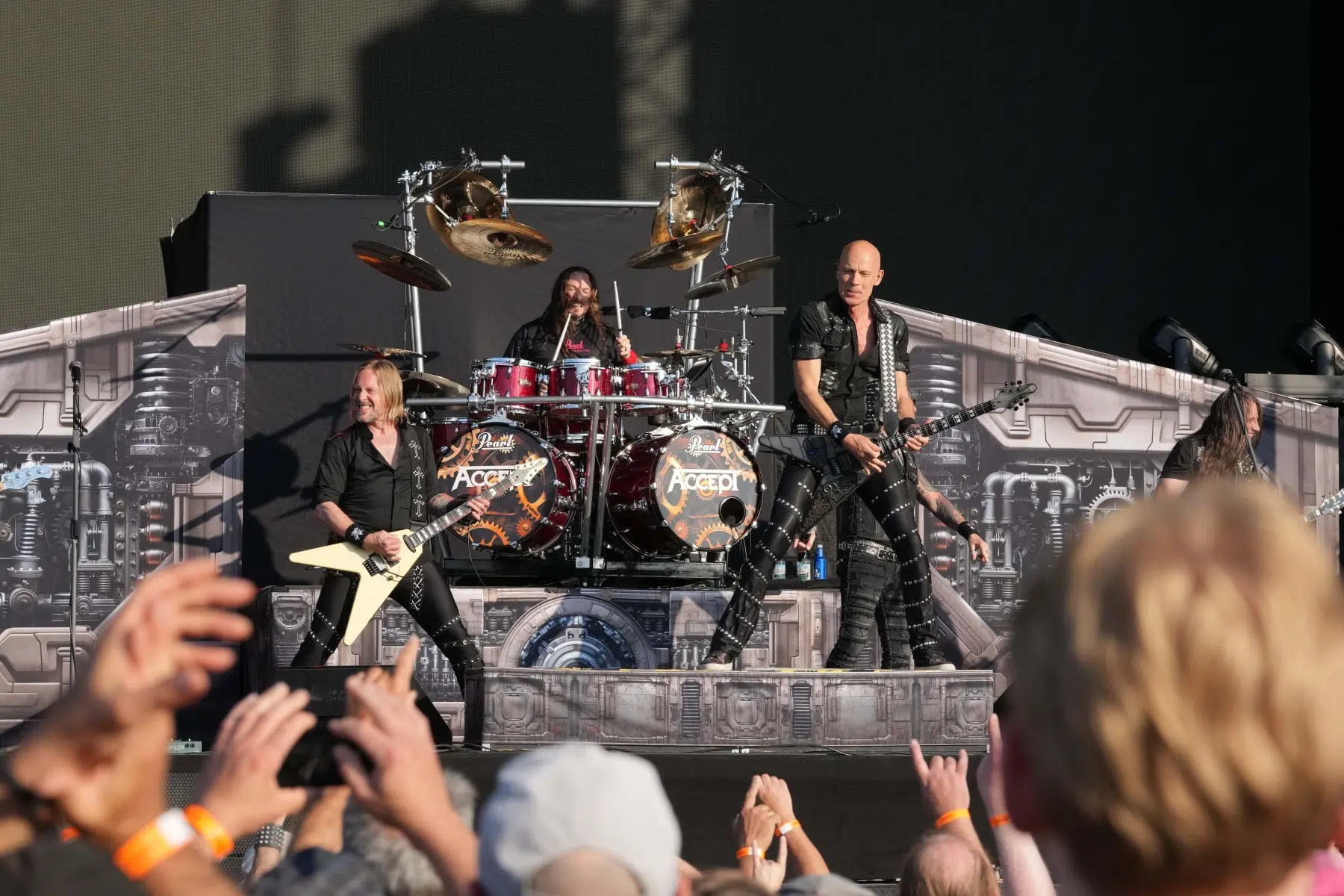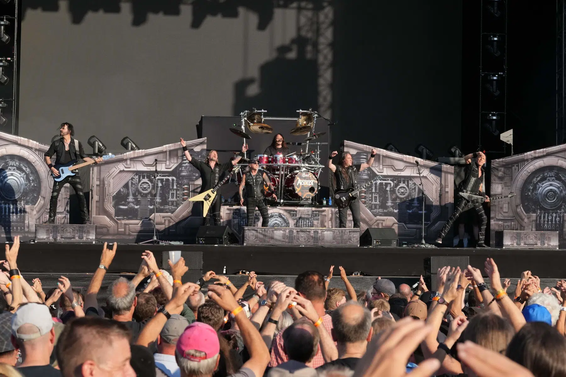 Nach einer kurzen Umbaupause betraten Accept die Bühne und lieferten in gut 60 Minuten einen gnadenlosen Parforceritt durch ihr Schaffen. Mit Hymnen wie „The Reckoning“, „Metal Heart“, „Princess of the Dawn“, dem unsterblichen „Balls to the Wall“ und dem rasant gespielten „Fast as a Shark“ zeigte die Band, warum sie auch international zur Elite des klassischen Heavy Metals gehört. Sänger Mark Tornillo brüllte sich durch das Set, während Wolf Hoffmann mit präzisen Gitarrensoli glänzte. Die Menge tobte – deutsches Metal-Handwerk in Bestform.