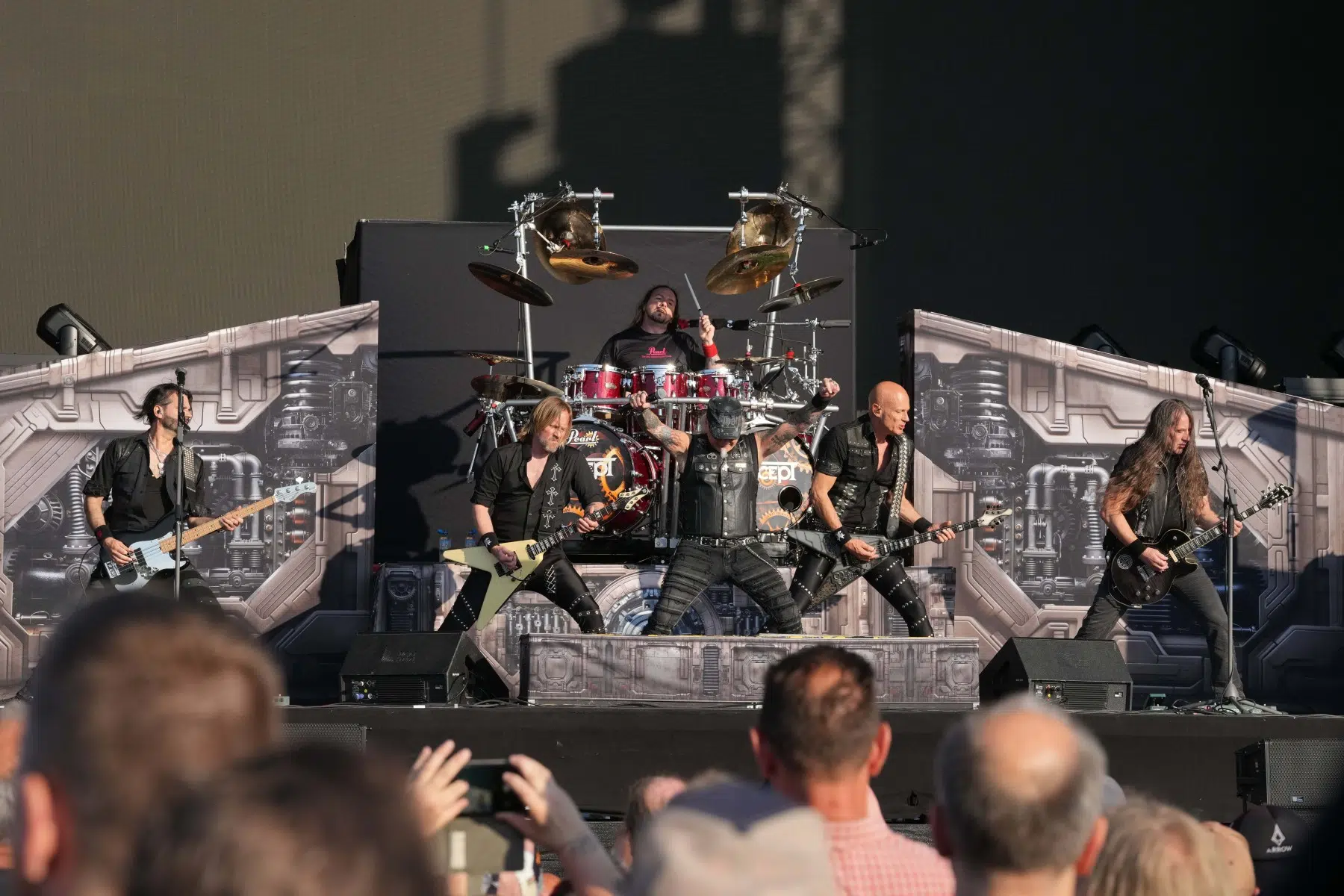 Rob Halford – die Ikone des Genres – betrat mit Lederjacke, Sonnenbrille und unnachahmlicher Bühnenpräsenz das Rampenlicht. Songs wie „Hell Patrol“, „You’ve Got Another Thing Comin'“, „Freewheel Burning“ und „Breaking the Law“ rissen das Publikum mit. Die Priest-Gitarrenfront mit Richie Faulkner und Andy Sneap schoss messerscharfe Riffs ins Publikum, während die Rhythmusfraktion punktgenau und kraftvoll durch das Set marschierte.