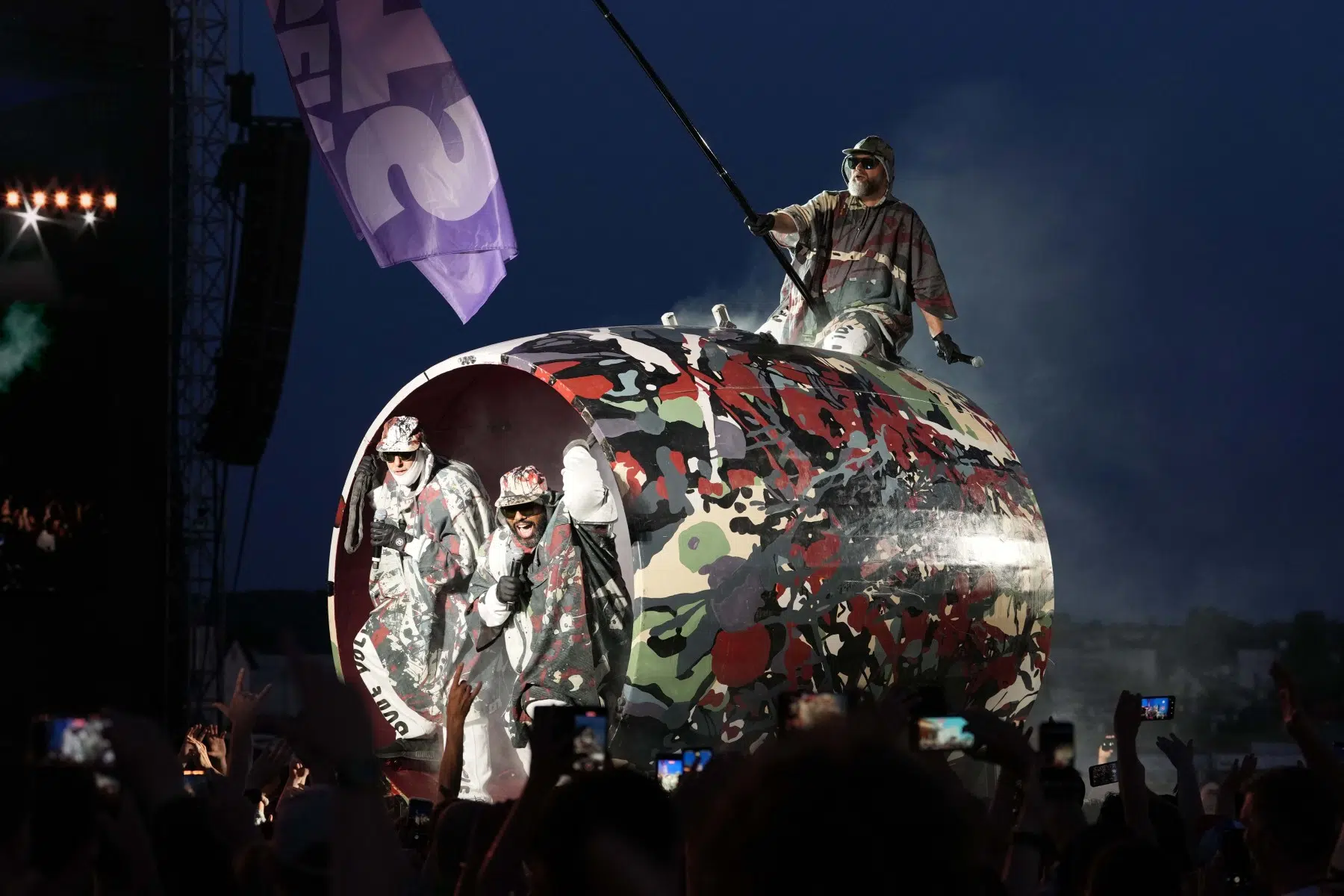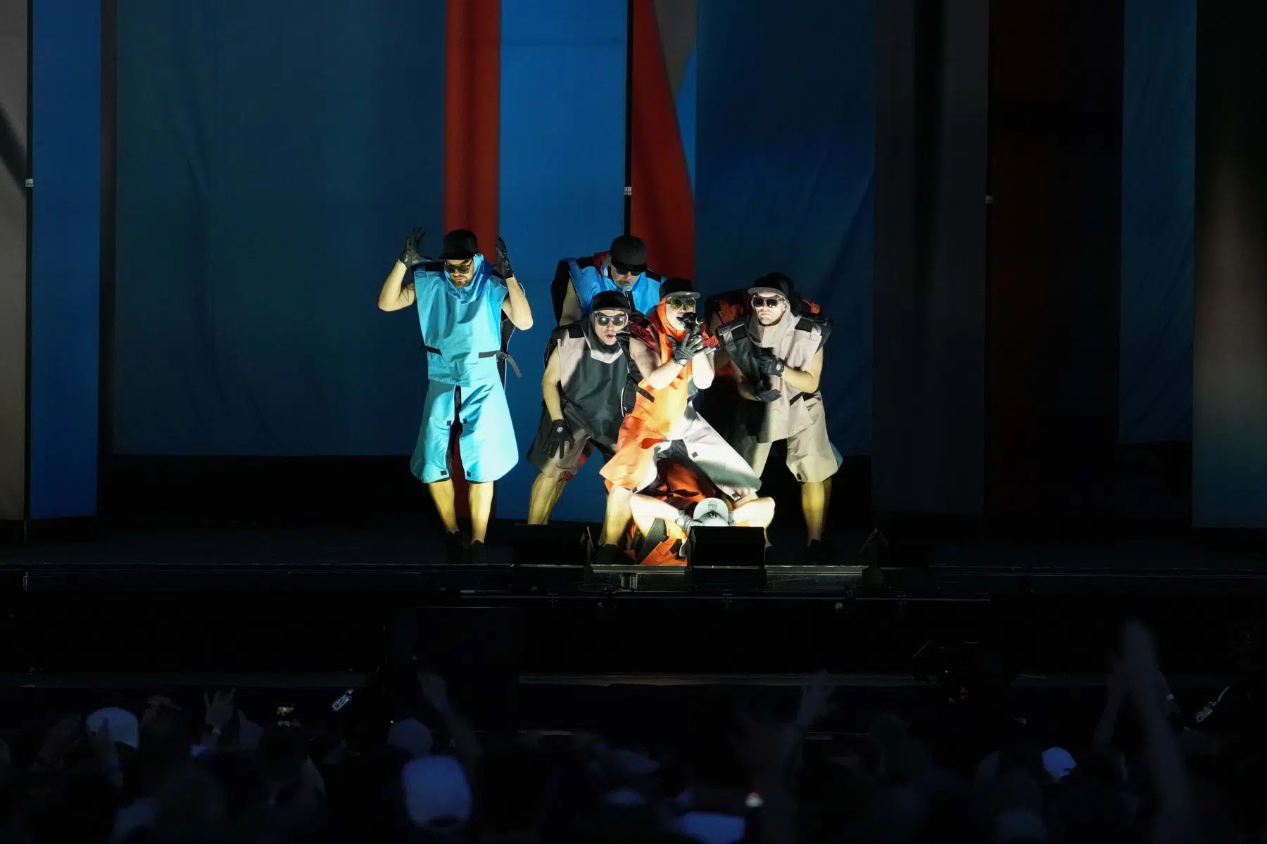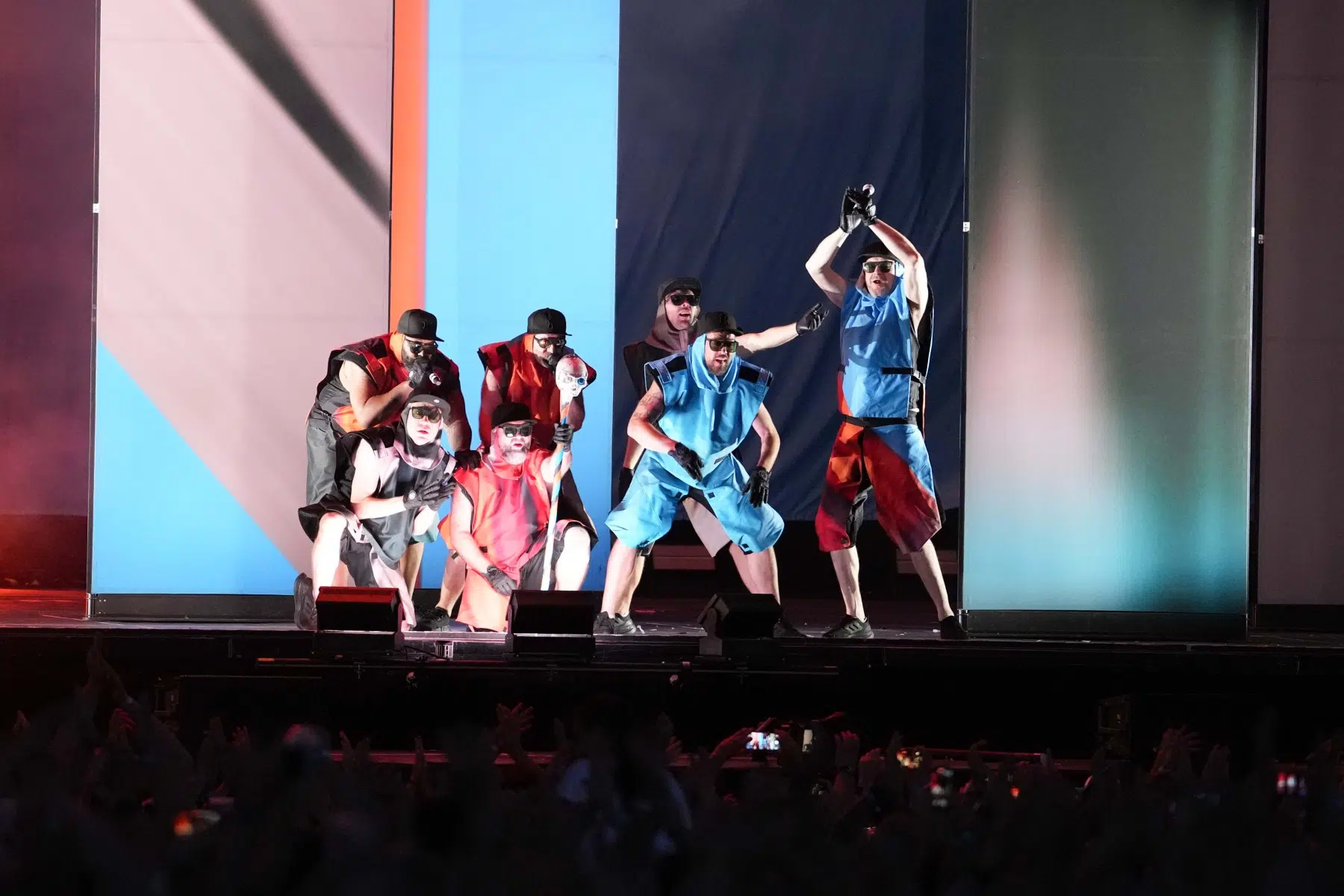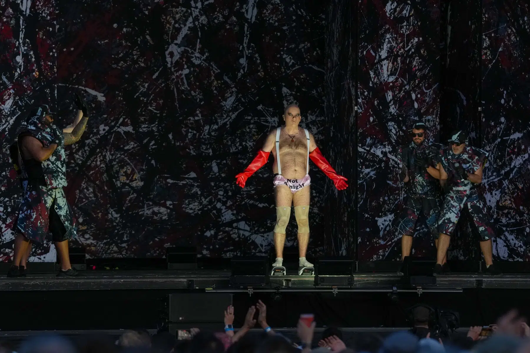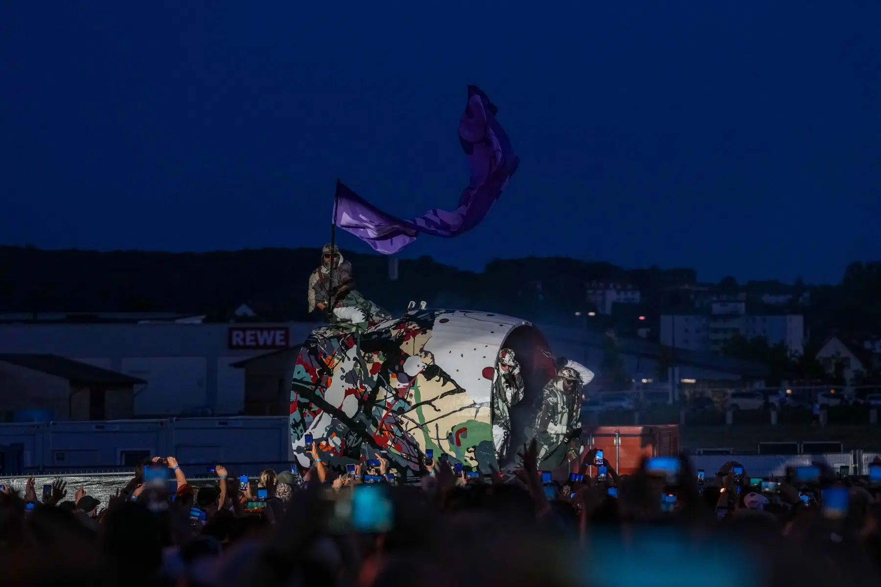 Schon bei den ersten Takten von „Denken Sie groß“ wurde klar: Das wird kein gewöhnlicher Konzertabend. Pyro, Licht, Konfetti, überdimensionale Kostüme und eine Bühnenshow, die eher an eine Mischung aus Theater, Protestmarsch und Clubnacht erinnert – DEICHKIND ziehen alle Register. Es ist ein kontrolliertes Chaos, das mit jeder Minute an Intensität gewinnt.