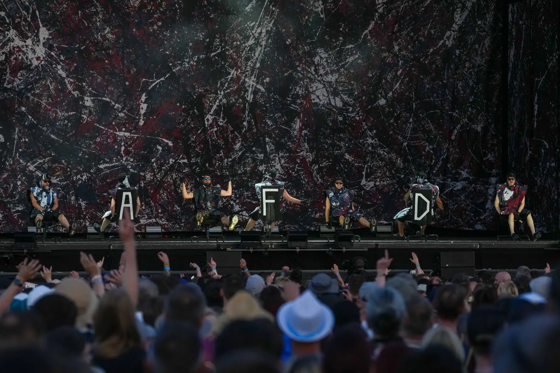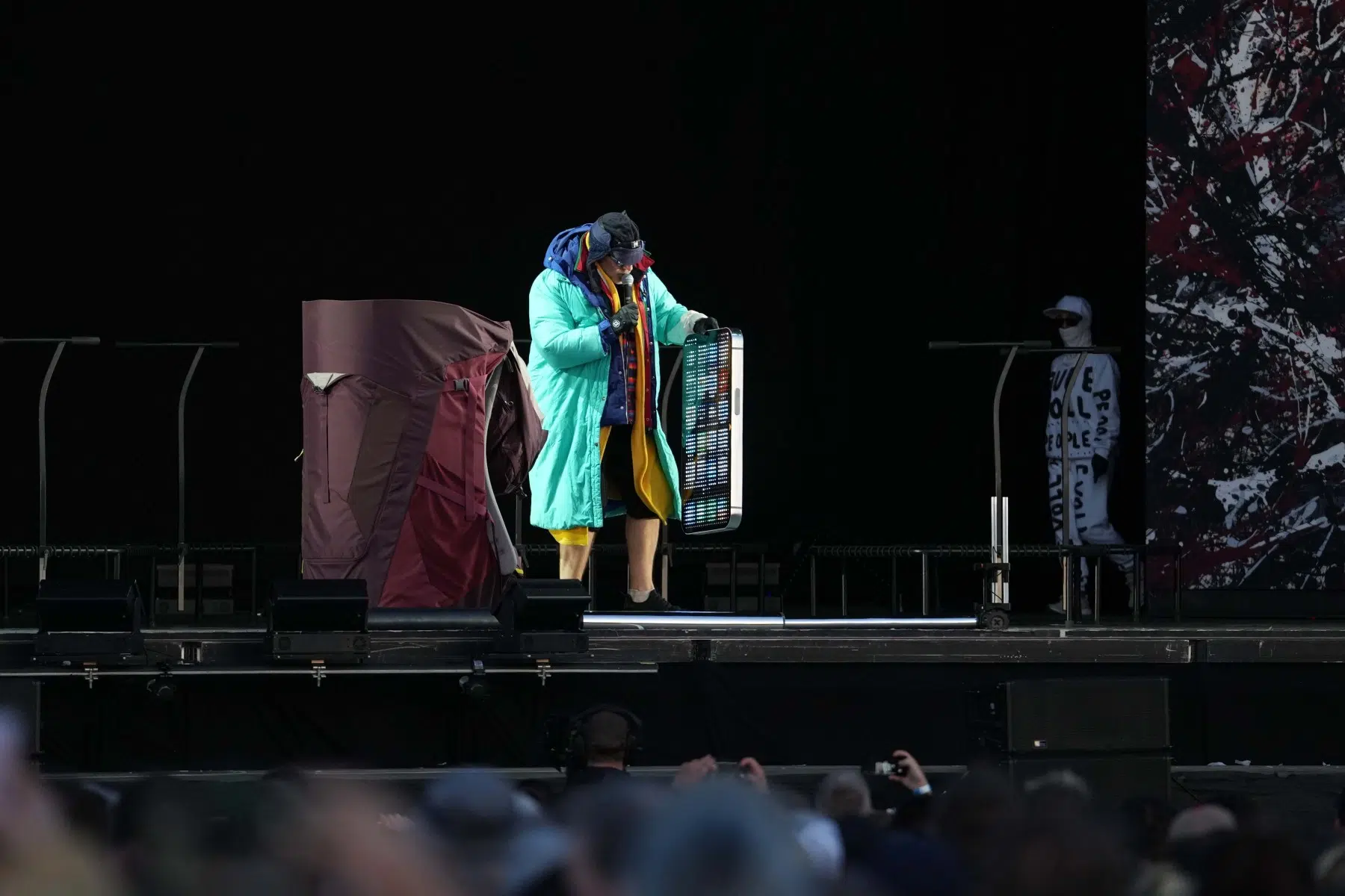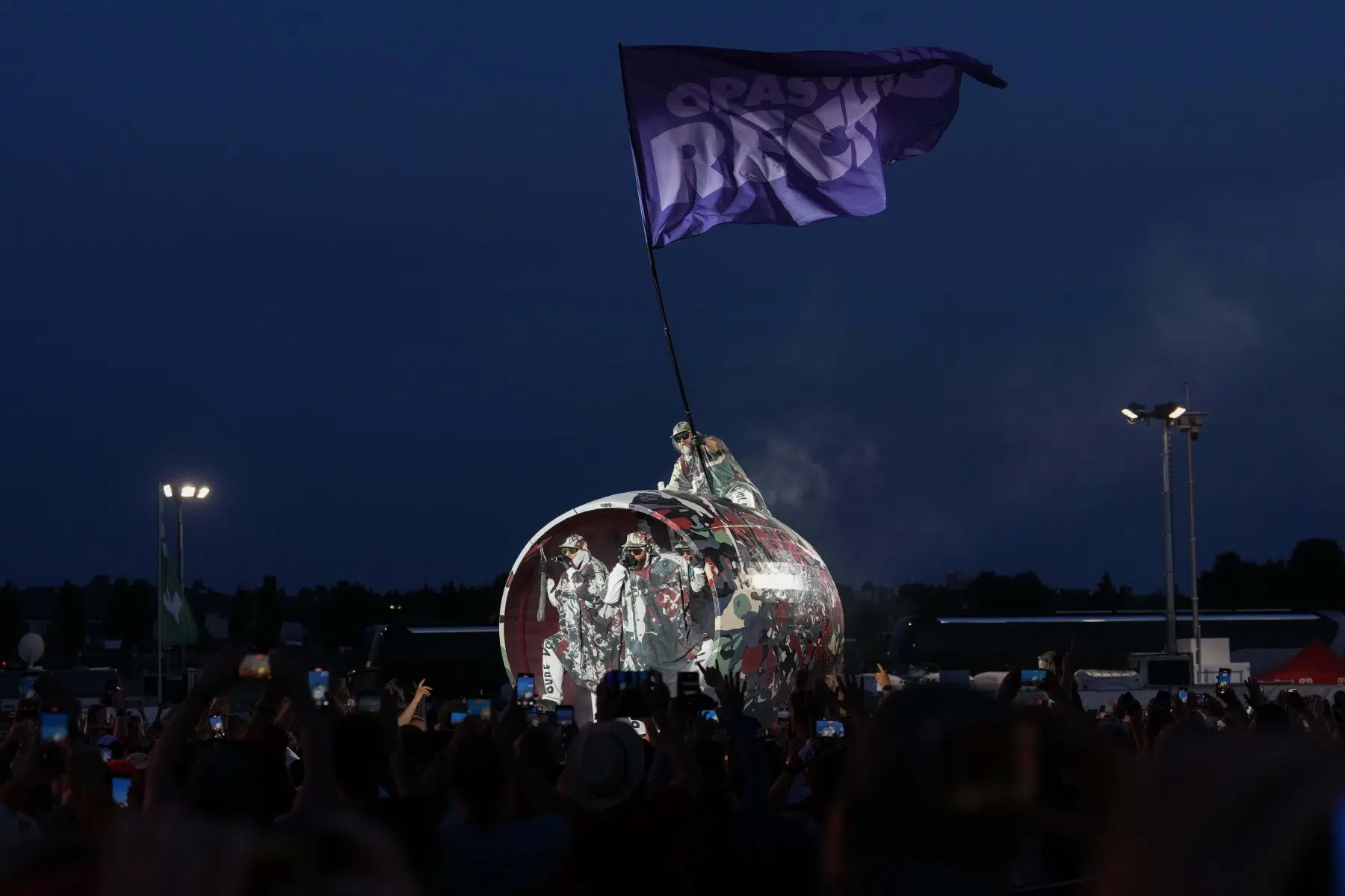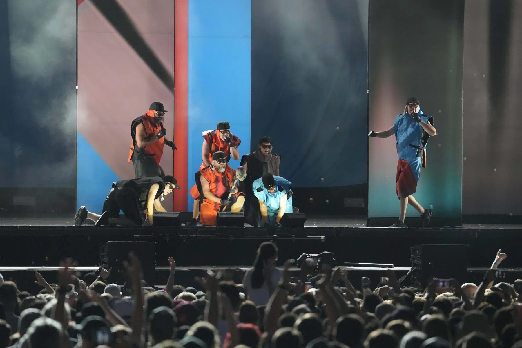 Schon bei den ersten Takten von „Denken Sie groß“ wurde klar: Das wird kein gewöhnlicher Konzertabend. Pyro, Licht, Konfetti, überdimensionale Kostüme und eine Bühnenshow, die eher an eine Mischung aus Theater, Protestmarsch und Clubnacht erinnert – DEICHKIND ziehen alle Register. Es ist ein kontrolliertes Chaos, das mit jeder Minute an Intensität gewinnt.