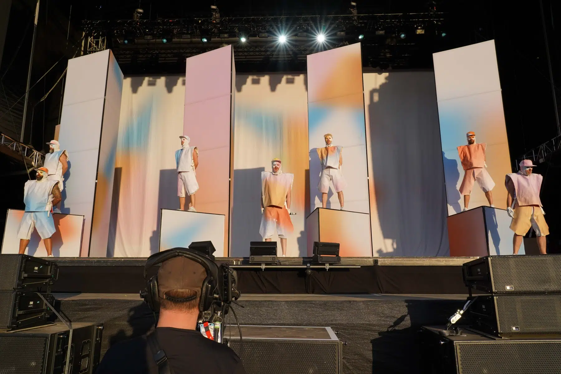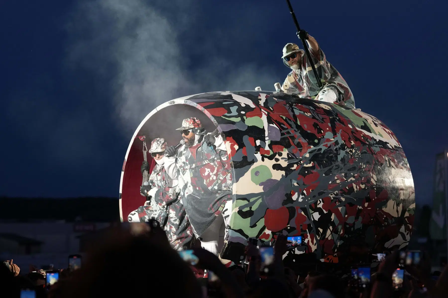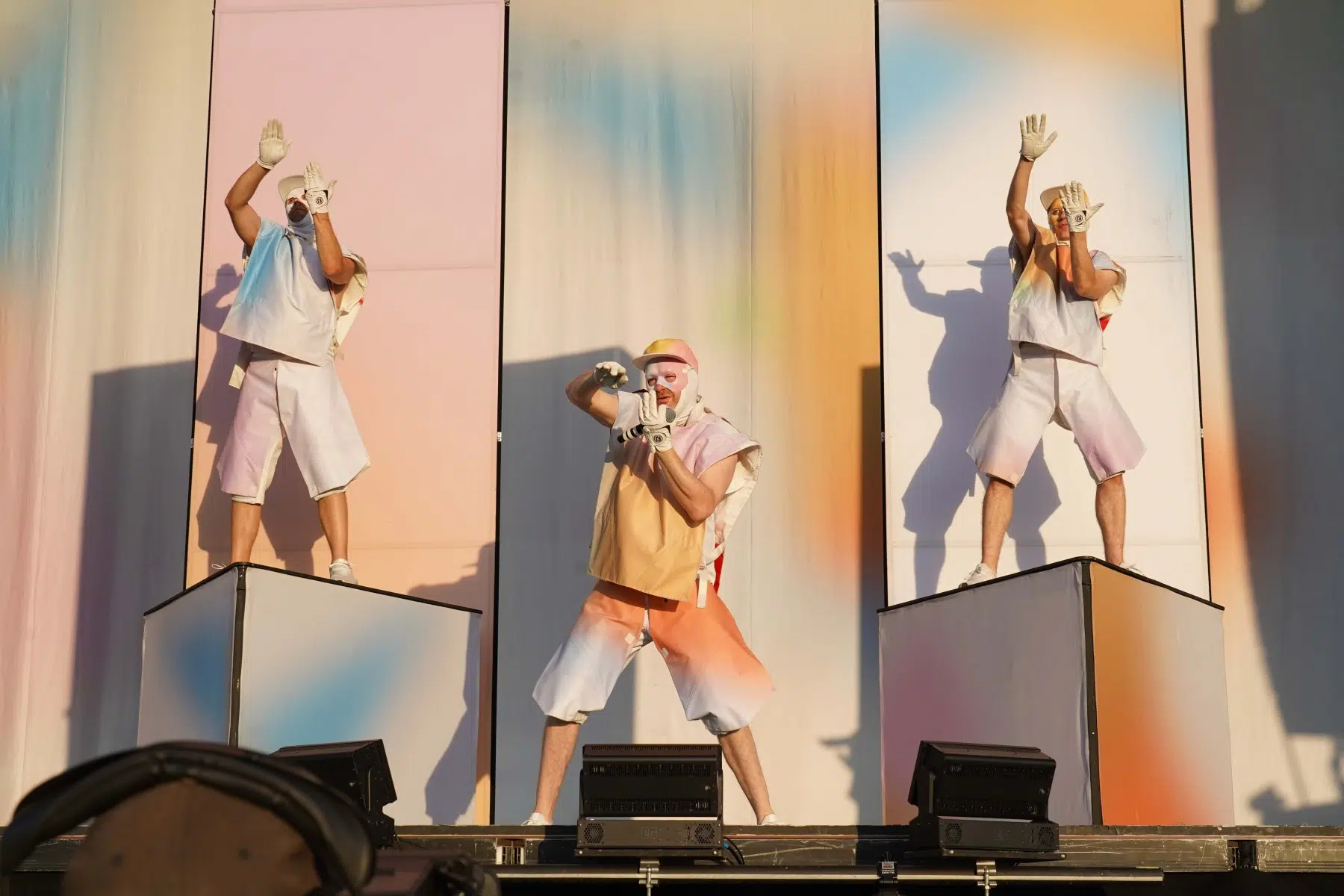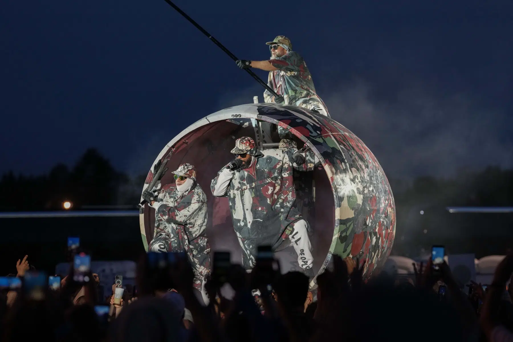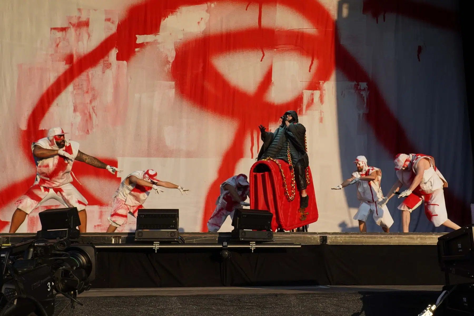 Schon bei den ersten Takten von „Denken Sie groß“ wurde klar: Das wird kein gewöhnlicher Konzertabend. Pyro, Licht, Konfetti, überdimensionale Kostüme und eine Bühnenshow, die eher an eine Mischung aus Theater, Protestmarsch und Clubnacht erinnert – DEICHKIND ziehen alle Register. Es ist ein kontrolliertes Chaos, das mit jeder Minute an Intensität gewinnt.