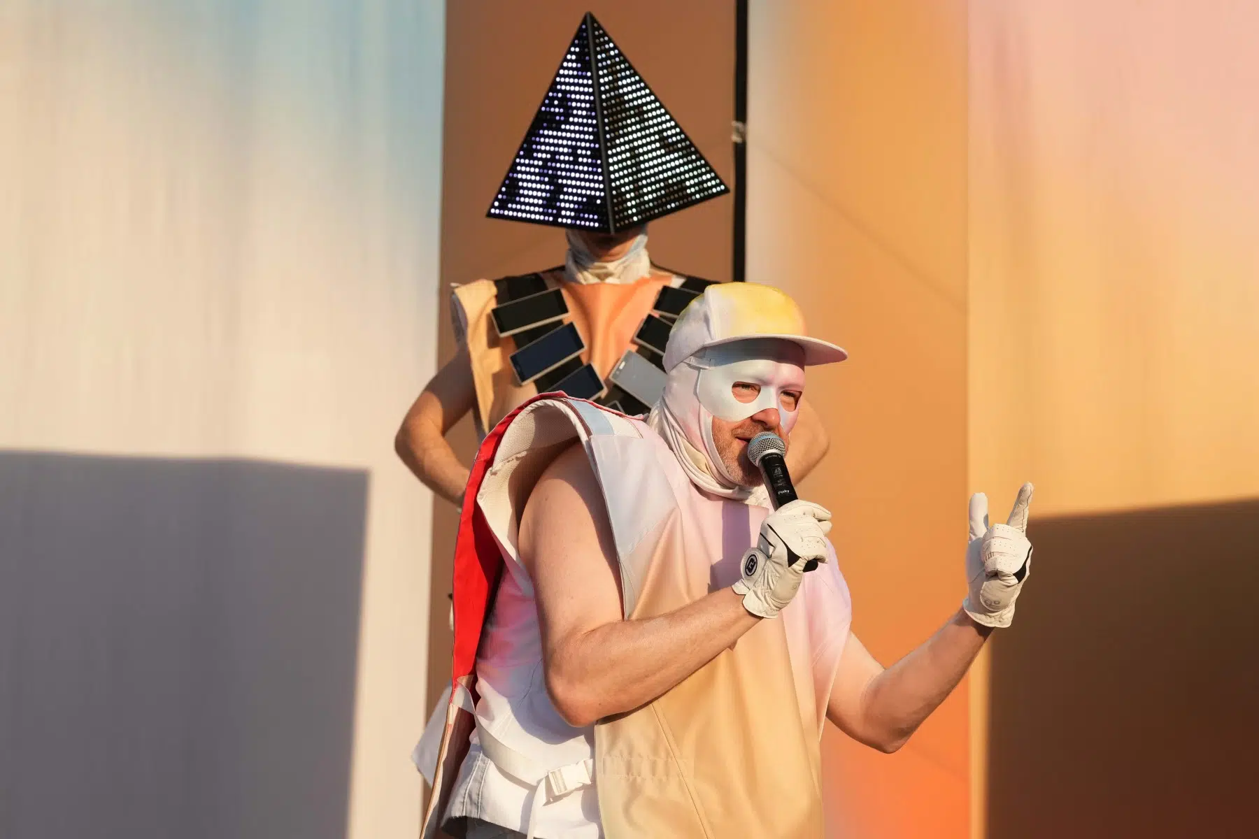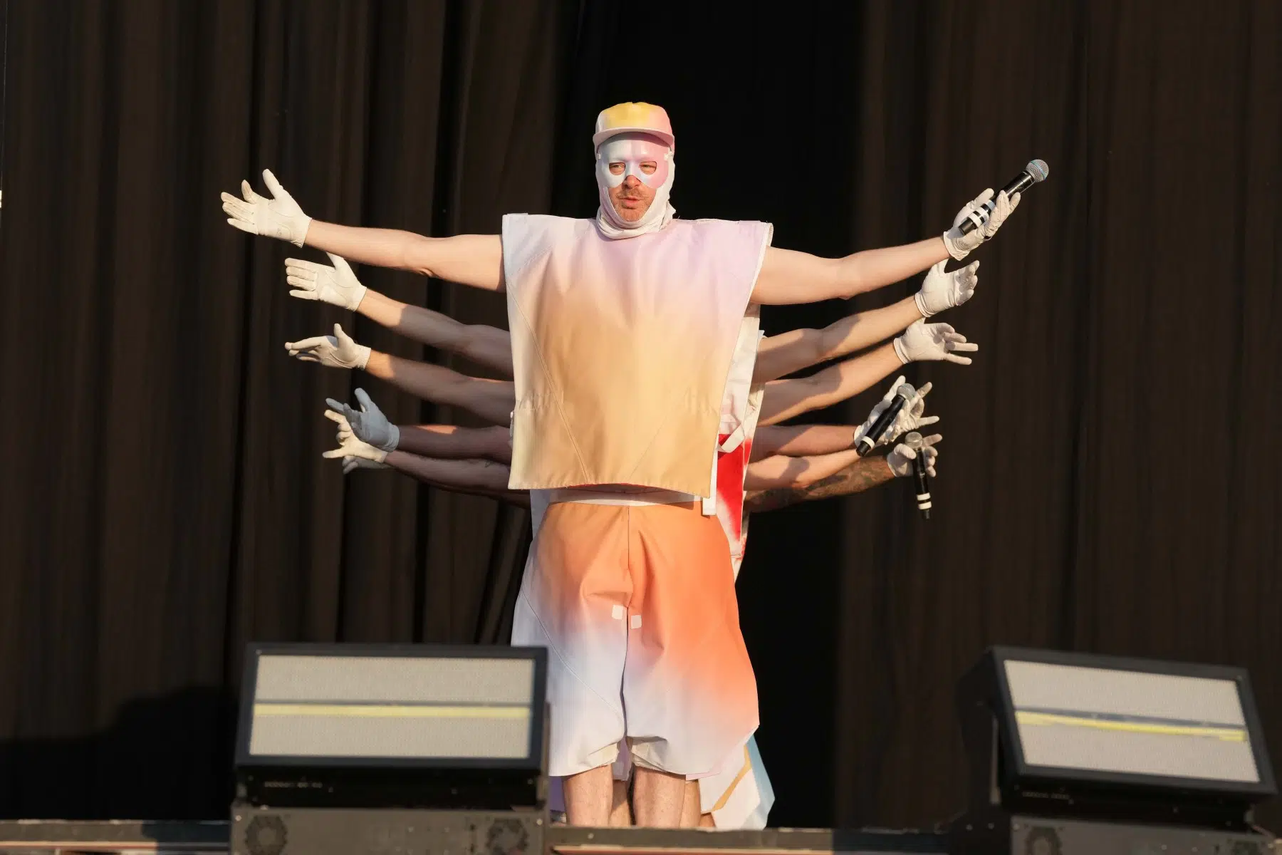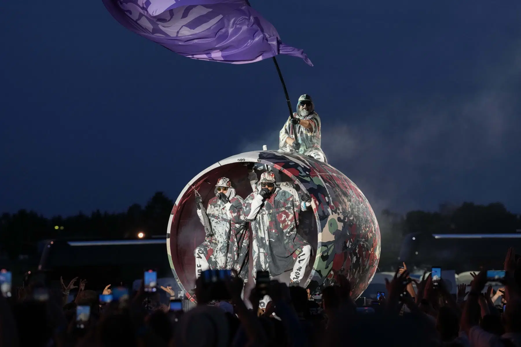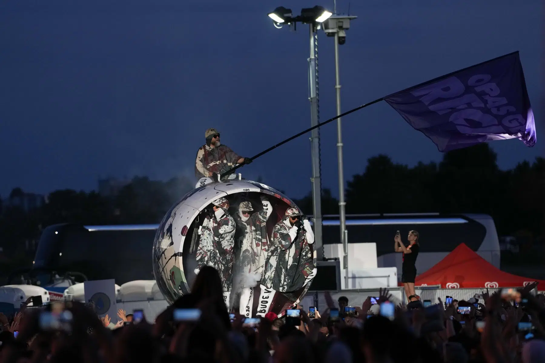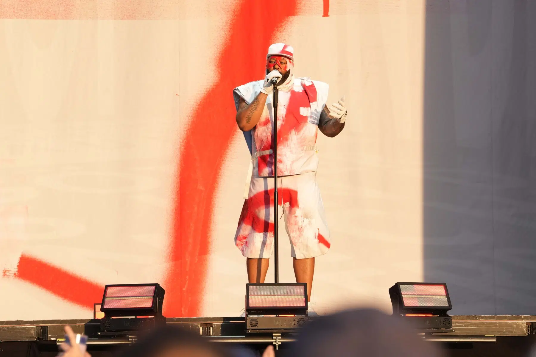 Schon bei den ersten Takten von „Denken Sie groß“ wurde klar: Das wird kein gewöhnlicher Konzertabend. Pyro, Licht, Konfetti, überdimensionale Kostüme und eine Bühnenshow, die eher an eine Mischung aus Theater, Protestmarsch und Clubnacht erinnert – DEICHKIND ziehen alle Register. Es ist ein kontrolliertes Chaos, das mit jeder Minute an Intensität gewinnt.