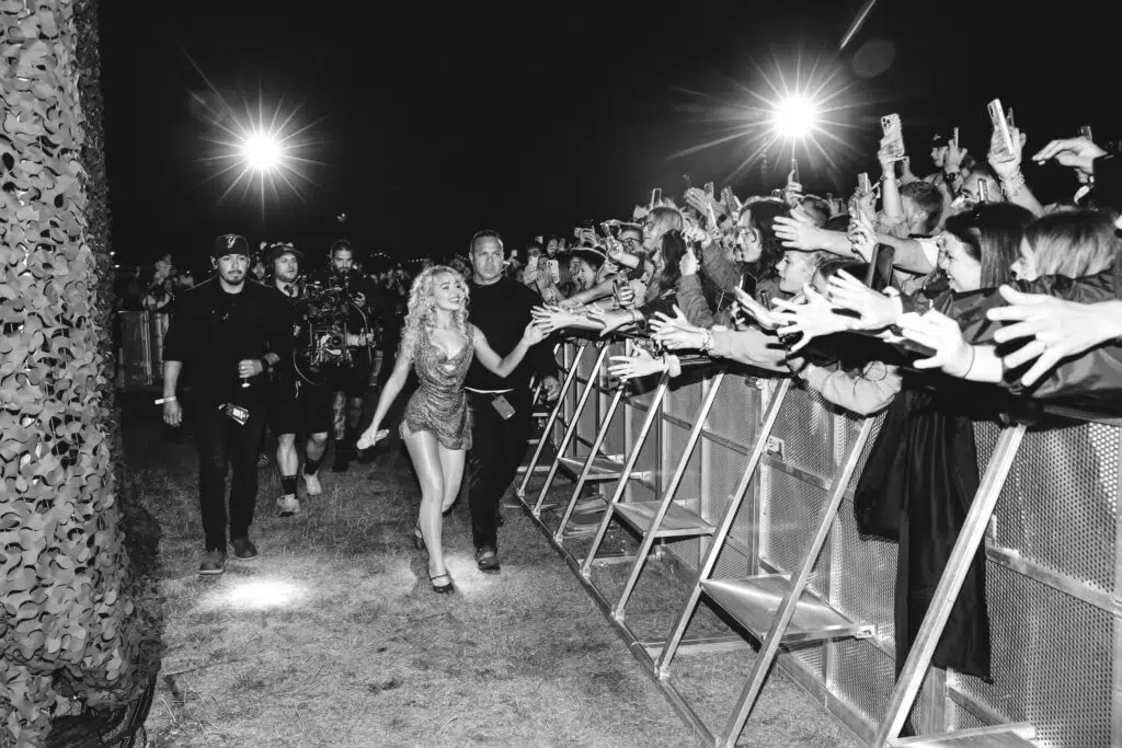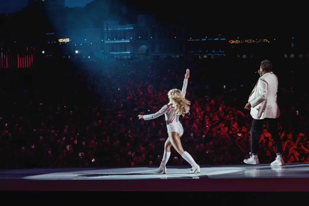 Then, following a sensual rendition of Because I Liked A Boy, a very rare and special collaboration came to life: “I thought it might be fun if I brought out some friends of mine from the UK,” she announced. “Could everybody please give it up and make so much noise for the legendary Duran Duran.” With that, Carpenter was joined on stage by Simon Le Bon and John Taylor to perform Hungry Like The Wolf. The trio shared the vocals on the 1982 classic, as audience members of all ages went wild.