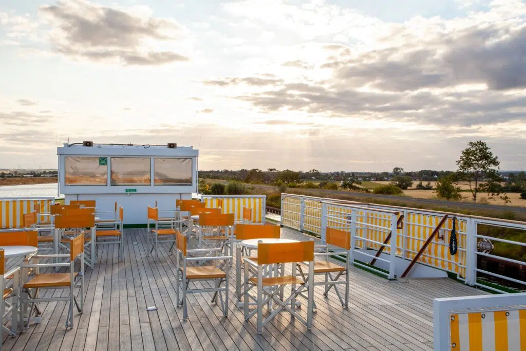 Nur einen Katzensprung von Berlin entfernt startet die Tour Zwischen Havelidylle und Elbezauber ab/bis Potsdam. Sie kombiniert naturnahe Entschleunigung mit selten befahrenen Wasserwegen durch Brandenburg und Sachsen-Anhalt – über Havel, Elbe und idyllische Nebenarme. Im Fokus stehen dabei ursprüngliche Naturräume, kulturelle Kleinode und eine Region, die durch die Bundesgartenschau 2015 in der Havelregion neue Aufmerksamkeit erhielt. Unter dem Motto „Von Dom zu Dom – das blaue Band der Havel“ zeigten die BUGA-Städte Brandenburg an der Havel, Premnitz, Rathenow, Havelberg und Stölln damals, wie faszinierend der Flussraum zwischen Havelland und Elbtal ist – eine Perspektive, die Gäste nun ganz bequem vom Sonnendeck der MS Thurgau Chopin aus erleben.