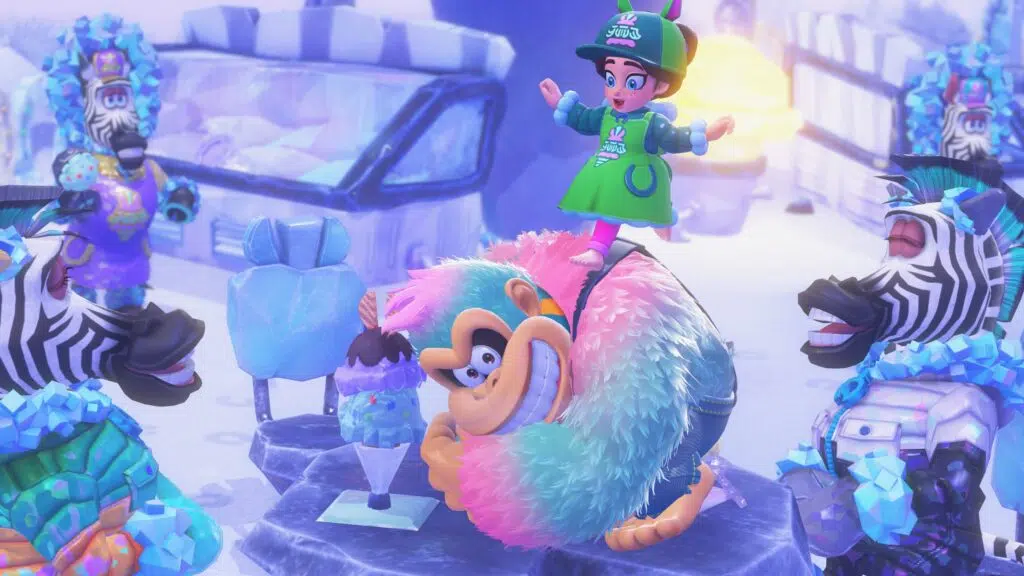 Doch es gibt auch vieles zu entdecken – goldene Bananen etwa. Die sogenannten Banandium-Juwelensind hinter Mauern, unter der Erde und manchmal sogar direkt im Freien vergraben. Durch das Sammeln dieser Schätze erhalten die Spieler:innen Fertigkeitspunkte, mit denen sie DKs Gesundheit sowie die Kraft seiner Schläge erhöhen und ihm sogar völlig neue Fähigkeiten erlernen lassen können. Es warten noch viele weitere Sammel-Items darauf, ausgegraben zu werden, darunter Fossilien, die in Style-Shops gegen verschiedene Outfits für Donkey Kong und Pauline eingetauscht werden können. Auch neue Fellfarben für DK lassen sich in diesen Shops ergattern.