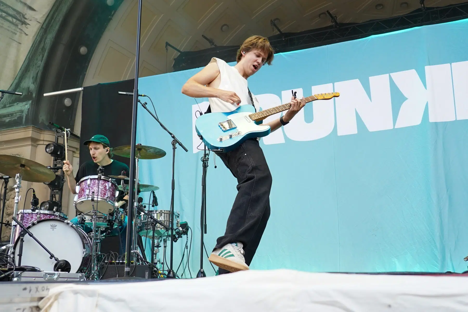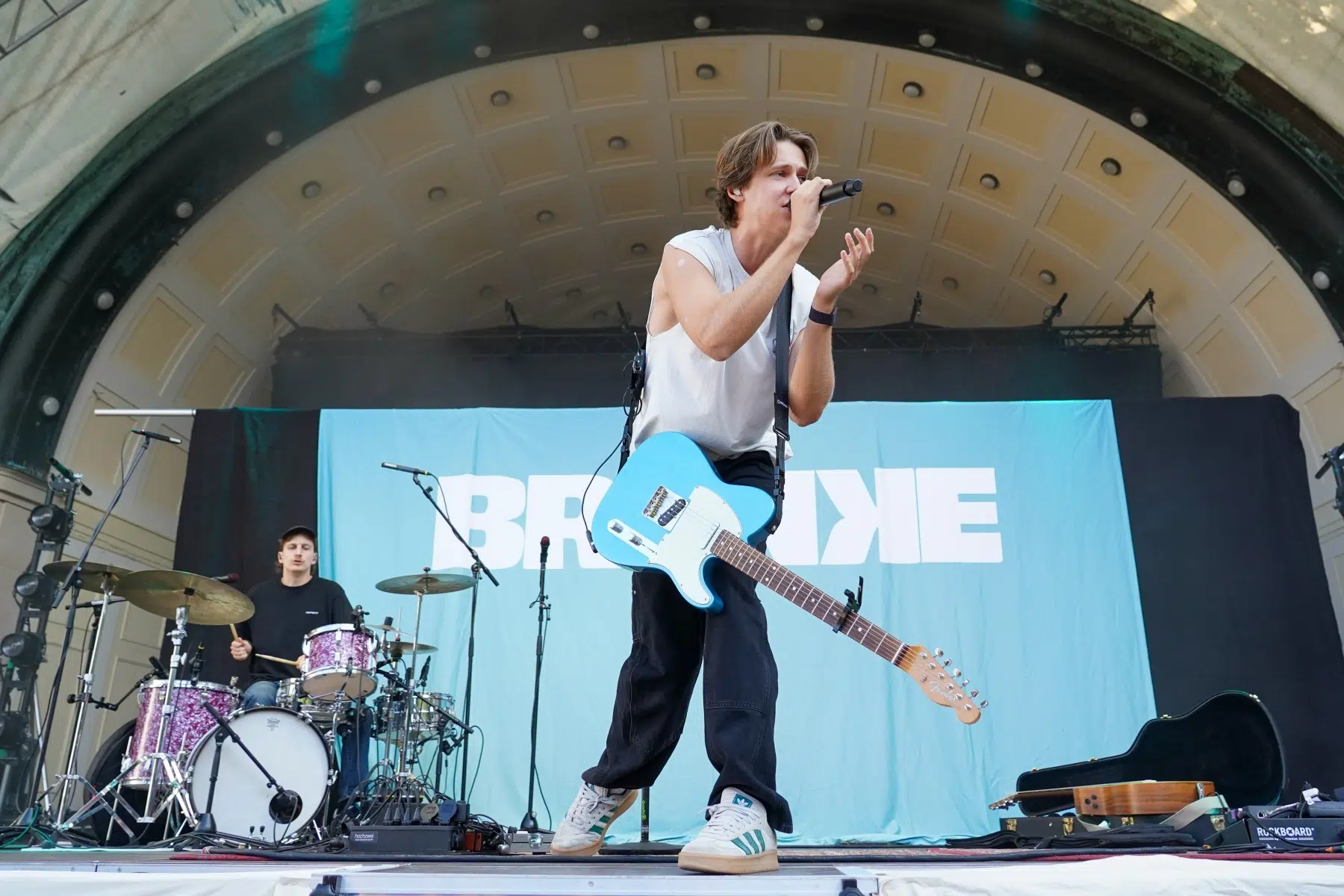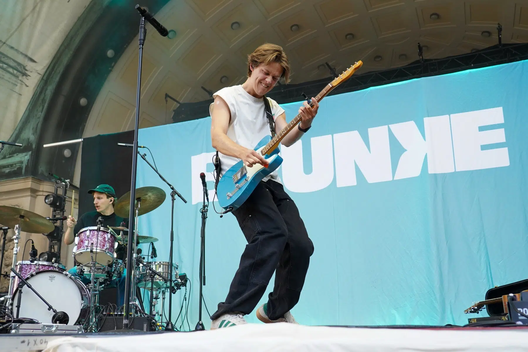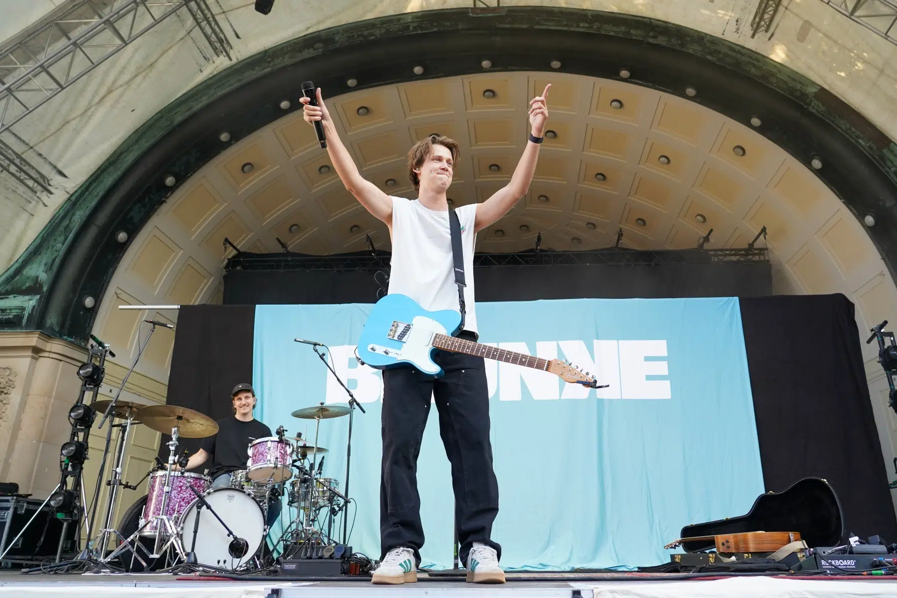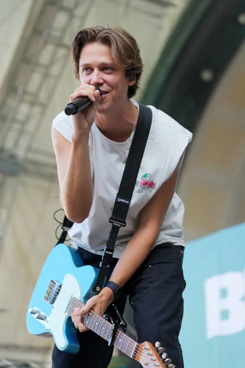 Schon vor dem ersten Akkord der Headliner sorgte der Support-Act BRUNKE für sommerliche Vibes und gute Laune. Der charismatische Sänger, Produzent und Labelbetreiber stammt ursprünglich von der autofreien Nordseeinsel Juist und bringt musikalisch genau diese Gegensätze auf die Bühne: Zwischen norddeutscher Gelassenheit und Berliner Puls spiegelt sich in seinen Songs wie „Sonnenbrand“ oder „Zu schön“ ein moderner Sound wider, der ehrliche Geschichten erzählt und dennoch tanzbar bleibt. Das Publikum nahm BRUNKE mit offenen Armen auf – ein stimmungsvoller Auftakt für einen besonderen Konzertabend.