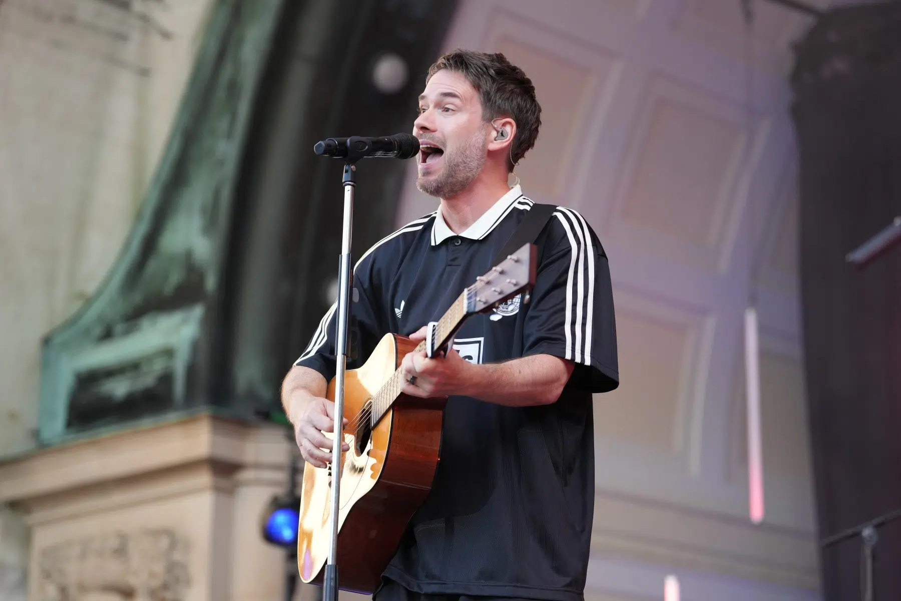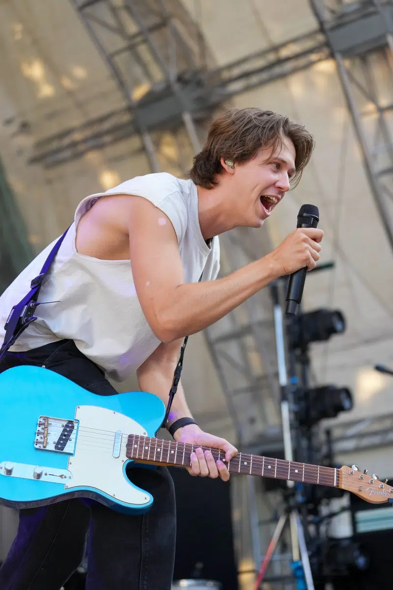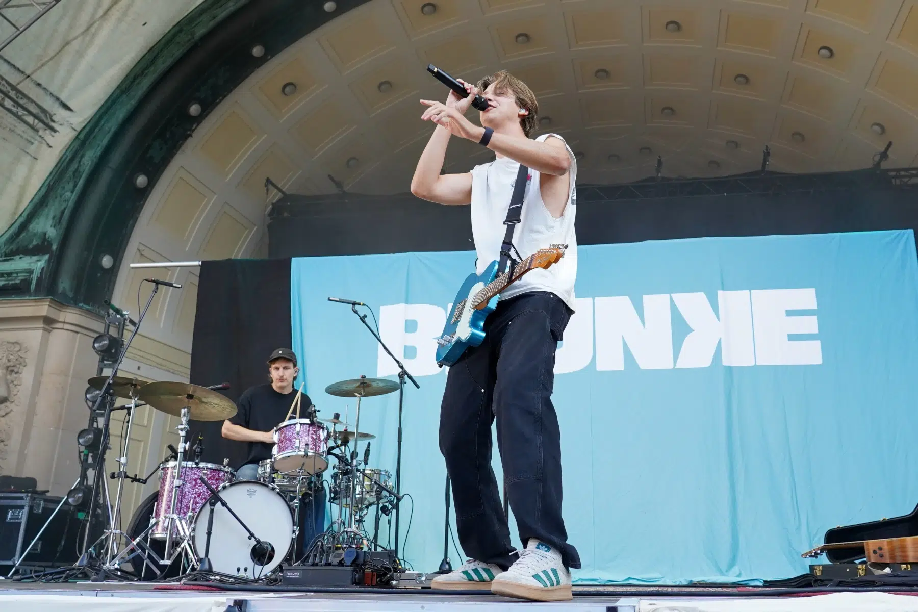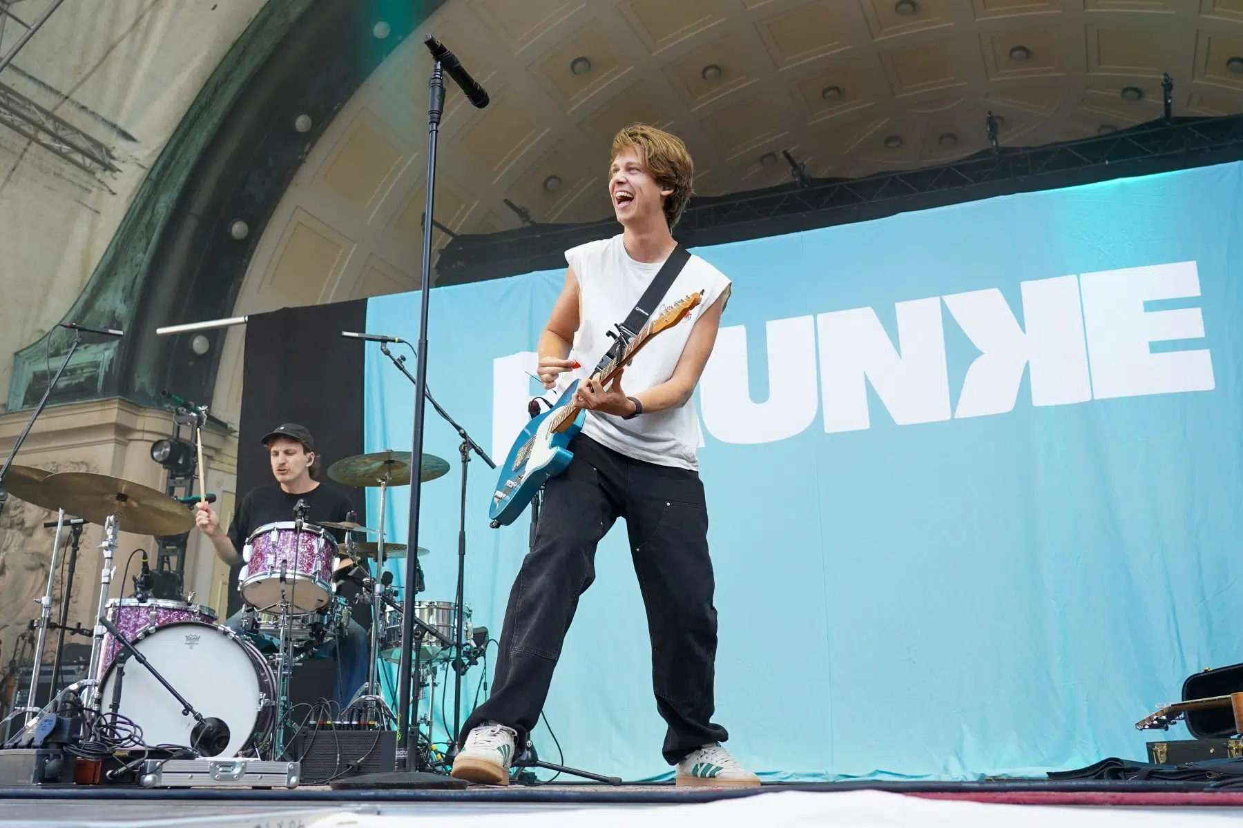 Schon vor dem ersten Akkord der Headliner sorgte der Support-Act BRUNKE für sommerliche Vibes und gute Laune. Der charismatische Sänger, Produzent und Labelbetreiber stammt ursprünglich von der autofreien Nordseeinsel Juist und bringt musikalisch genau diese Gegensätze auf die Bühne: Zwischen norddeutscher Gelassenheit und Berliner Puls spiegelt sich in seinen Songs wie „Sonnenbrand“ oder „Zu schön“ ein moderner Sound wider, der ehrliche Geschichten erzählt und dennoch tanzbar bleibt. Das Publikum nahm BRUNKE mit offenen Armen auf – ein stimmungsvoller Auftakt für einen besonderen Konzertabend.