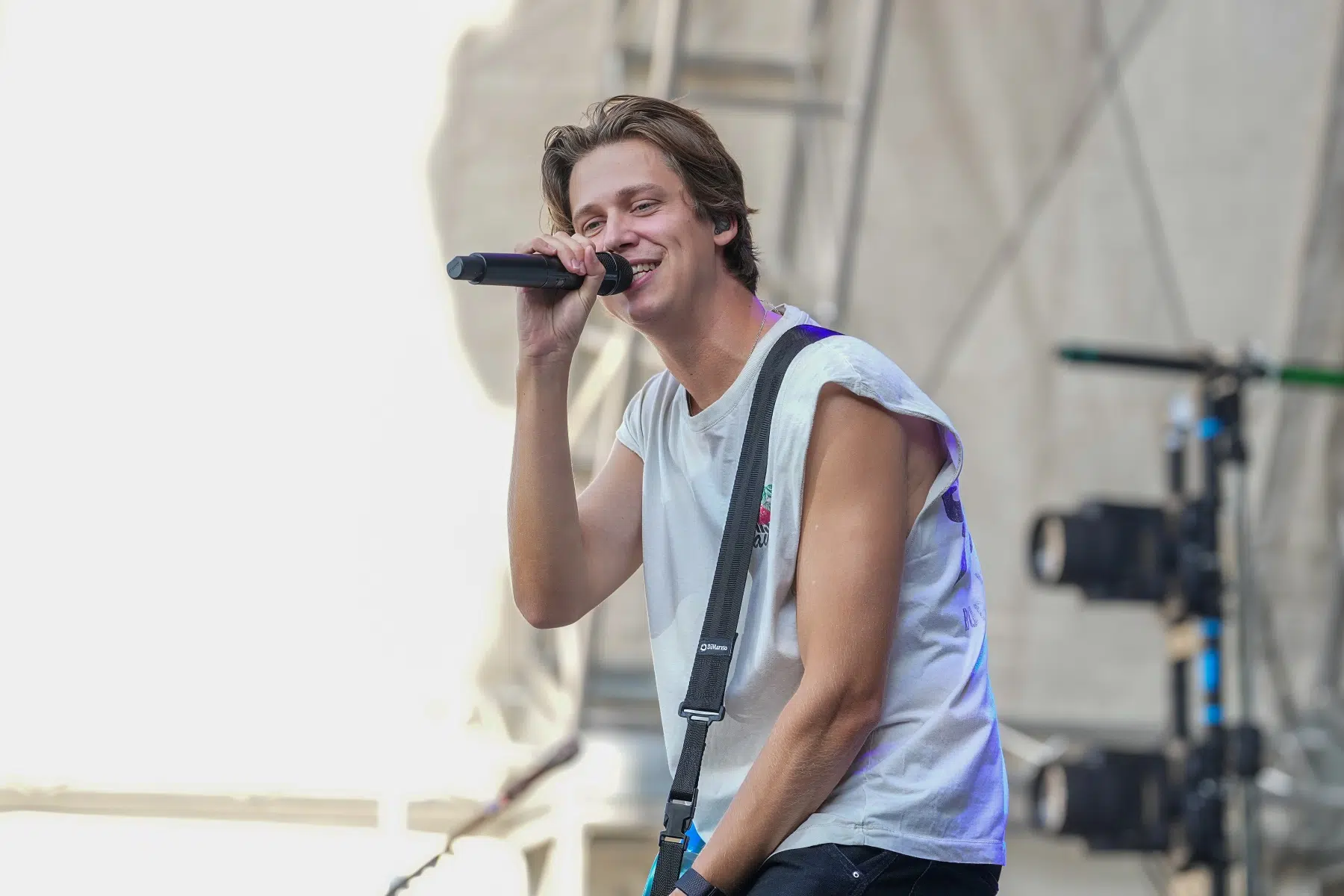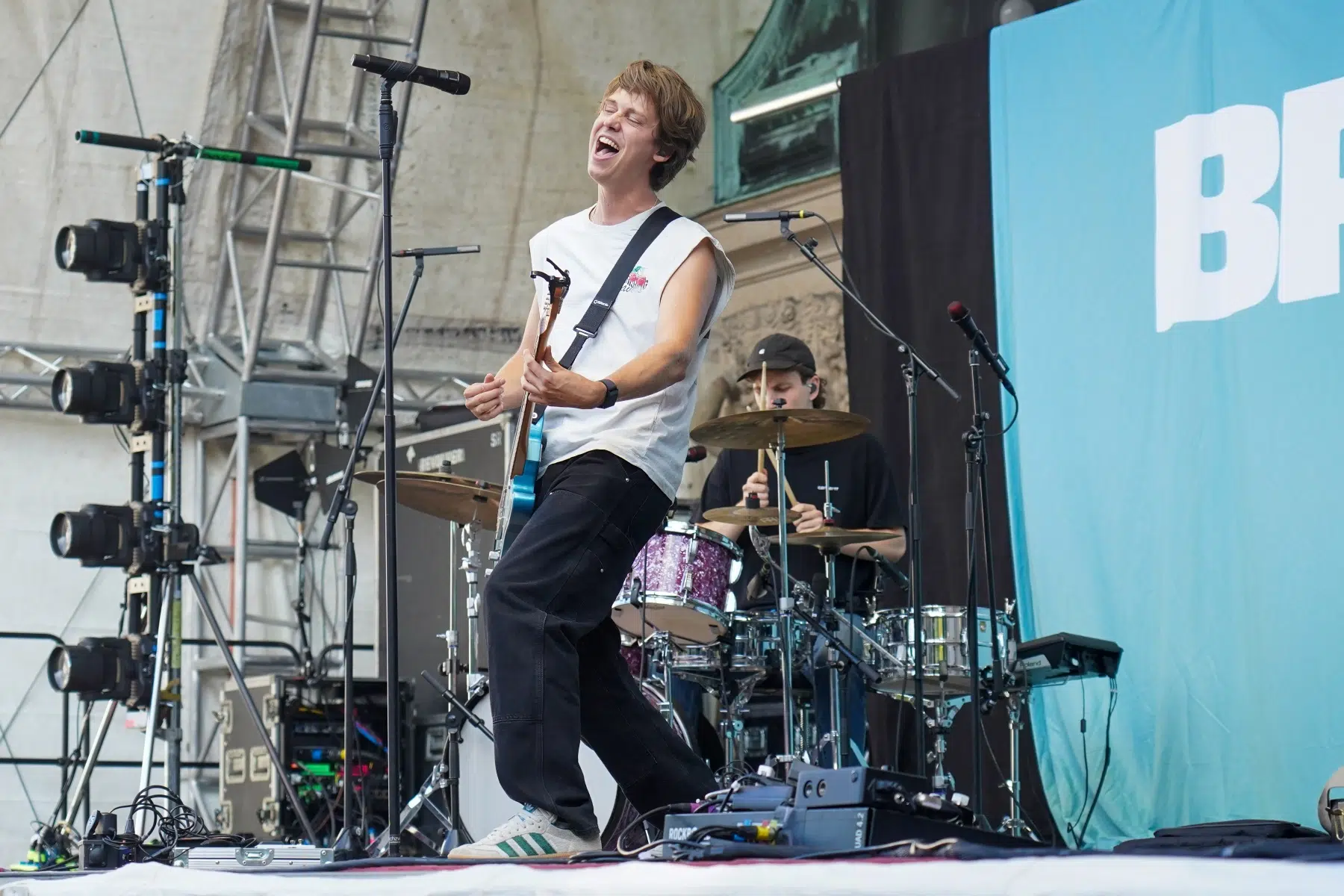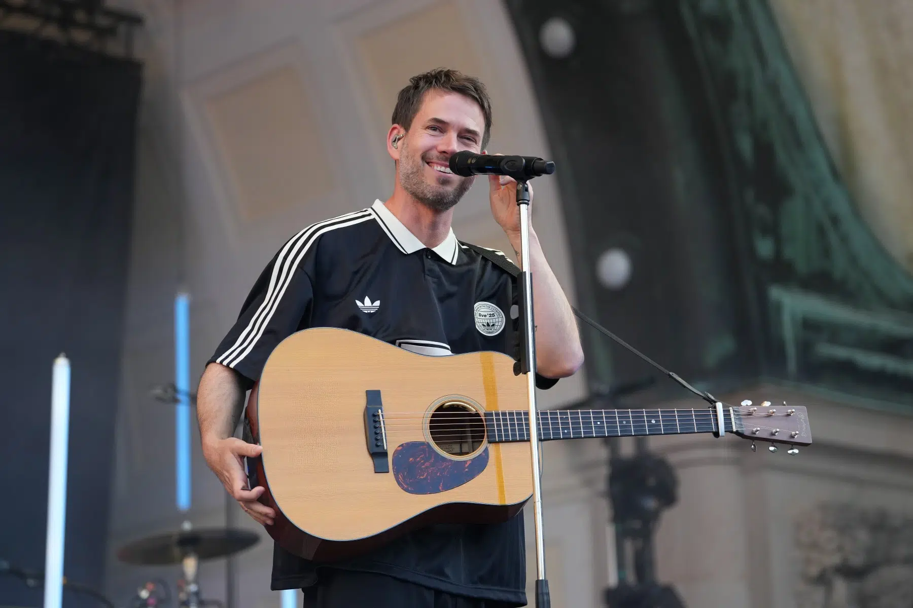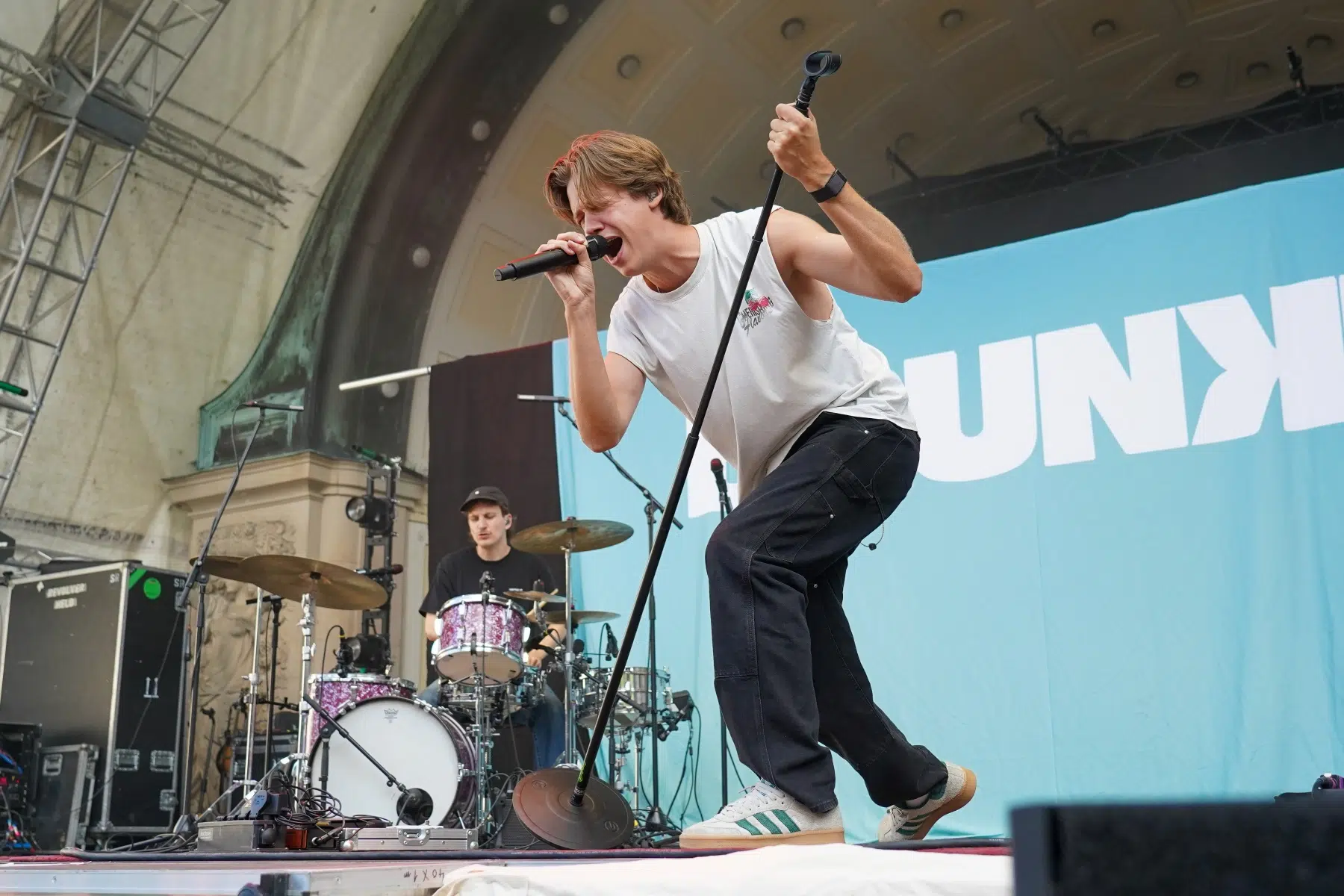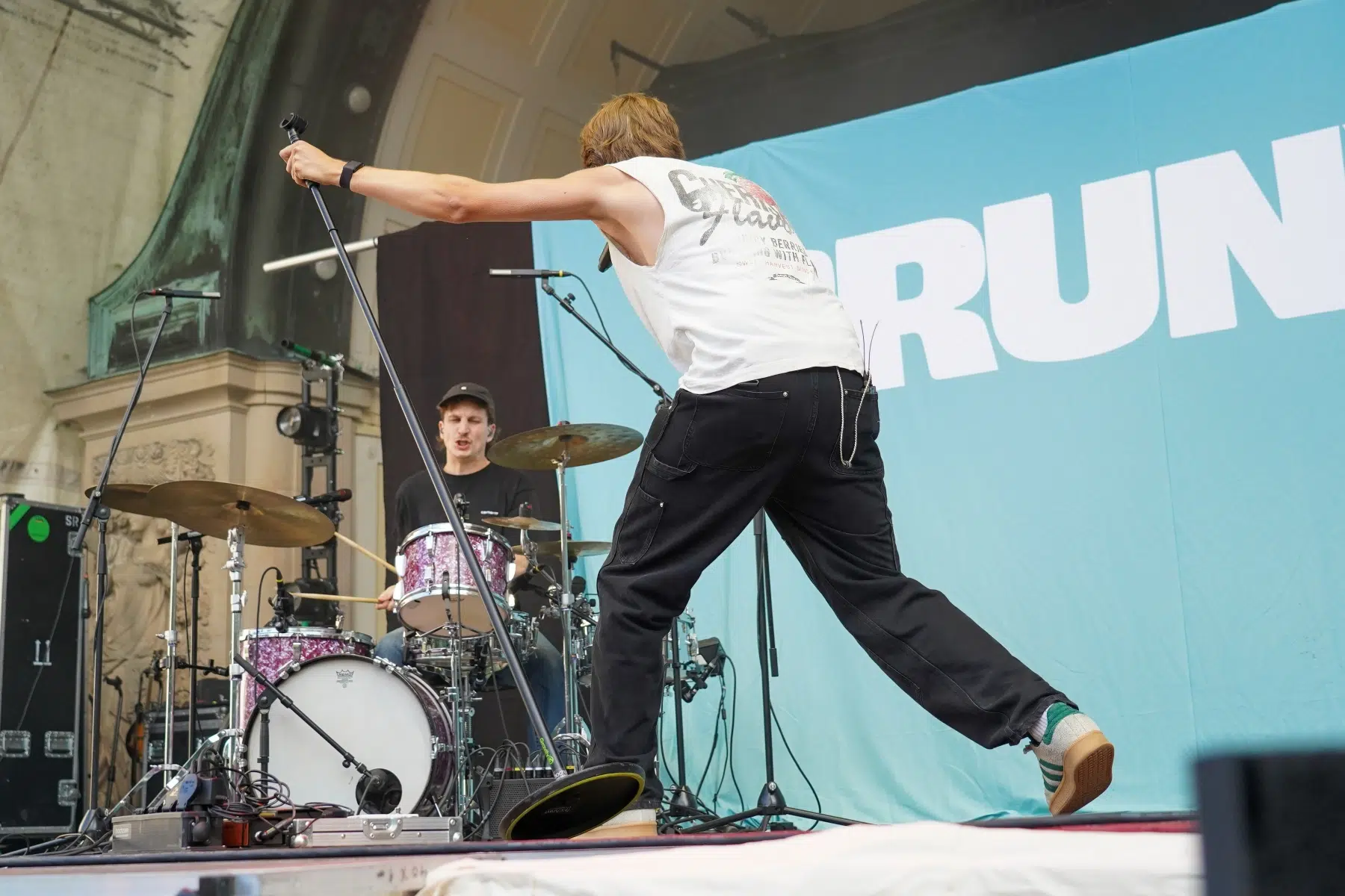 Schon vor dem ersten Akkord der Headliner sorgte der Support-Act BRUNKE für sommerliche Vibes und gute Laune. Der charismatische Sänger, Produzent und Labelbetreiber stammt ursprünglich von der autofreien Nordseeinsel Juist und bringt musikalisch genau diese Gegensätze auf die Bühne: Zwischen norddeutscher Gelassenheit und Berliner Puls spiegelt sich in seinen Songs wie „Sonnenbrand“ oder „Zu schön“ ein moderner Sound wider, der ehrliche Geschichten erzählt und dennoch tanzbar bleibt. Das Publikum nahm BRUNKE mit offenen Armen auf – ein stimmungsvoller Auftakt für einen besonderen Konzertabend.
