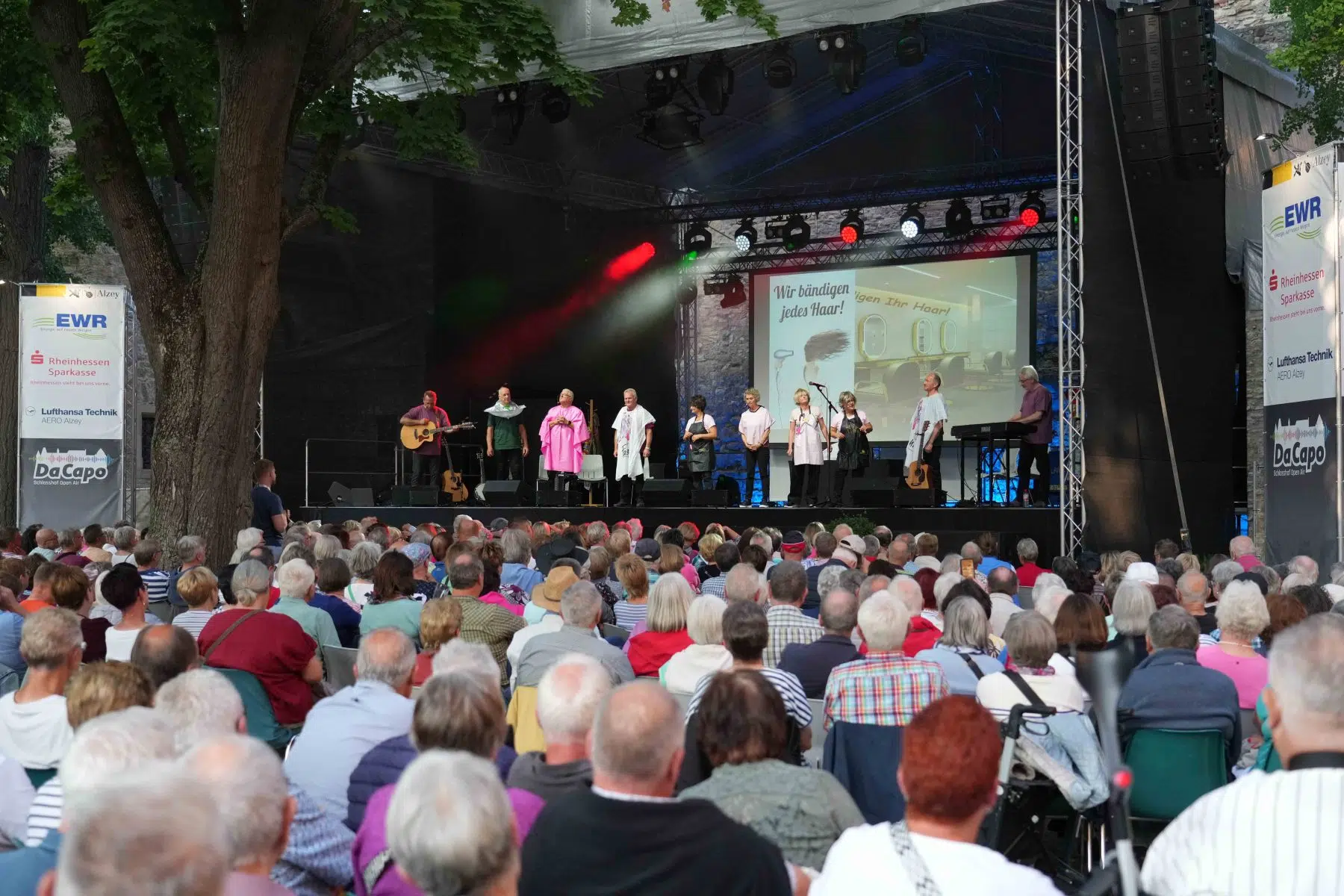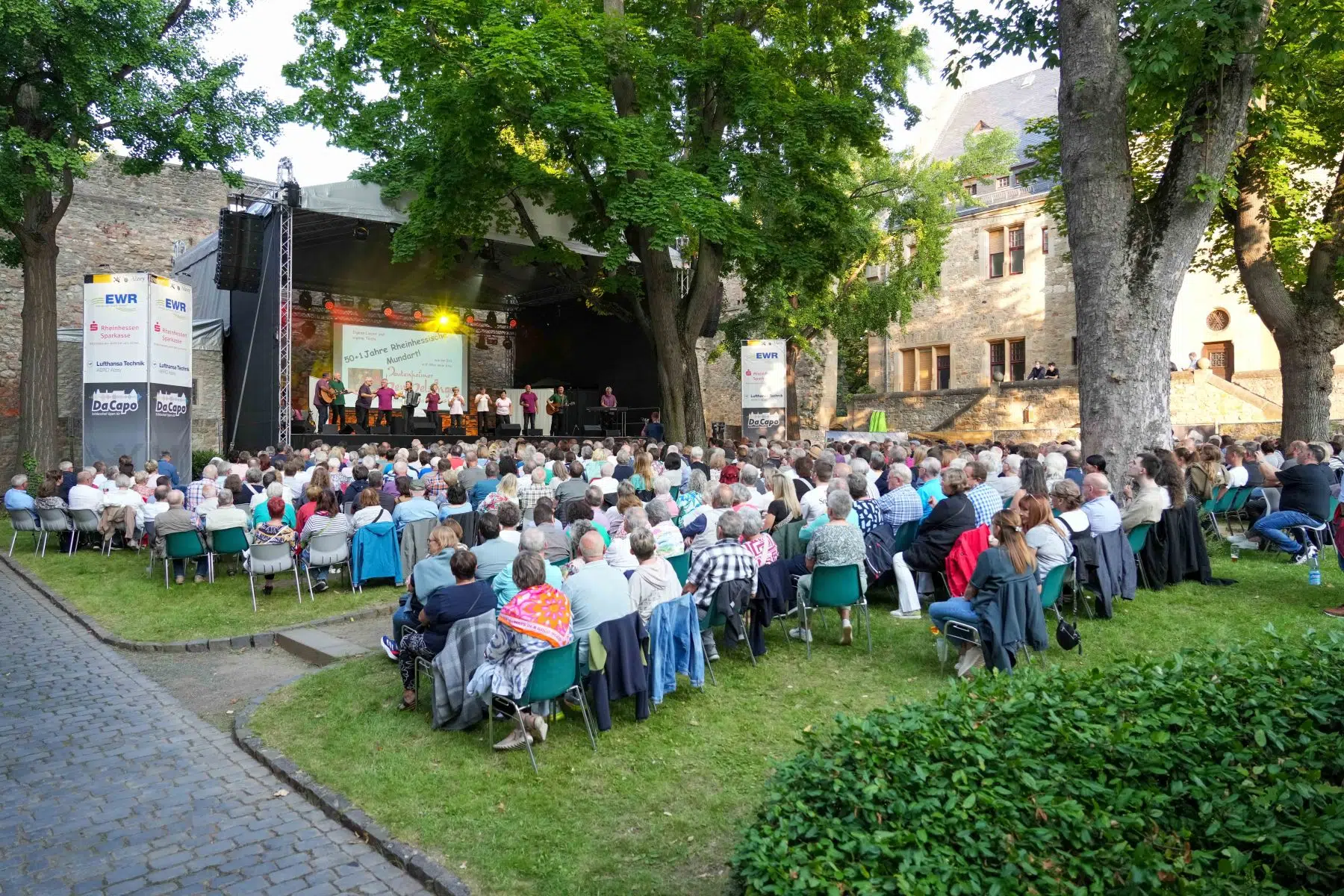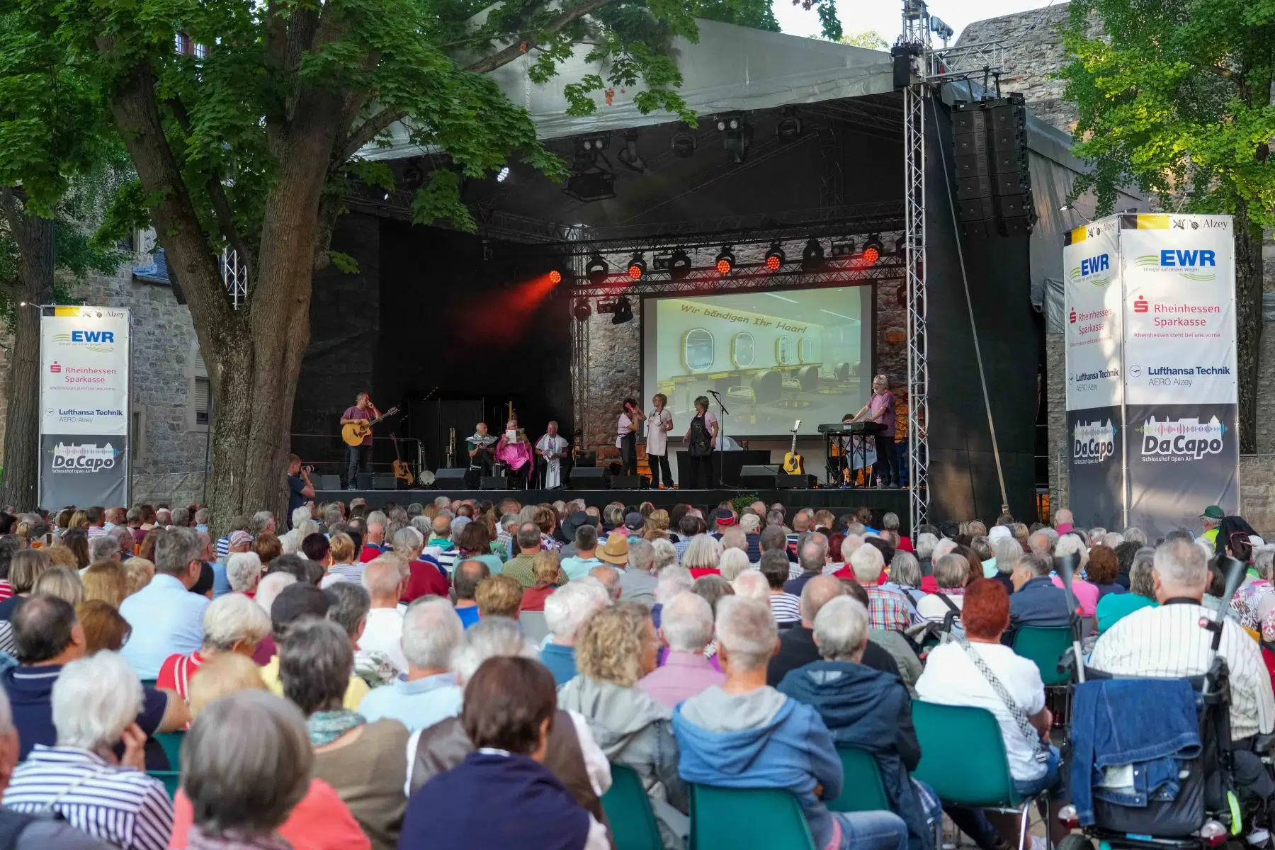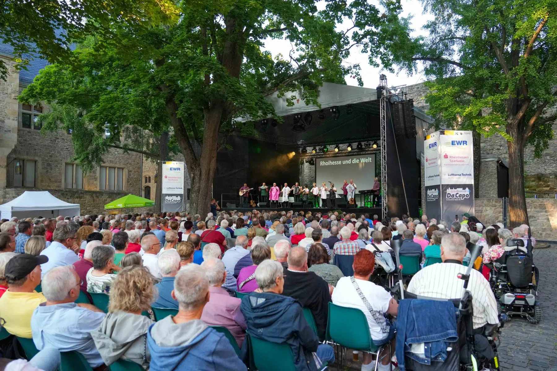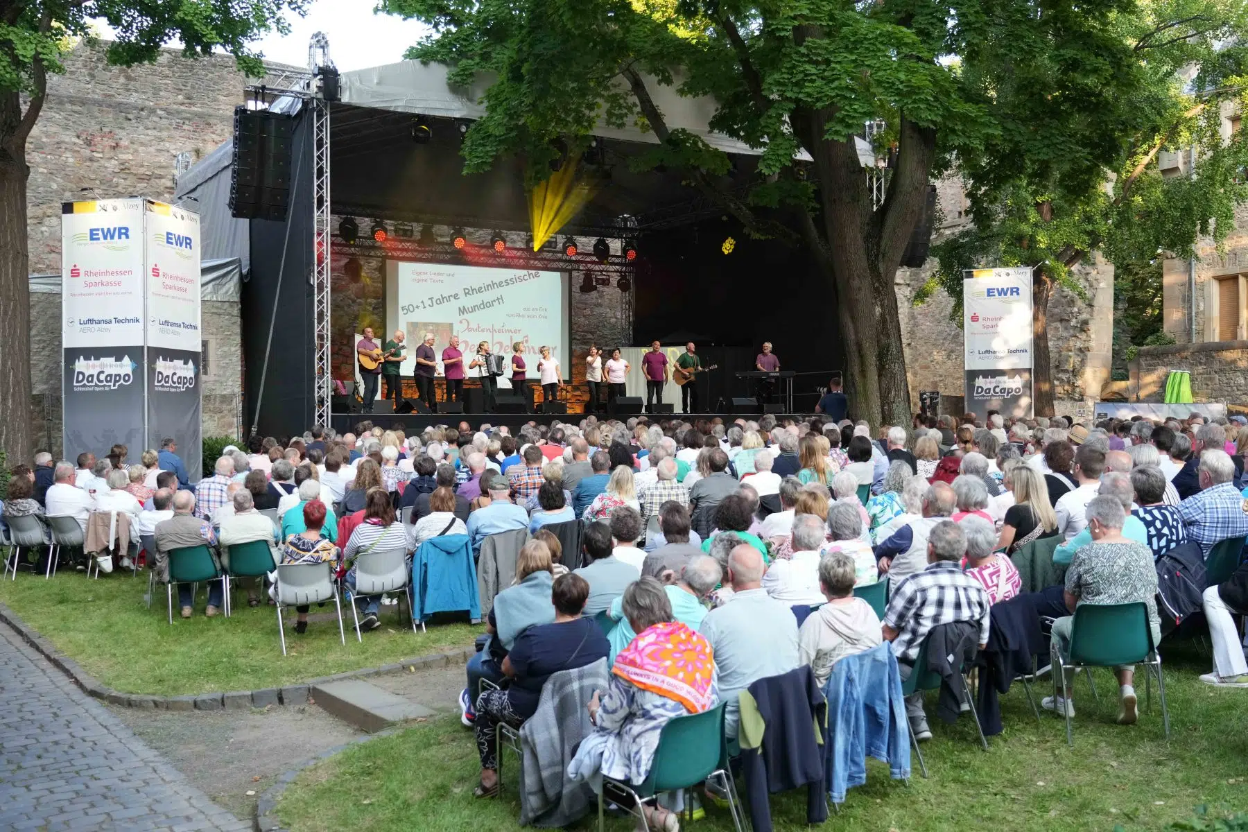 Alzey, 6. August 2025 – Bereits bevor das offizielle DA CAPO Open Air 2025 im Schlosshof Alzey seine Pforten öffnet, ist die Stimmung auf dem Höhepunkt: Das Pre-Opening mit den Dautenheimer Bembelsänger war restlos ausverkauft – und das völlig zurecht. Seit Jahrzehnten sind sie fester Bestandteil der rheinhessischen Kulturszene und beim DA CAPO nicht mehr wegzudenken. Ihr Heimspiel im historischen Ambiente des Alzeyer Schlosses geriet erneut zum umjubelten Abend für Herz, Humor und Heimatgefühl.