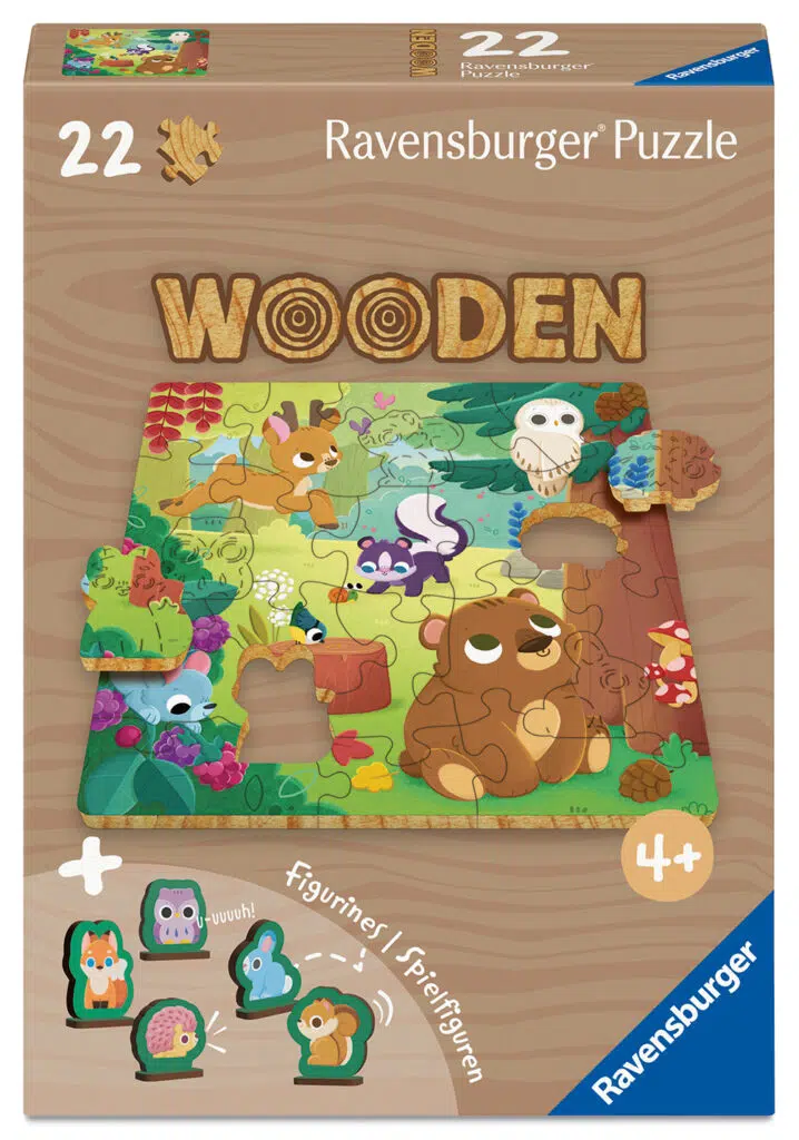 Holzpuzzles erleben ein Comeback: 1760 entstand das erste Puzzle. Der britische Kupferstecher John Spilsbury sägte mit einer Laubsäge aus einem Mahagoni-Brettchen die Formen der englischen Grafschaften, damit die Kinder sie im Erdkundeunterricht wieder zu ihrem Heimatland zusammensetzen konnten. Im Jahr 2025 erobert das langlebige und robuste Material erneut die Kinderzimmer. Im Ravensburger Verlag erscheinen im September neue Holzpuzzles mit kleinen zum Motiv passenden figürlich gestalteten Puzzleteilen, den sogenannten Whimsies. Zusätzlich zum Puzzle sind liebevoll illustrierten Spielfiguren, die ebenfalls aus Holz sind enthalten. Damit bietet das Puzzle mehr als nur Puzzlespaß. Die Serie WOODEN Puzzle Kids startet mit acht verschiedenen Puzzle-Motiven die zwischen 22 und 44 Teile haben. Ein besonderes Geschenk für Kinder ab 4 Jahren.