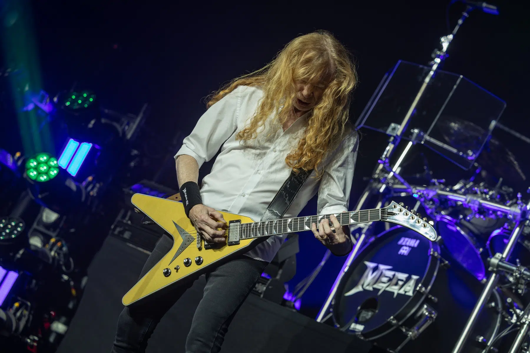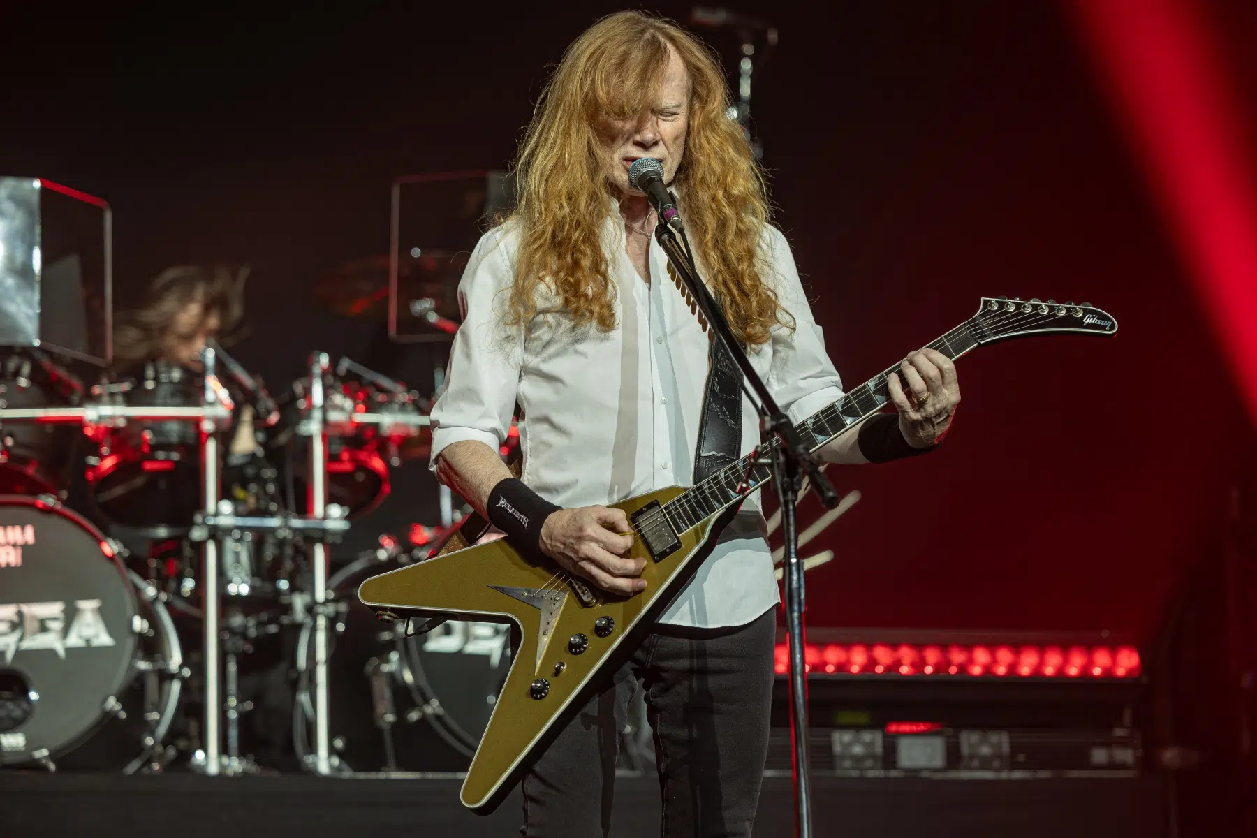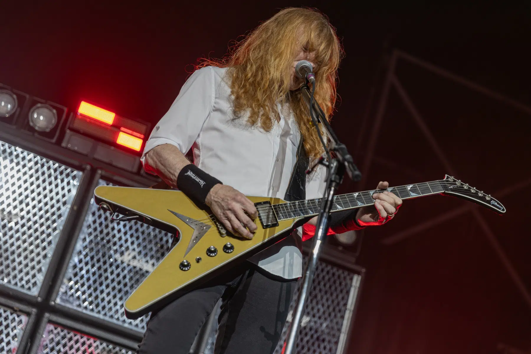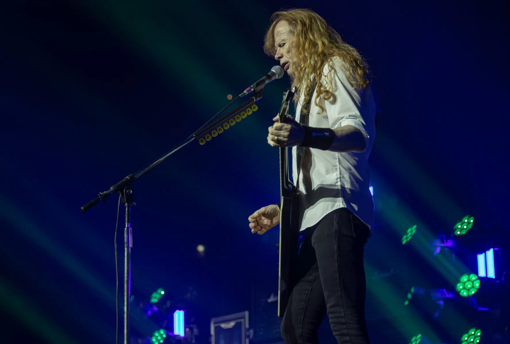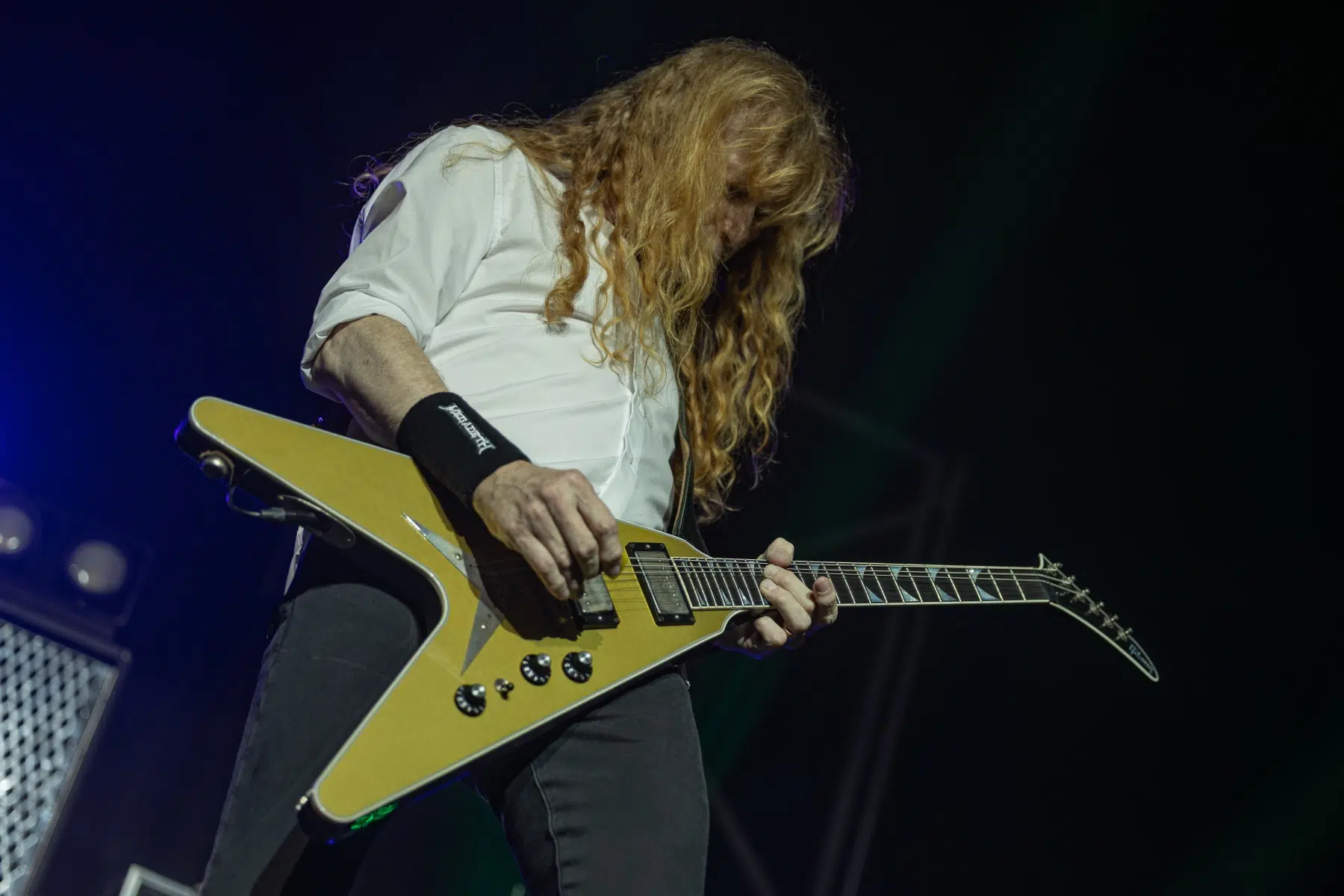 Kurz nach 19:30 betraten Megadeth die Bühne, und sofort wurde klar: Diese Band braucht keine große Show, um zu beeindrucken. Dave Mustaine, charismatisch wie eh und je, eröffnete mit „Wake Up Dead“, das sofort eine Welle der Nostalgie durch die Halle jagte. Ohne viel Schnickschnack, aber mit ungebrochener Energie, knüpfte die Band an ihre legendäre Vergangenheit an.