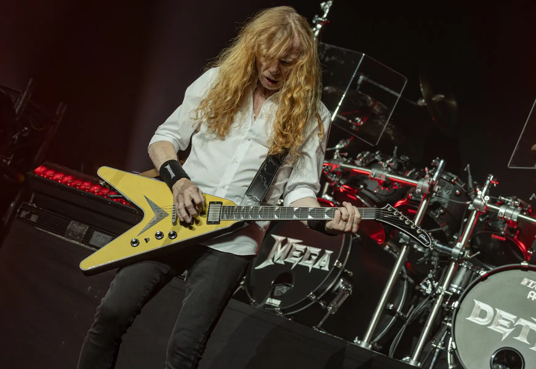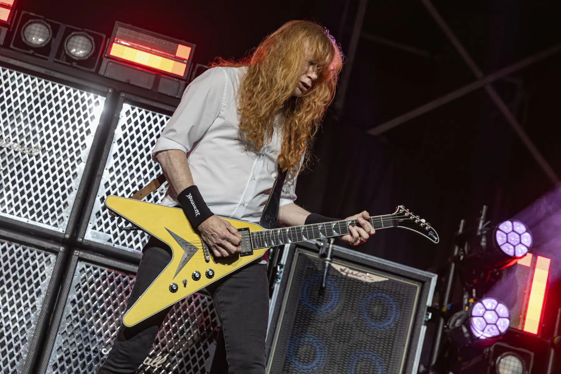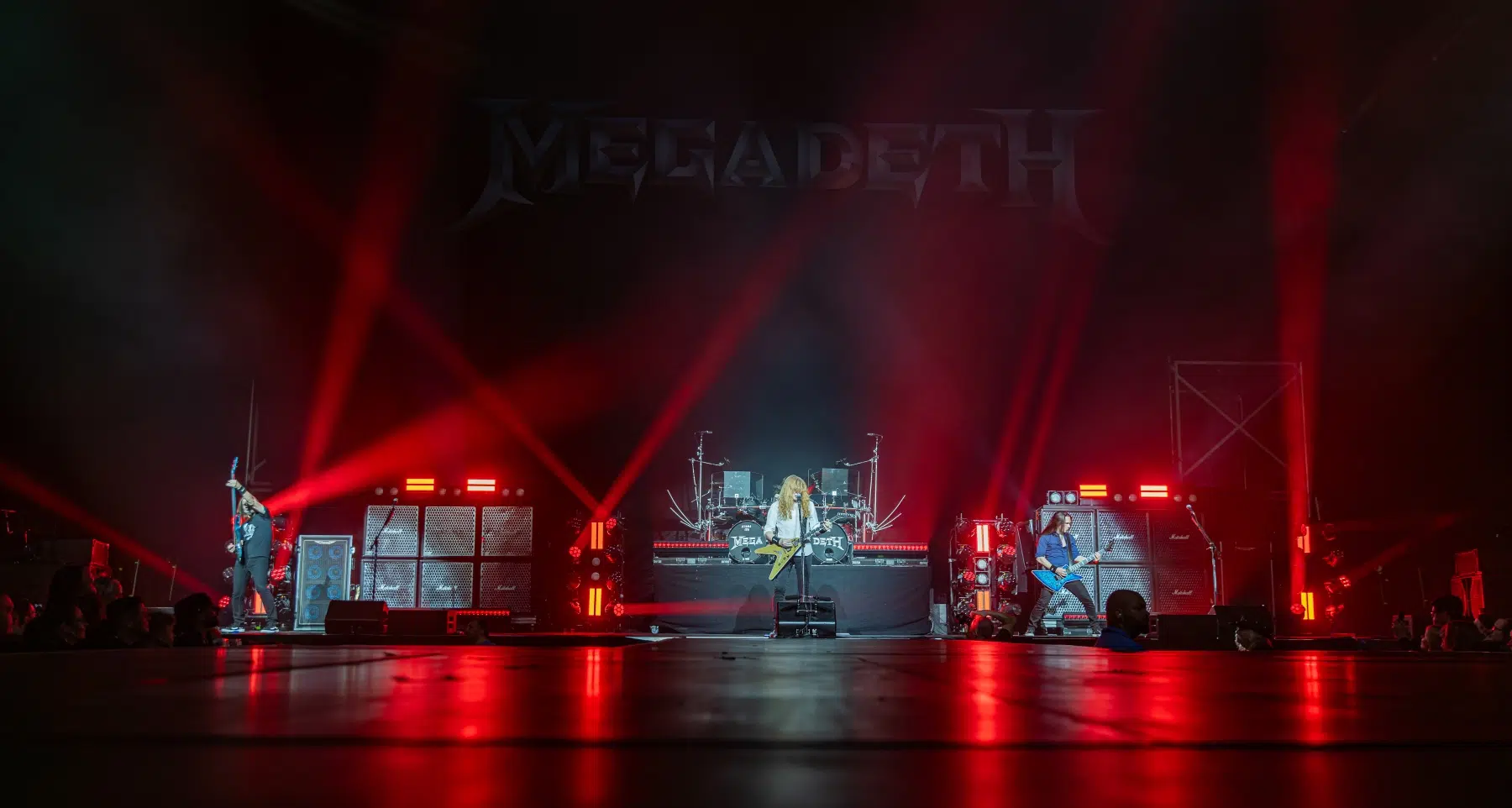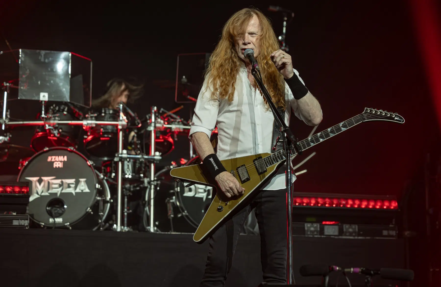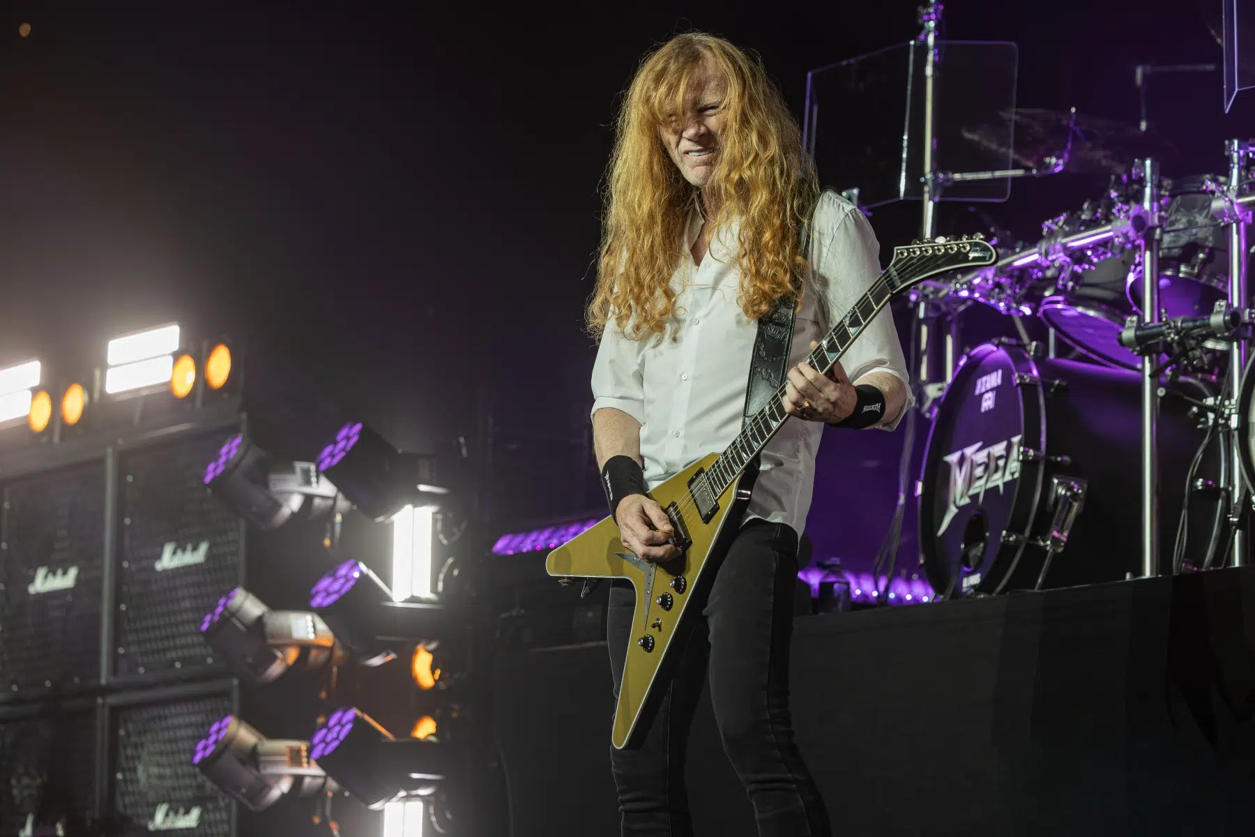 Kurz nach 19:30 betraten Megadeth die Bühne, und sofort wurde klar: Diese Band braucht keine große Show, um zu beeindrucken. Dave Mustaine, charismatisch wie eh und je, eröffnete mit „Wake Up Dead“, das sofort eine Welle der Nostalgie durch die Halle jagte. Ohne viel Schnickschnack, aber mit ungebrochener Energie, knüpfte die Band an ihre legendäre Vergangenheit an.