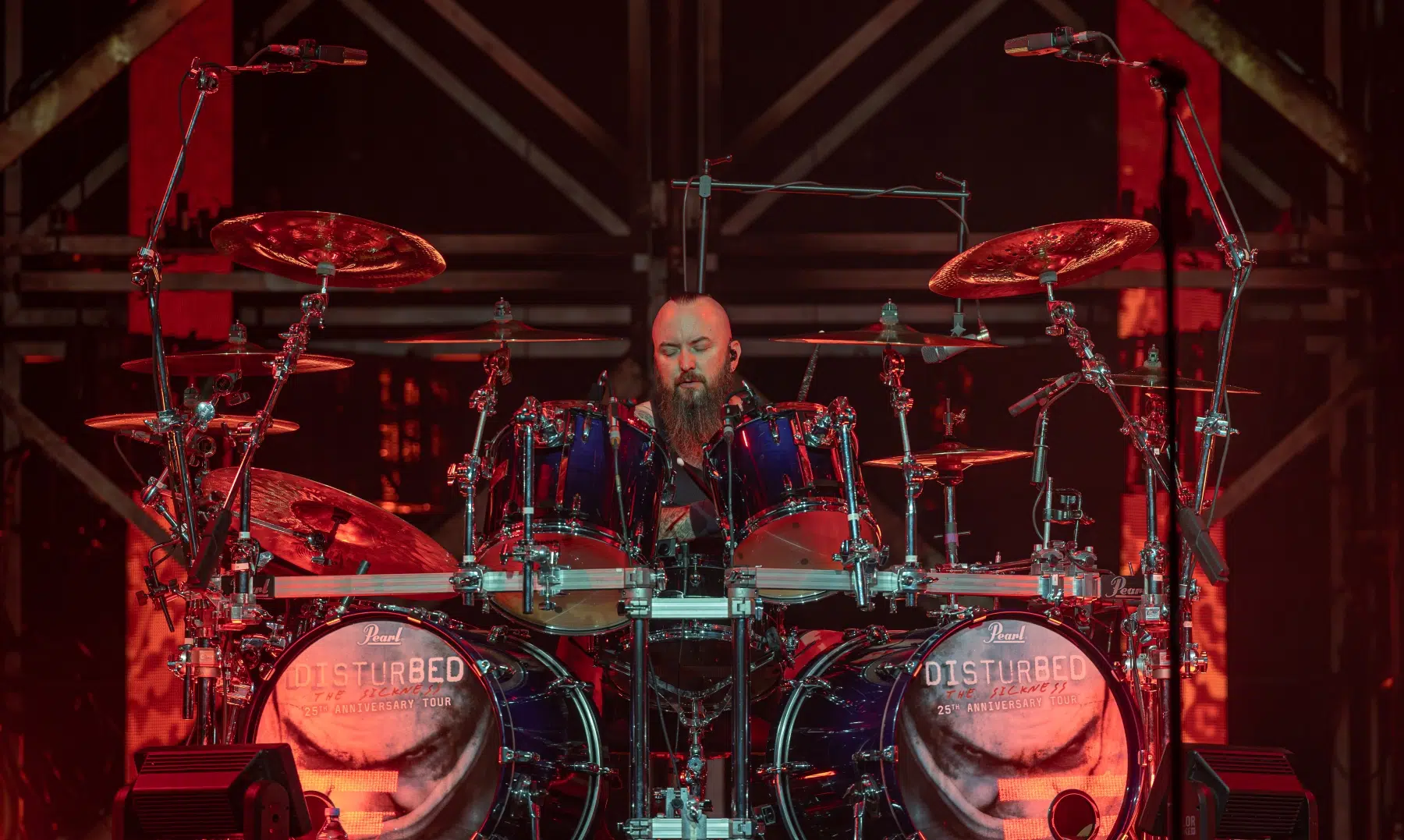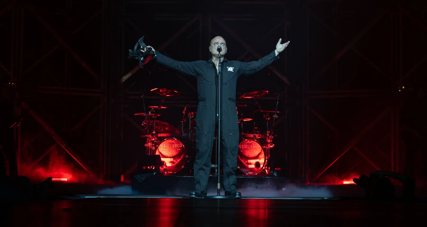 Die erste Hälfte des Sets erinnerte stark an das Debütalbum The Sickness – Songs wie „Violence Fetish“, „Fear“ oder „Numb“ zeigten die rohe, aggressive Seite der Band. Doch Disturbed setzten nicht nur auf pure Härte: Mit dem Cover „Shout 2000“ bewiesen sie, wie man einen 80er-Jahre-Pop-Hit in eine packende Metal-Hymne verwandelt.