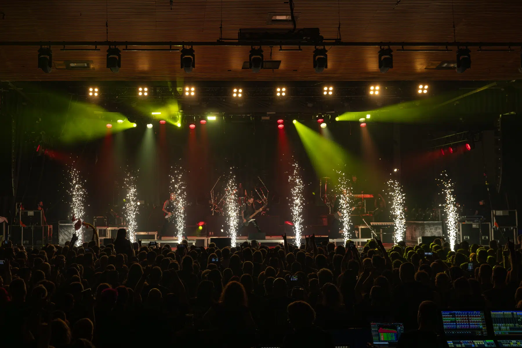 Nach einer kurzen Umbaupause erloschen die Lichter – und Flammen schossen in den Himmel: FEUERSCHWANZübernahmen die Bühne. In ihrer typischen Mischung aus Witz, Wucht und Wikingermythos entfachten sie ein mittelalterliches Inferno, das die Stadthalle beben ließ.