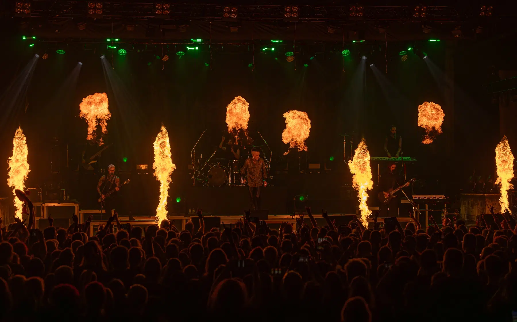 Mit der ersten Note von „OPVS NOIR“ senkte sich Dunkelheit über die Bühne – und Lord of the Lost übernahmen mit der gewohnten Wucht die Regie. Sänger Chris Harms verwandelte die Stadthalle in einen brodelnden Schmelztiegel aus Emotion, Energie und Extravaganz. Zwischen Industrial, Gothic und Glam pendelnd, demonstrierte die Band, warum sie längst zu den großen Live-Acts Europas zählt.