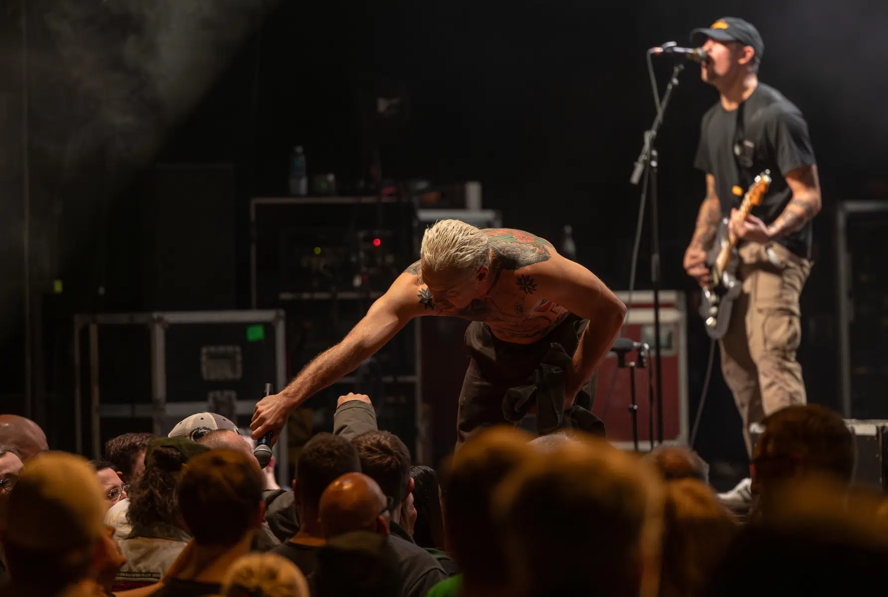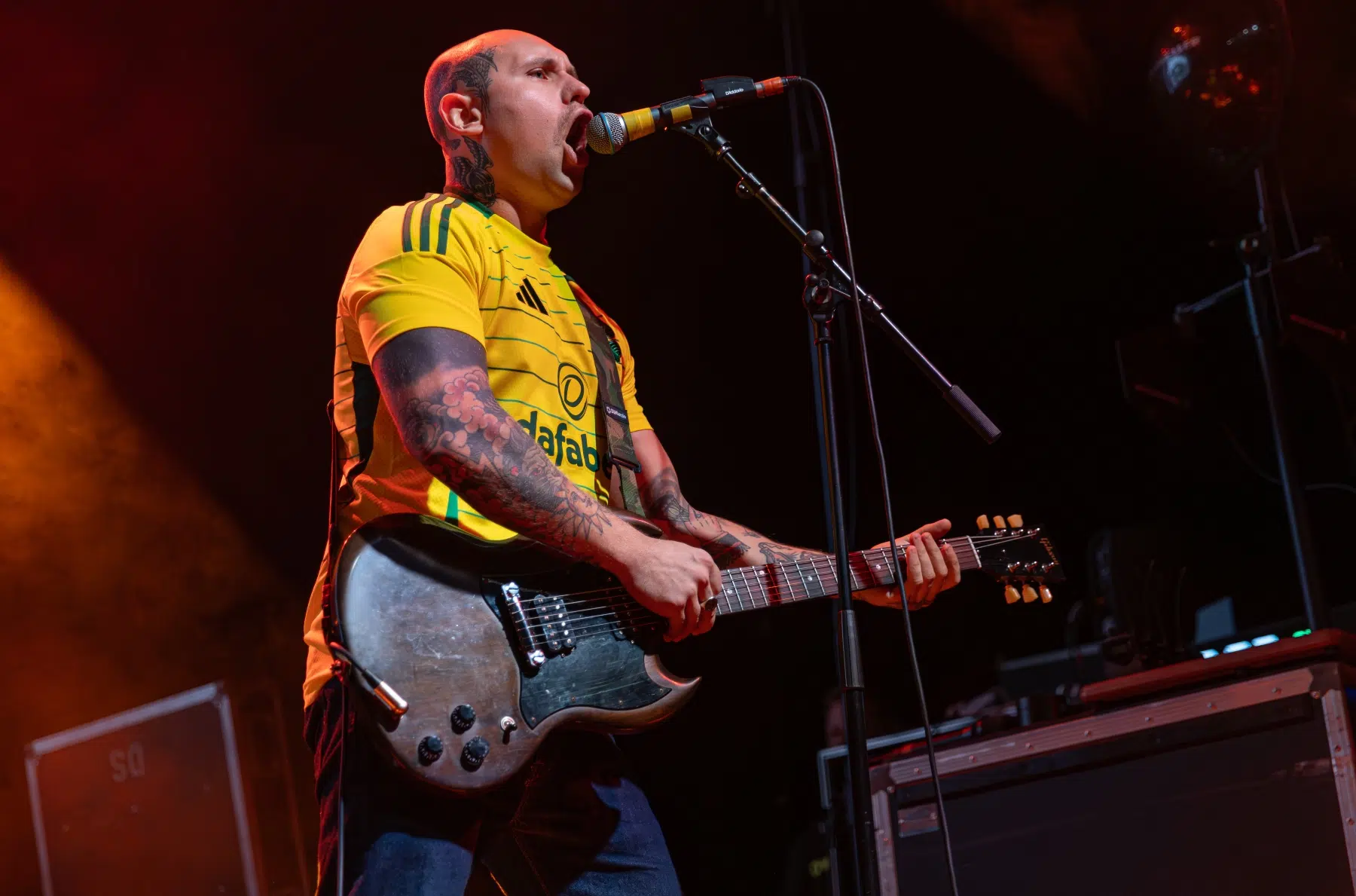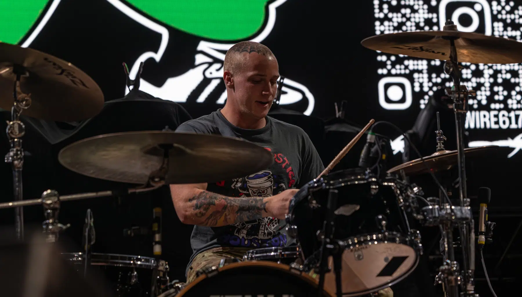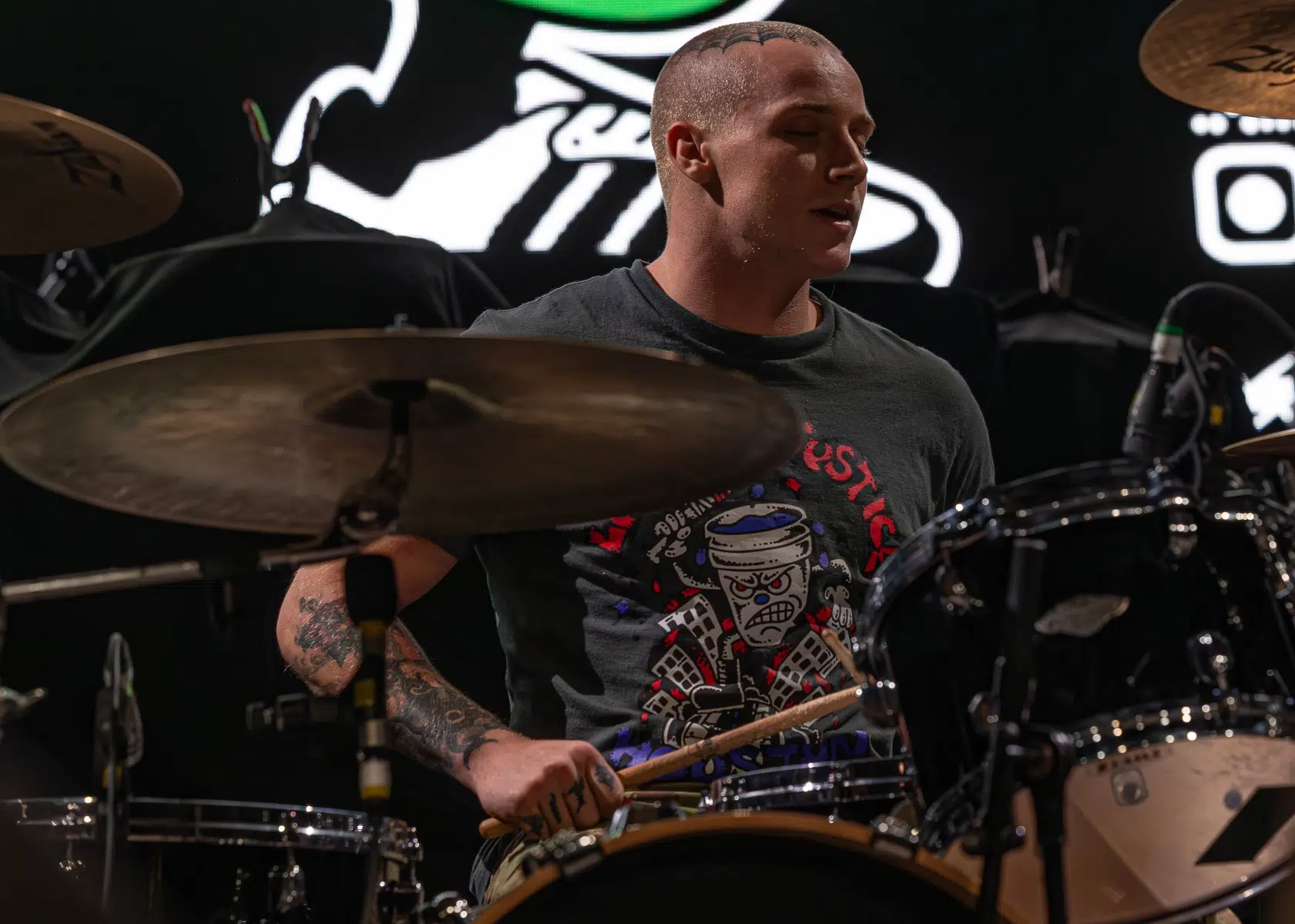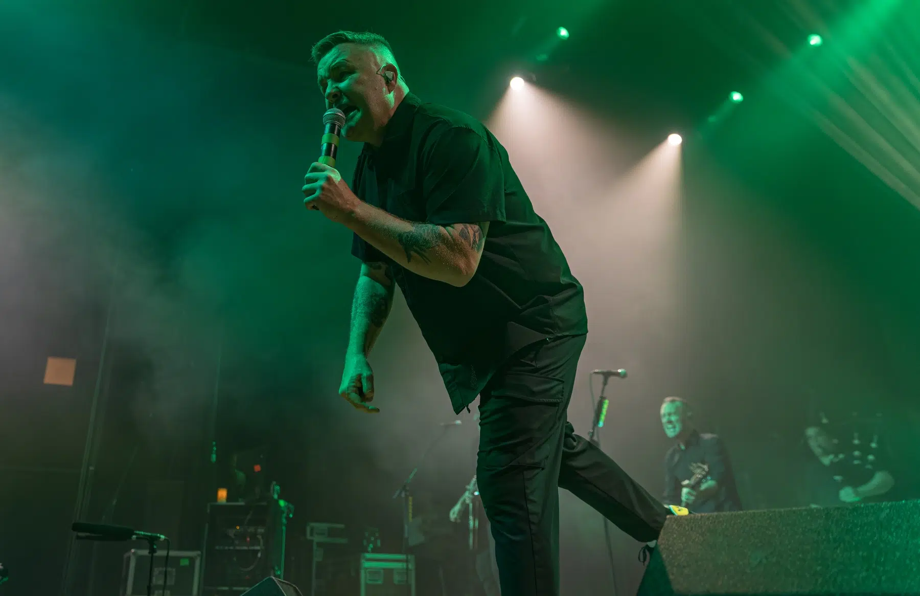 Der Raum war ohnehin schon am Kochen, aber als das Licht erlosch und die Dropkick Murphys die Bühne stürmten, erhöhte sich die Temperatur gefühlt noch einmal um mehrere Grad. Mit „The Boys Are Back“ machten die Bostoner Folk-Punk-Ikonen klar: Die Party geht erst richtig los. Die Pogoreihen begannen sofort, Bierbecher flogen, Arme lagen um fremde Schultern – ein typischer Dropkicks-Moment.