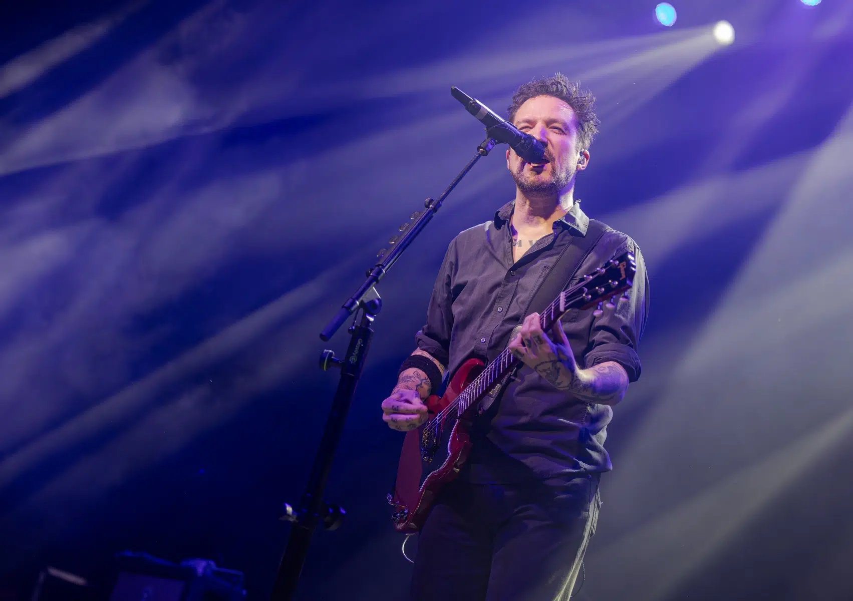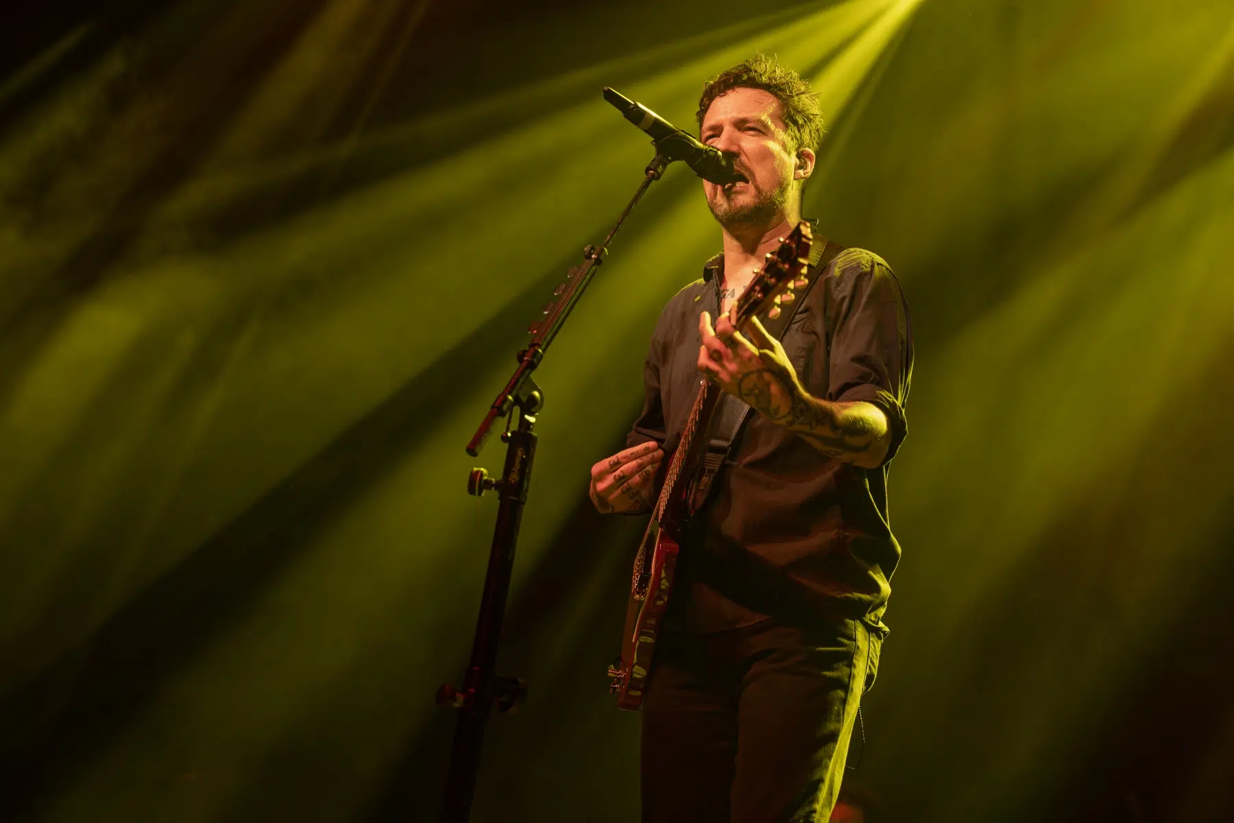 Wenn Frank Turner die Bühne betritt, verwandelt sich jeder Raum in einen Ort der Gemeinsamkeit. Im Schlachthof war das nicht anders. Kaum setzte er mit „I Still Believe“ an, sang die Menge, als hätten alle eine lange Busfahrt zusammen hinter sich. Der Song als Opener funktioniert wie eine Hymne an das Liveerlebnis selbst – und Turner weiß, wie man ein Publikum formt, es mitnimmt, es zu einem einzigen großen Klangkörper macht.