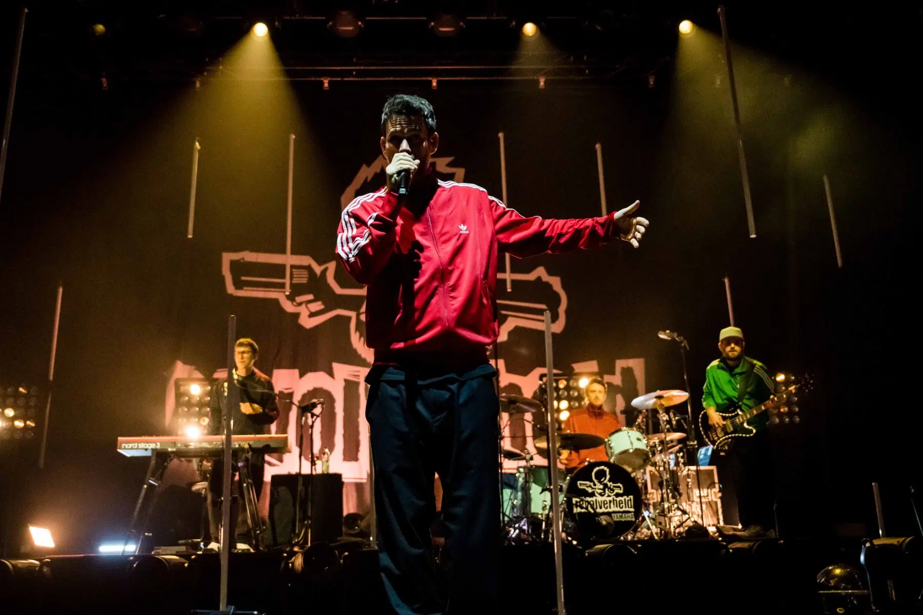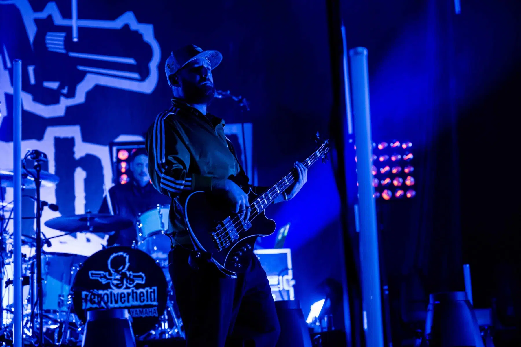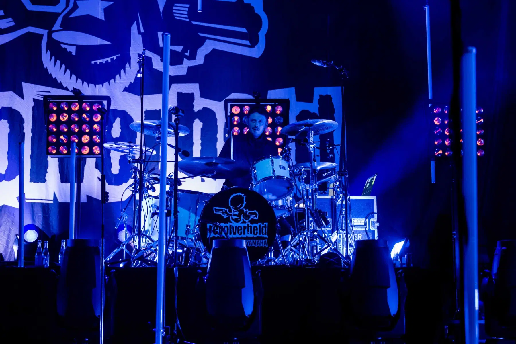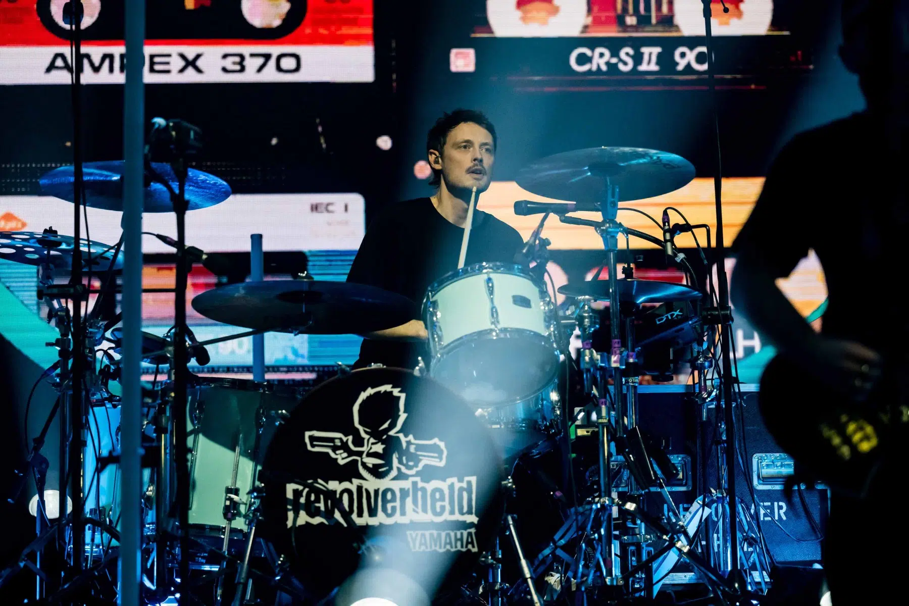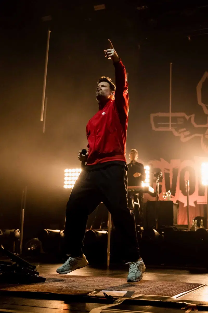 Nachdem Sie die Bühne verlassen, wird es im Saal dunkel und ein schwarzer Vorhang und verschiedene Lichtelemente versetzen die gesamte Halle in Vorfreude auf Revolverheld. Ein Einspieler über 20 Jahre Bandgeschichte startet, der Vorhang fällt und Revolverheld reißen alle mit „Generation Rock“ sofort mit. Es ist spürbar, dass alle Anwesenden viele persönliche Erinnerungen mit den Songtexten verbinden und die Halle verwandelt sich in ein riesengroßes Wohnzimmer. Frontmann Johannes Strate lässt den Funken mit seiner hanseatischen Lässigkeit sofort überspringen und begleitet durch das gesamte Konzert mit schönen Erinnerungen oder lustigen Anekdoten. In seiner Plauderlaune scherzt er: „Okay, wir spielen noch einen Song, obwohl ihr heute eine Standup-Comedy-Show gebucht habt“. Zum Running Gag des Abends wird die Frage nach einer Aftershow-Party so wie früher. Als Ergebnis kommt raus, vielleicht sollten sie zukünftig ihr Konzert um 18 Uhr starten, dann könnte es klappen.