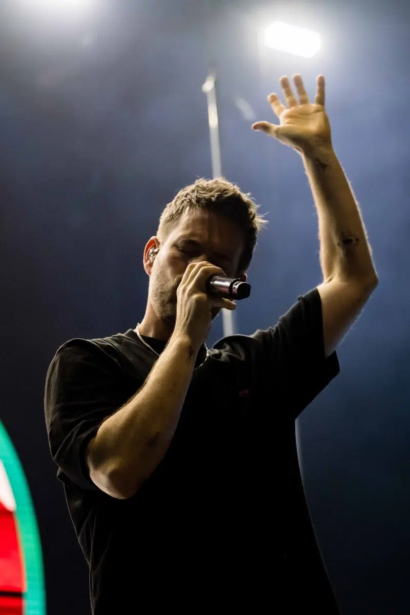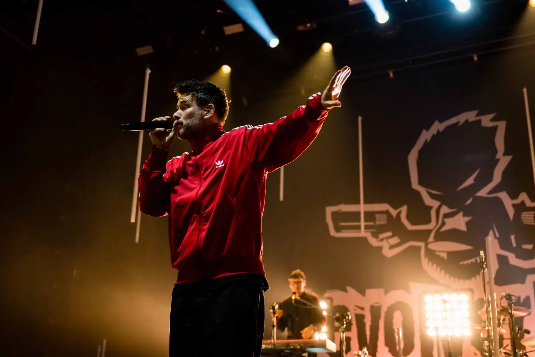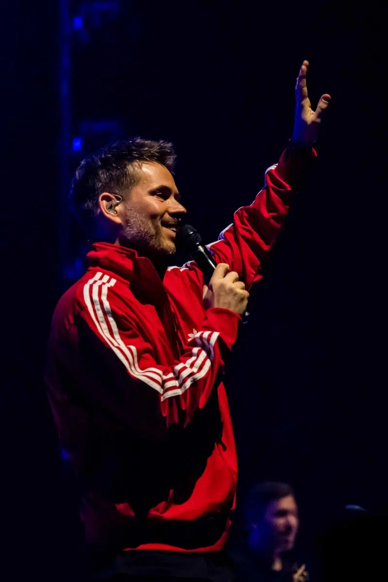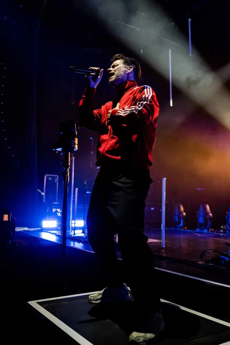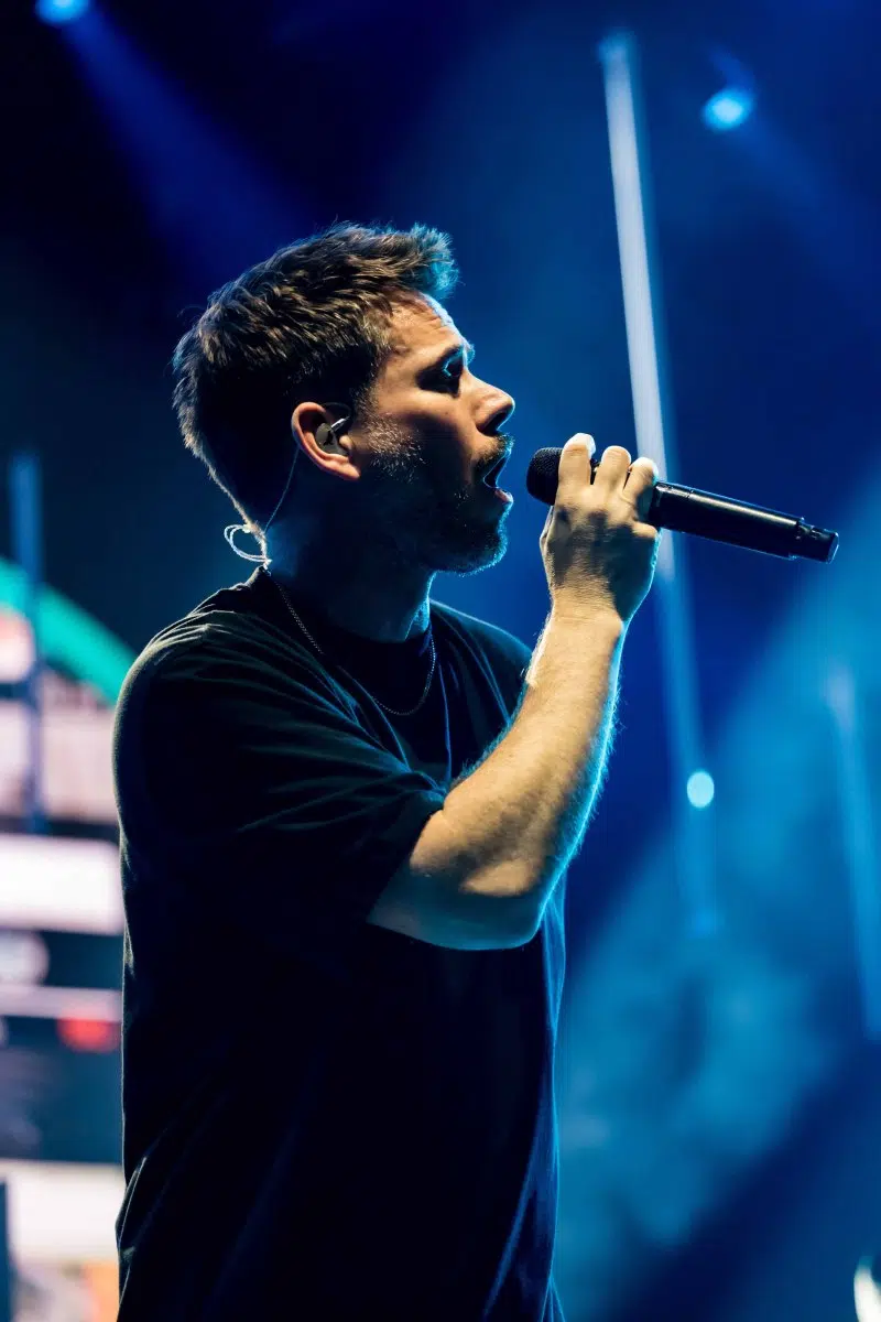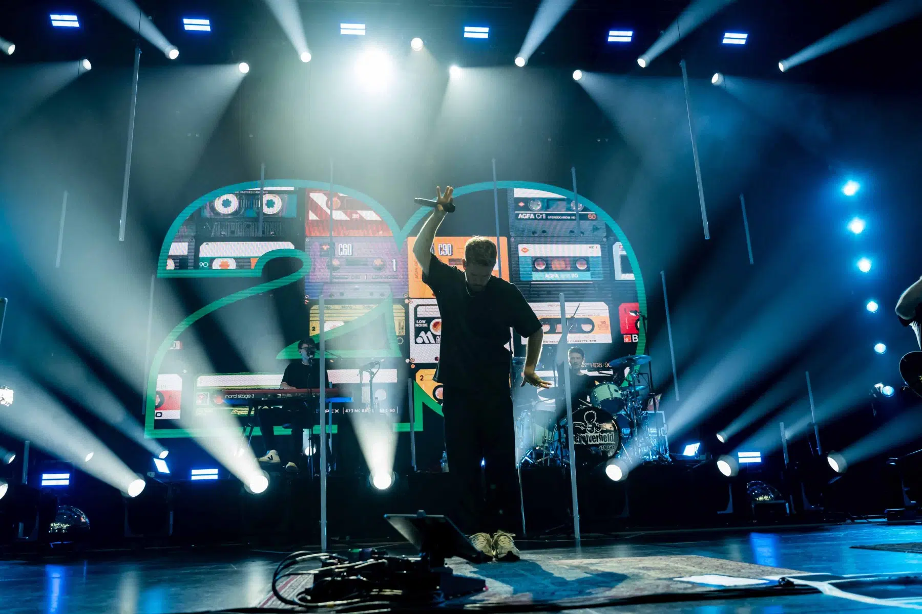 Nachdem Sie die Bühne verlassen, wird es im Saal dunkel und ein schwarzer Vorhang und verschiedene Lichtelemente versetzen die gesamte Halle in Vorfreude auf Revolverheld. Ein Einspieler über 20 Jahre Bandgeschichte startet, der Vorhang fällt und Revolverheld reißen alle mit „Generation Rock“ sofort mit. Es ist spürbar, dass alle Anwesenden viele persönliche Erinnerungen mit den Songtexten verbinden und die Halle verwandelt sich in ein riesengroßes Wohnzimmer. Frontmann Johannes Strate lässt den Funken mit seiner hanseatischen Lässigkeit sofort überspringen und begleitet durch das gesamte Konzert mit schönen Erinnerungen oder lustigen Anekdoten. In seiner Plauderlaune scherzt er: „Okay, wir spielen noch einen Song, obwohl ihr heute eine Standup-Comedy-Show gebucht habt“. Zum Running Gag des Abends wird die Frage nach einer Aftershow-Party so wie früher. Als Ergebnis kommt raus, vielleicht sollten sie zukünftig ihr Konzert um 18 Uhr starten, dann könnte es klappen.