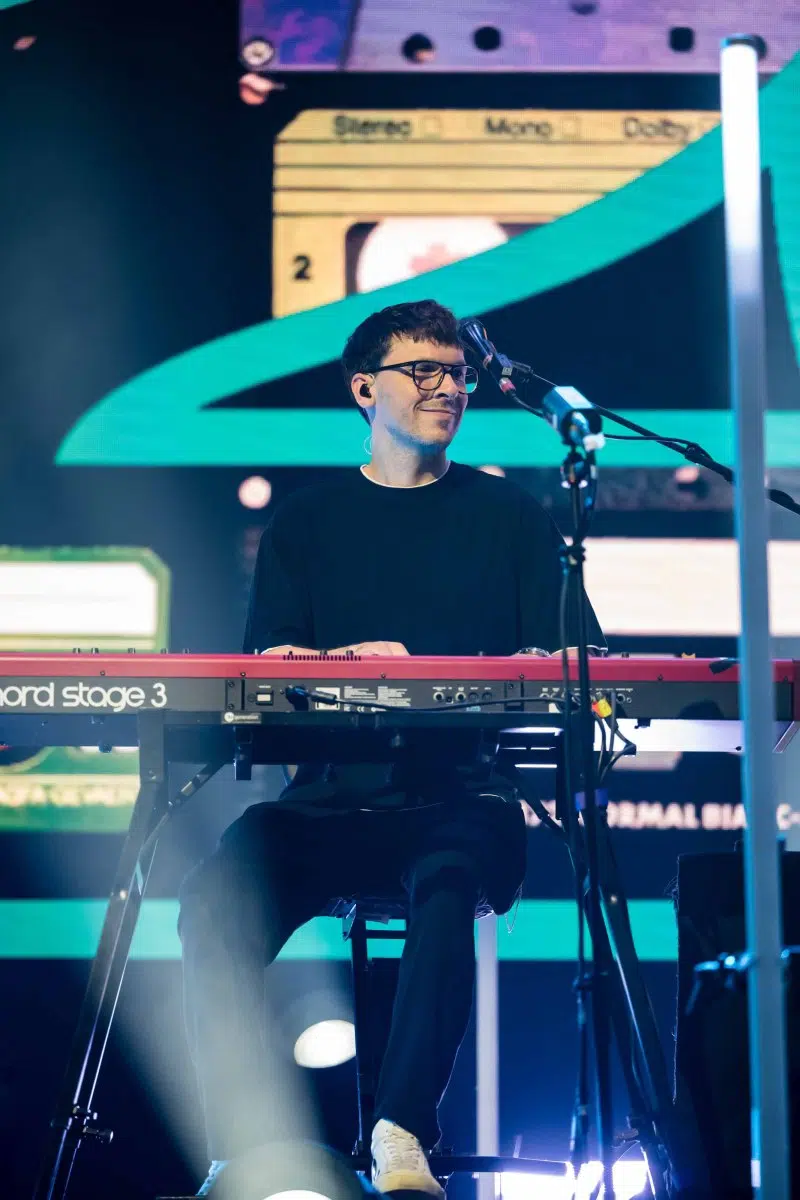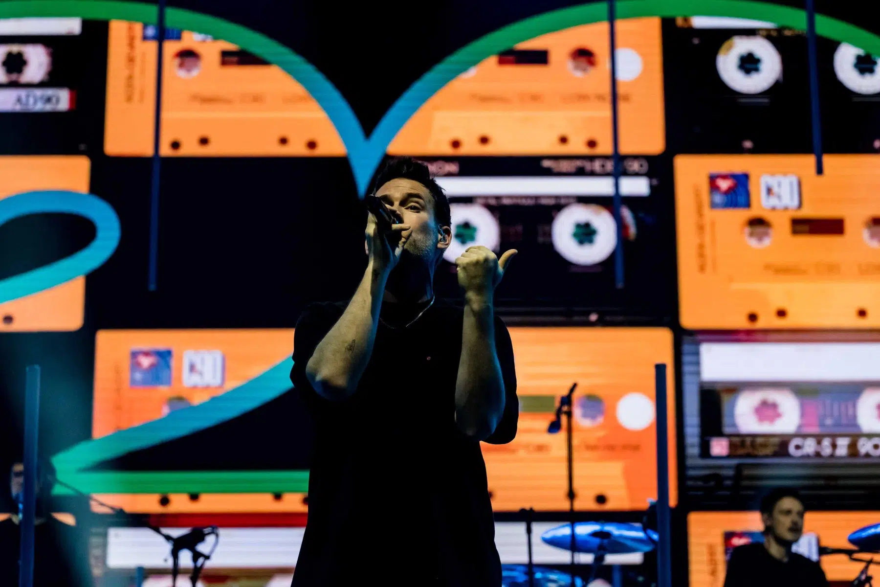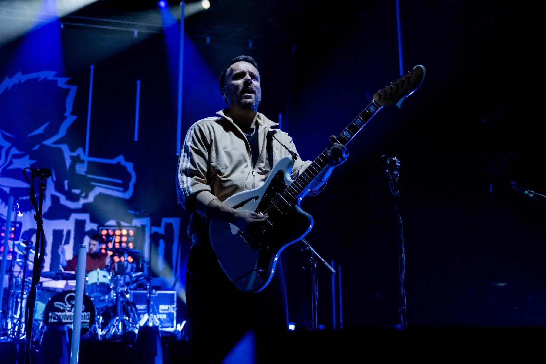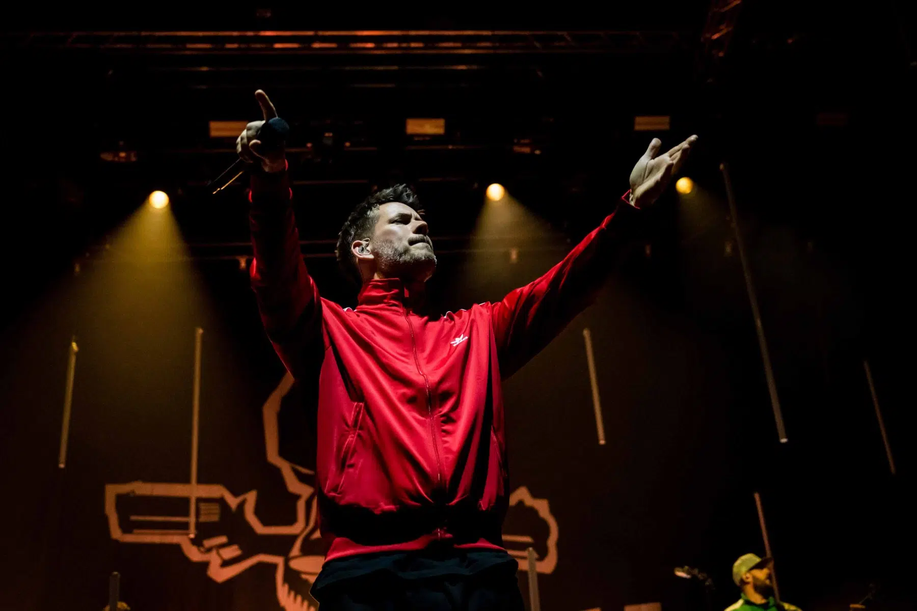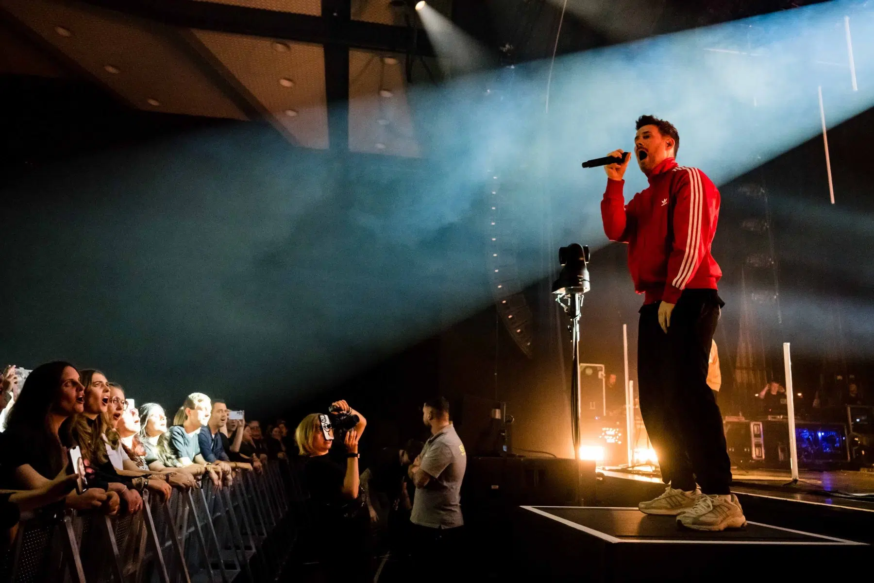 Nachdem Sie die Bühne verlassen, wird es im Saal dunkel und ein schwarzer Vorhang und verschiedene Lichtelemente versetzen die gesamte Halle in Vorfreude auf Revolverheld. Ein Einspieler über 20 Jahre Bandgeschichte startet, der Vorhang fällt und Revolverheld reißen alle mit „Generation Rock“ sofort mit. Es ist spürbar, dass alle Anwesenden viele persönliche Erinnerungen mit den Songtexten verbinden und die Halle verwandelt sich in ein riesengroßes Wohnzimmer. Frontmann Johannes Strate lässt den Funken mit seiner hanseatischen Lässigkeit sofort überspringen und begleitet durch das gesamte Konzert mit schönen Erinnerungen oder lustigen Anekdoten. In seiner Plauderlaune scherzt er: „Okay, wir spielen noch einen Song, obwohl ihr heute eine Standup-Comedy-Show gebucht habt“. Zum Running Gag des Abends wird die Frage nach einer Aftershow-Party so wie früher. Als Ergebnis kommt raus, vielleicht sollten sie zukünftig ihr Konzert um 18 Uhr starten, dann könnte es klappen.
