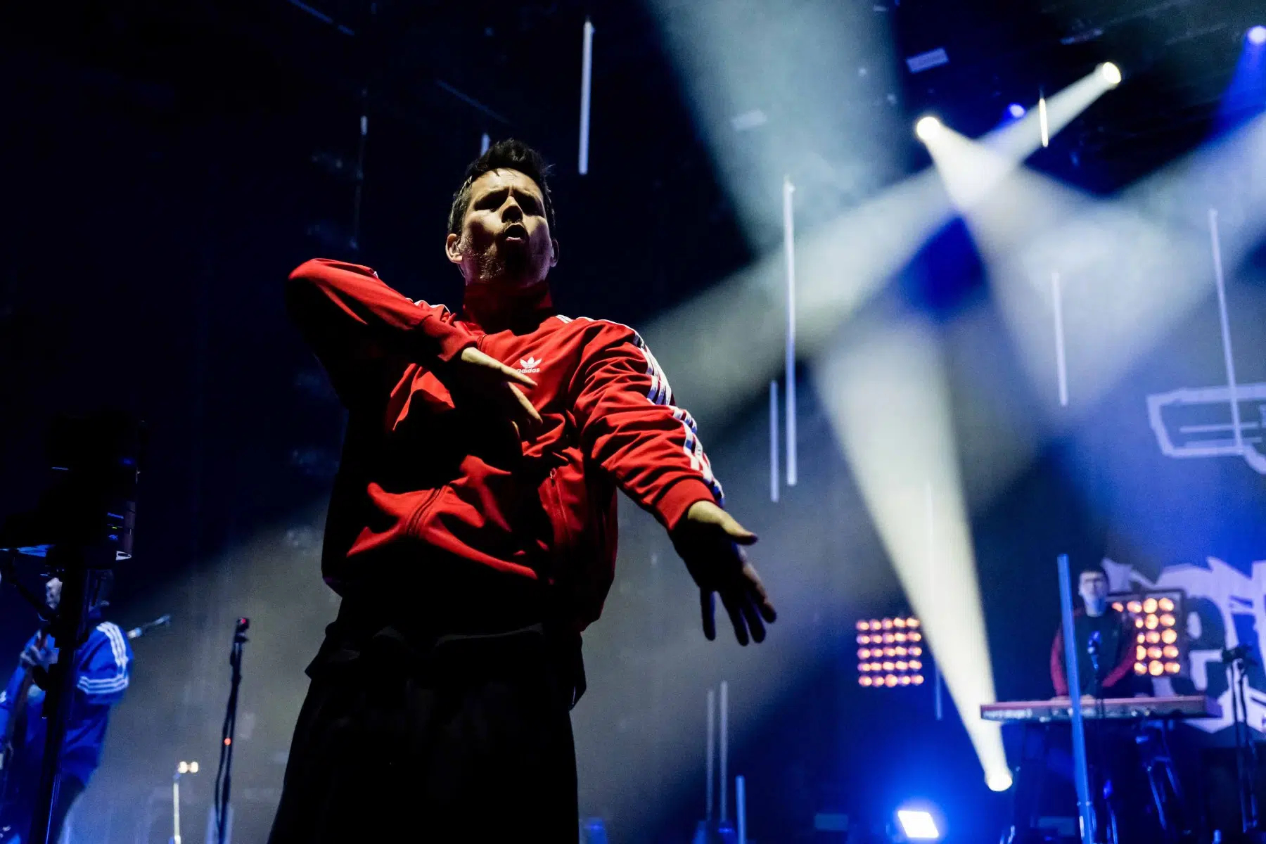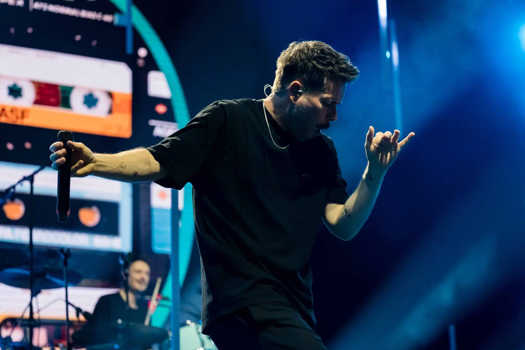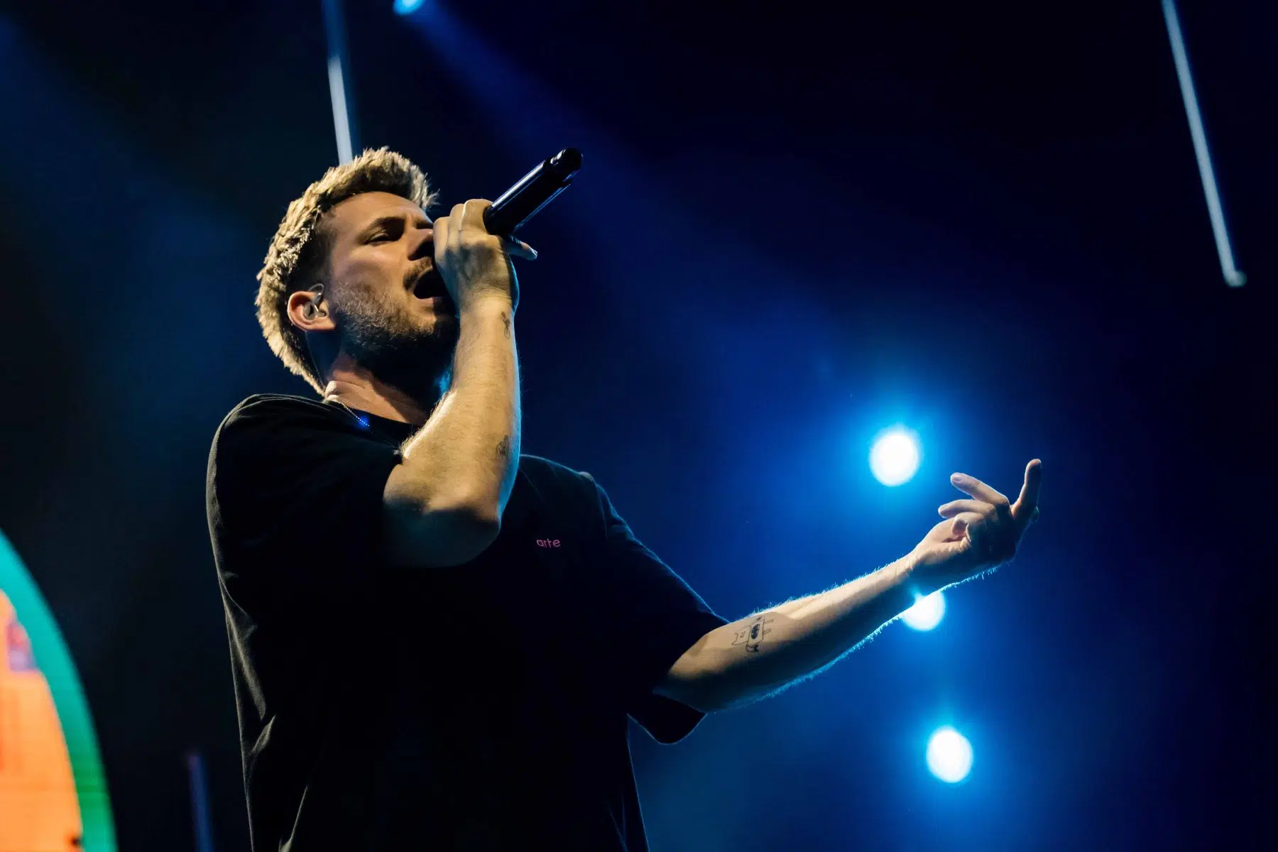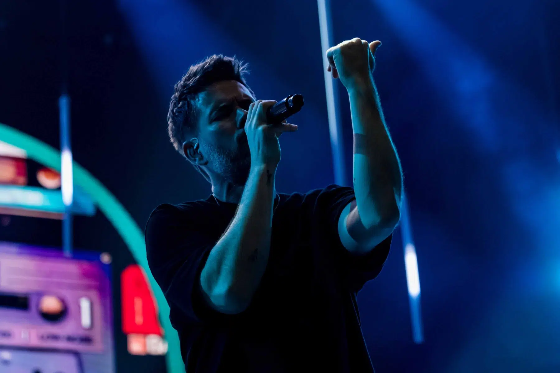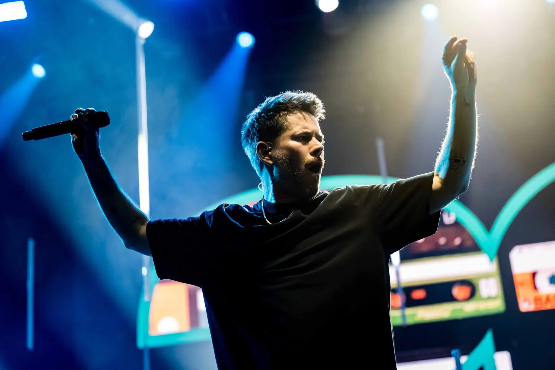 Nachdem Sie die Bühne verlassen, wird es im Saal dunkel und ein schwarzer Vorhang und verschiedene Lichtelemente versetzen die gesamte Halle in Vorfreude auf Revolverheld. Ein Einspieler über 20 Jahre Bandgeschichte startet, der Vorhang fällt und Revolverheld reißen alle mit „Generation Rock“ sofort mit. Es ist spürbar, dass alle Anwesenden viele persönliche Erinnerungen mit den Songtexten verbinden und die Halle verwandelt sich in ein riesengroßes Wohnzimmer. Frontmann Johannes Strate lässt den Funken mit seiner hanseatischen Lässigkeit sofort überspringen und begleitet durch das gesamte Konzert mit schönen Erinnerungen oder lustigen Anekdoten. In seiner Plauderlaune scherzt er: „Okay, wir spielen noch einen Song, obwohl ihr heute eine Standup-Comedy-Show gebucht habt“. Zum Running Gag des Abends wird die Frage nach einer Aftershow-Party so wie früher. Als Ergebnis kommt raus, vielleicht sollten sie zukünftig ihr Konzert um 18 Uhr starten, dann könnte es klappen.