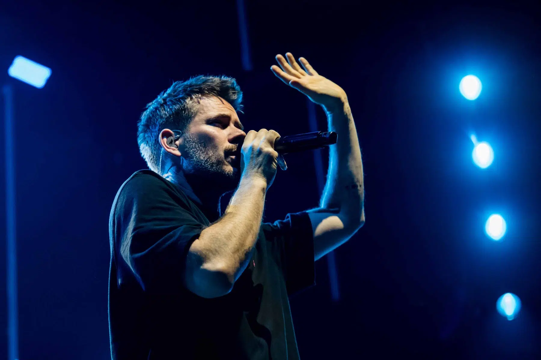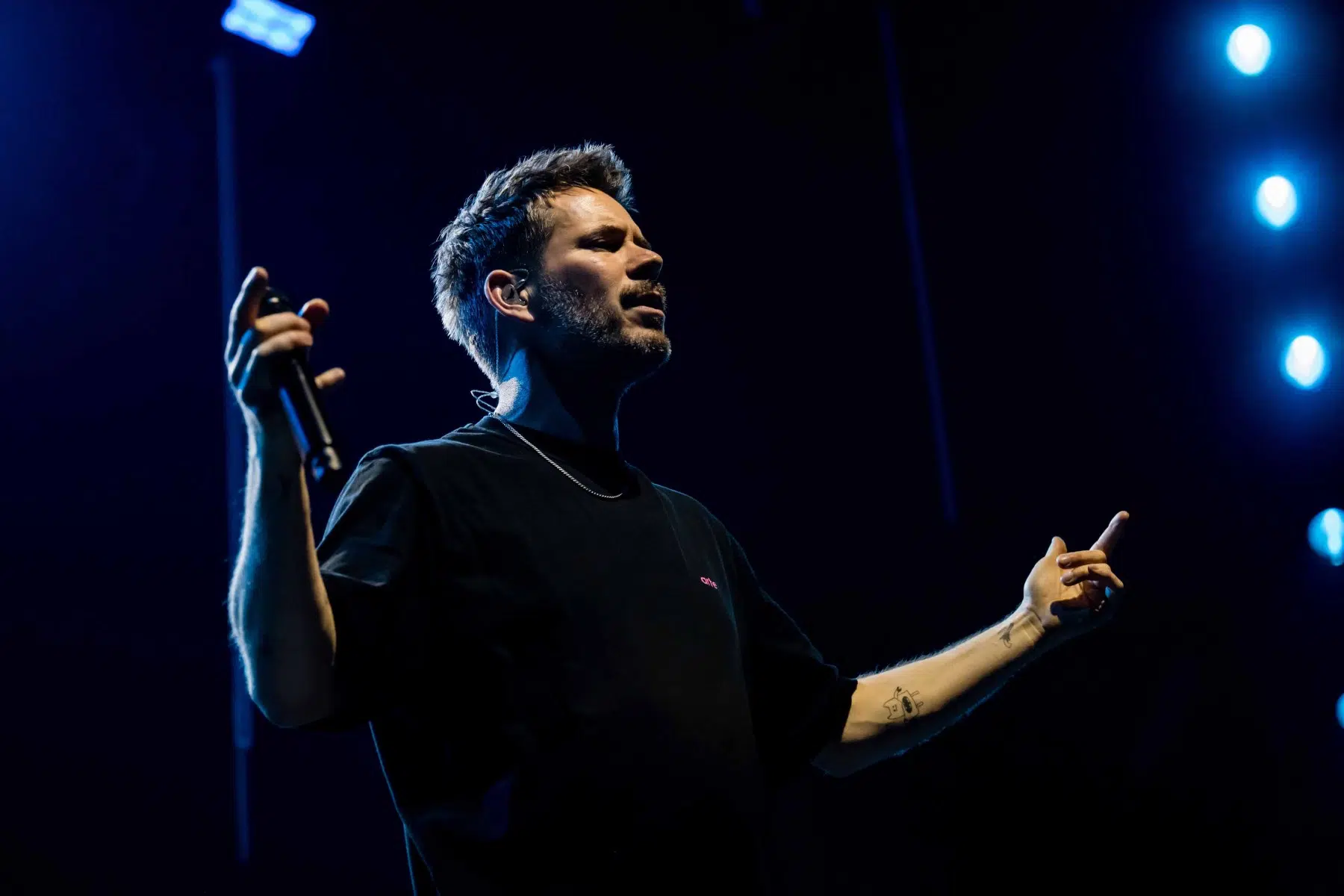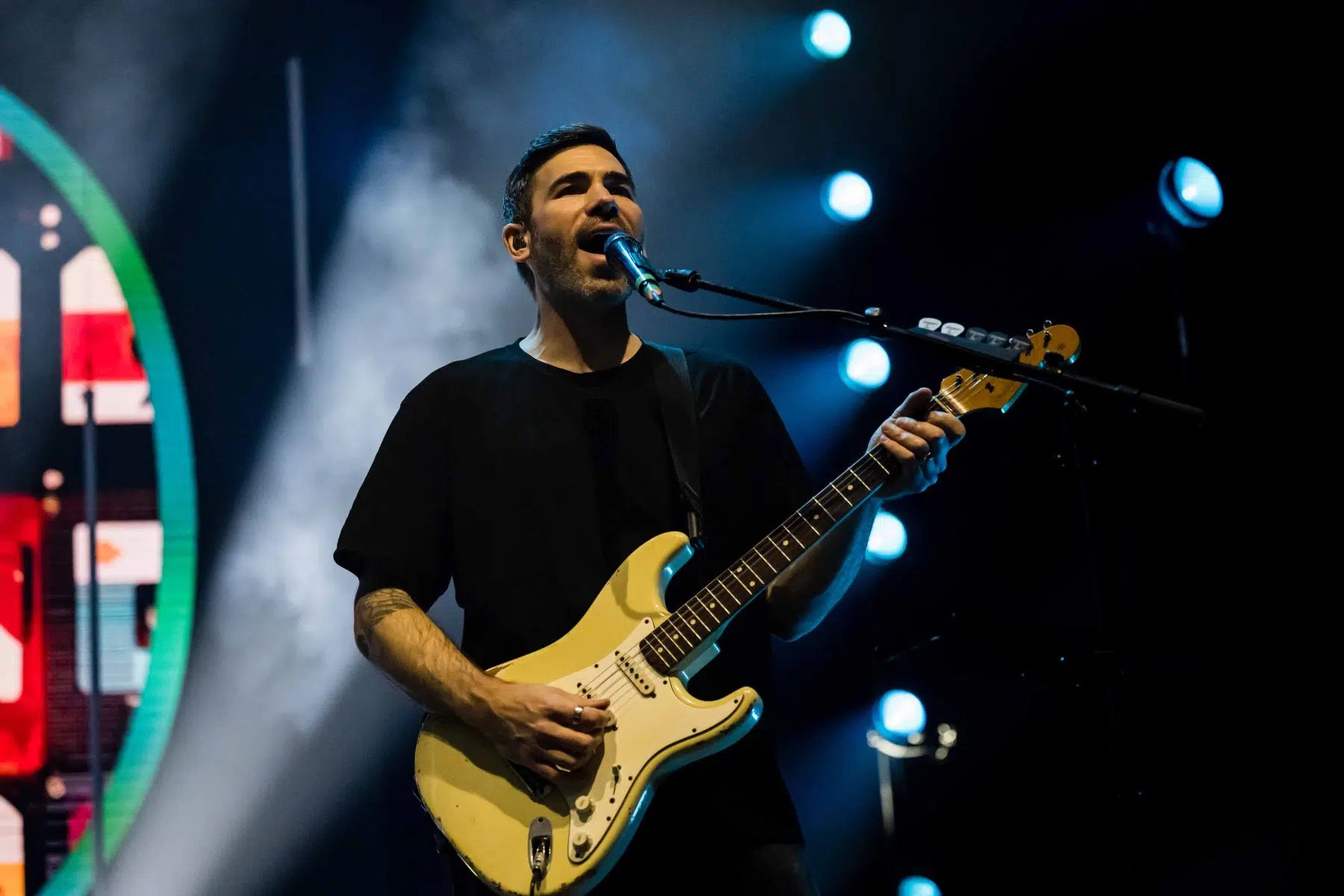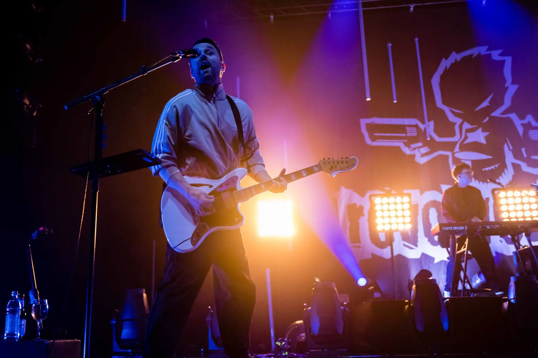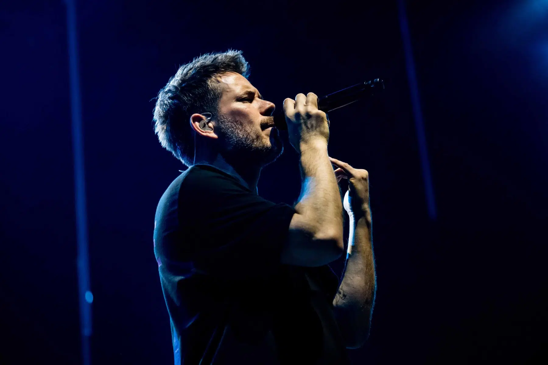 Nachdem Sie die Bühne verlassen, wird es im Saal dunkel und ein schwarzer Vorhang und verschiedene Lichtelemente versetzen die gesamte Halle in Vorfreude auf Revolverheld. Ein Einspieler über 20 Jahre Bandgeschichte startet, der Vorhang fällt und Revolverheld reißen alle mit „Generation Rock“ sofort mit. Es ist spürbar, dass alle Anwesenden viele persönliche Erinnerungen mit den Songtexten verbinden und die Halle verwandelt sich in ein riesengroßes Wohnzimmer. Frontmann Johannes Strate lässt den Funken mit seiner hanseatischen Lässigkeit sofort überspringen und begleitet durch das gesamte Konzert mit schönen Erinnerungen oder lustigen Anekdoten. In seiner Plauderlaune scherzt er: „Okay, wir spielen noch einen Song, obwohl ihr heute eine Standup-Comedy-Show gebucht habt“. Zum Running Gag des Abends wird die Frage nach einer Aftershow-Party so wie früher. Als Ergebnis kommt raus, vielleicht sollten sie zukünftig ihr Konzert um 18 Uhr starten, dann könnte es klappen.